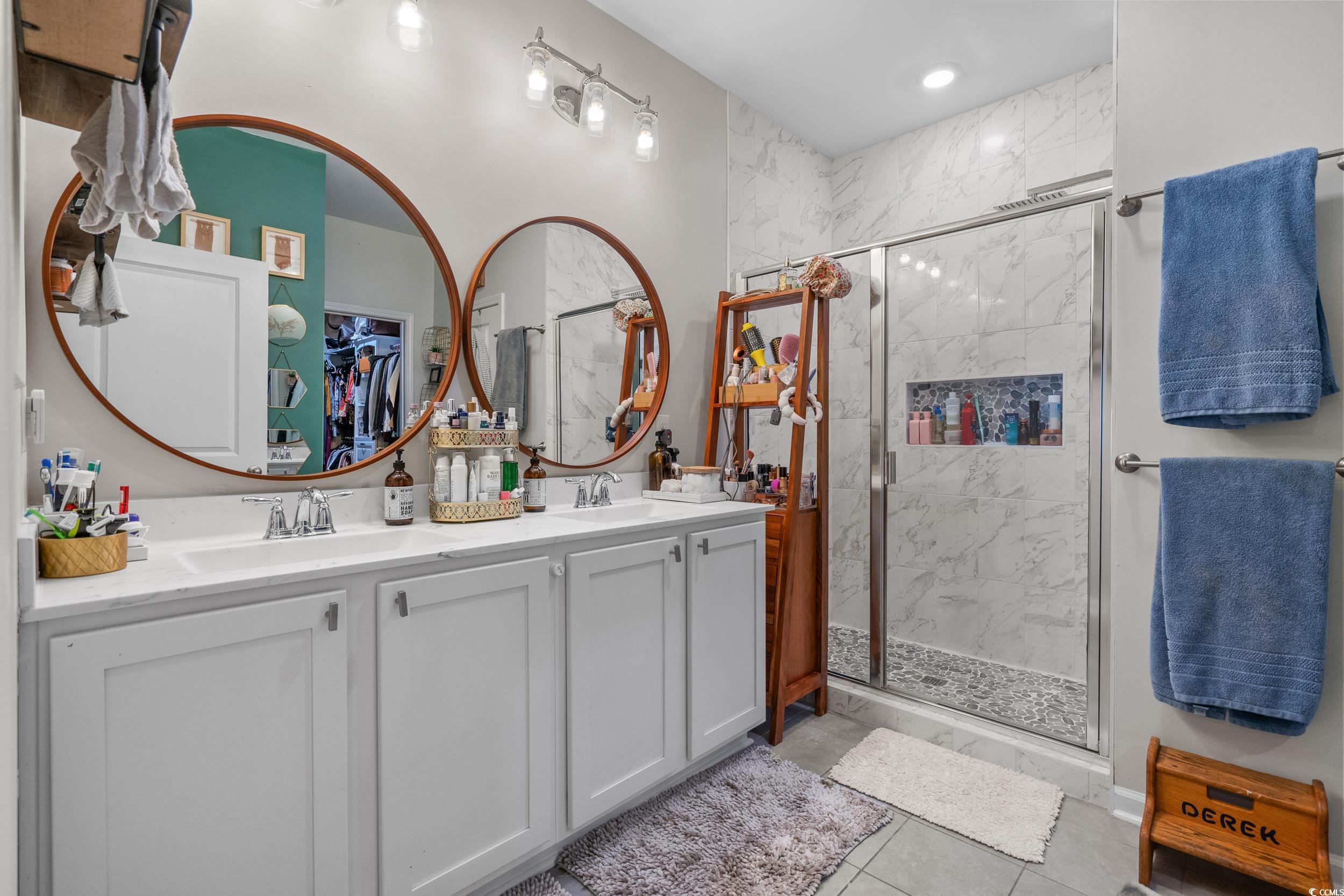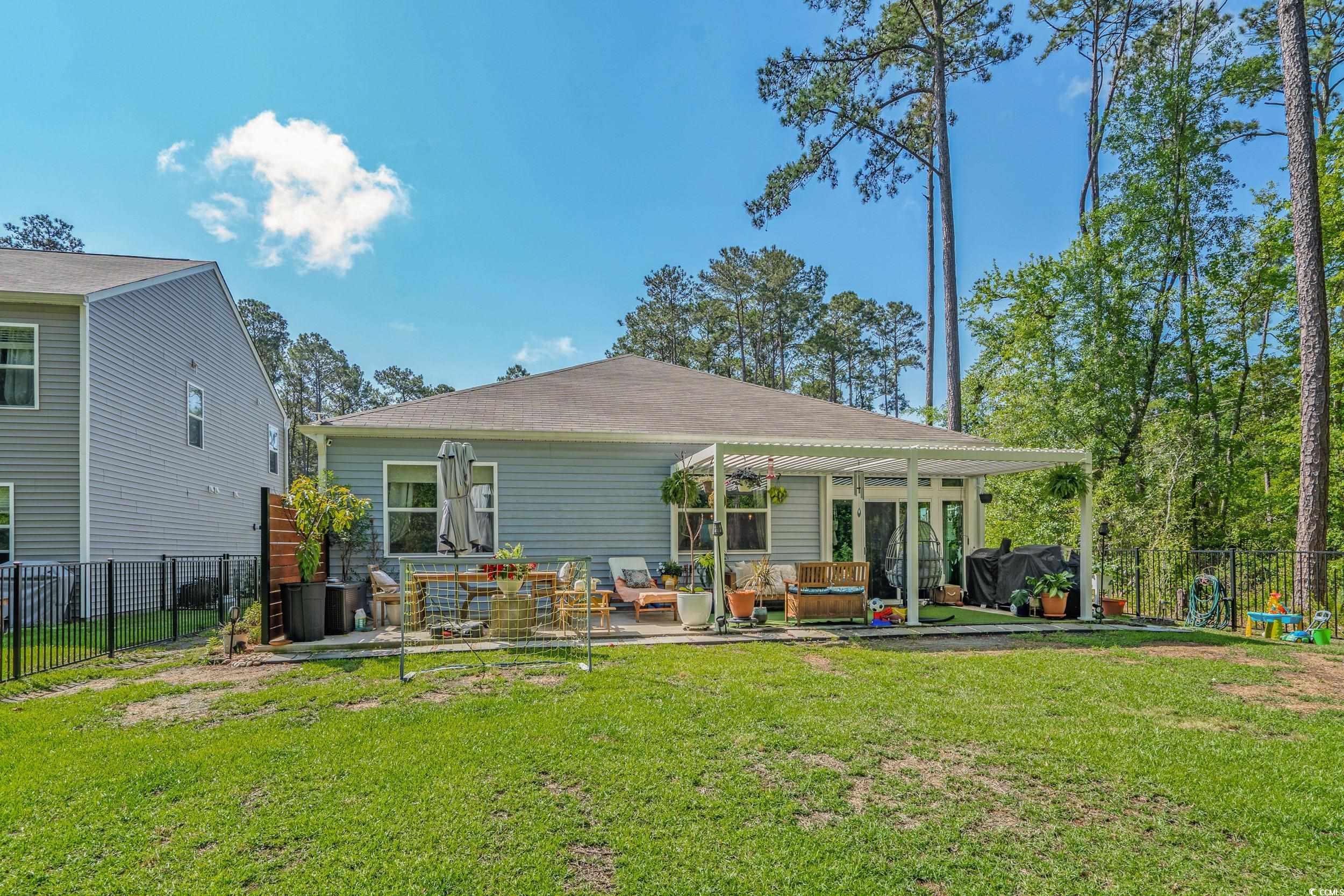 Tucked into a quiet pocket in the resort style community of Heather Glen, you will find your new home surrounded by mature trees and a peaceful backdrop. This thoughtfully designed single level home offers an open floor plan, where the rhythm of daily life flows effortlessly. The kitchen comes complete with a walk-in pantry and custom shelving, expansive island with room for the whole family, and stainless steel appliances including a gas range. The spacious dining area leads out to a cozy Carolina room and mornings are for coffee on the covered porch overlooking the fenced in yard, complete with privacy screen, surrounded by the quiet rustle of fruit trees. Cleanup is easy with your custom outdoor shower after a day tending to gardens or just playing. The primary suite offers its own retreat, with a walk-in closet, custom tile shower, and dual vanities that make mornings just a little easier. 3 additional bedrooms offer plenty of space and additional hall closets offer ample storage space. Inside of the garage you will find upper racks installed for even more storage, an epoxy floor, and motorized privacy screen over the garage door. Beyond the home, the neighborhood offers space to roam and reconnect—with winding trails, community gardens, dog parks, and amenities that include a pool and clubhouse that feels like you're on vacation every day.