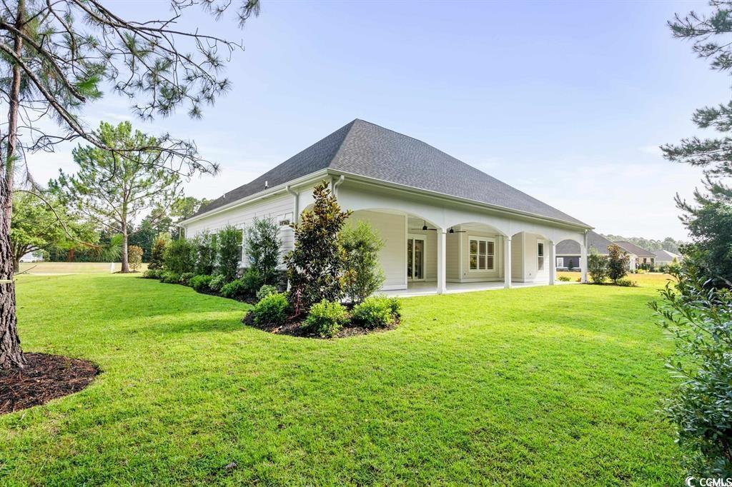 This brand-new custom home boasts 5 spacious bedrooms and 4 luxurious bathrooms, designed for an exceptional lifestyle. Highlights include 12' ceilings in the foyer, great room, dining room, kitchen, and breakfast area, with custom coffered ceilings in the great room and double tray, rope-lit ceilings in the dining room and master bedroom. The home features stunning LVP flooring throughout, complemented by exquisite crown molding and trim details. You'll be impressed by the arched cased openings, bullnose corners, deluxe 5 1/4" crown moldings, chair rail, 7 1/4" baseboards, wainscoting, and custom window trim that enhance the open, airy floor plan. Custom cabinetry and quartz countertops, along with porcelain sinks in the kitchen, master bathroom, guest bathrooms, and laundry room, add a touch of elegance. All closets are custom-designed with upgraded wood shelving. The expansive covered rear porch, features porcelain tile flooring, 2 ceiling fans, 10 recessed lights, and an outdoor TV setup? The home includes an oversized, finished 3.5-car garage with epoxy flooring. Wild Wing Plantation offers two award-winning golf courses, a practice facility, pro-shop, and restaurant. Conveniently located off Highway 501, the community is close to shopping, dining, attractions, and Coastal Carolina University. Square footage is approximate and not guaranteed; buyers are responsible for verification. New construction homes may be customized and subject to changes.