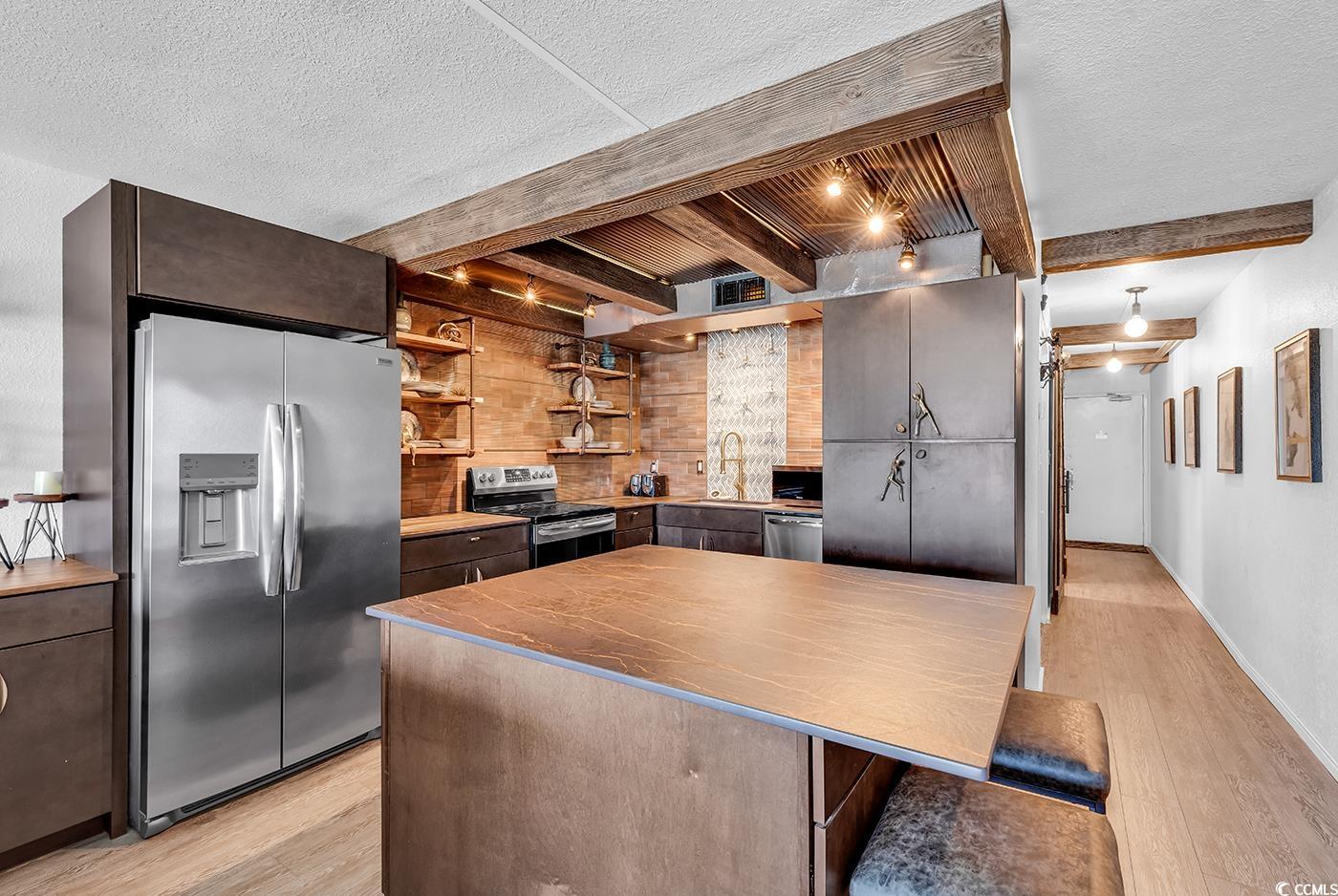 Your oceanfront and completely remodeled condo awaits! Step inside to truly appreciate all the finishes this unit has! Barn doors, wainscoting, incredible light fixtures throughout, tasteful ceiling beams, intricate tile work in both bathrooms and kitchen, extended island with wine fridge, stainless steel appliances, and LVP flooring are a must see! This comes fully furnished so bring your bathing suits and beach chairs and simply enjoy! *Information deemed reliable, buyer to confirm*