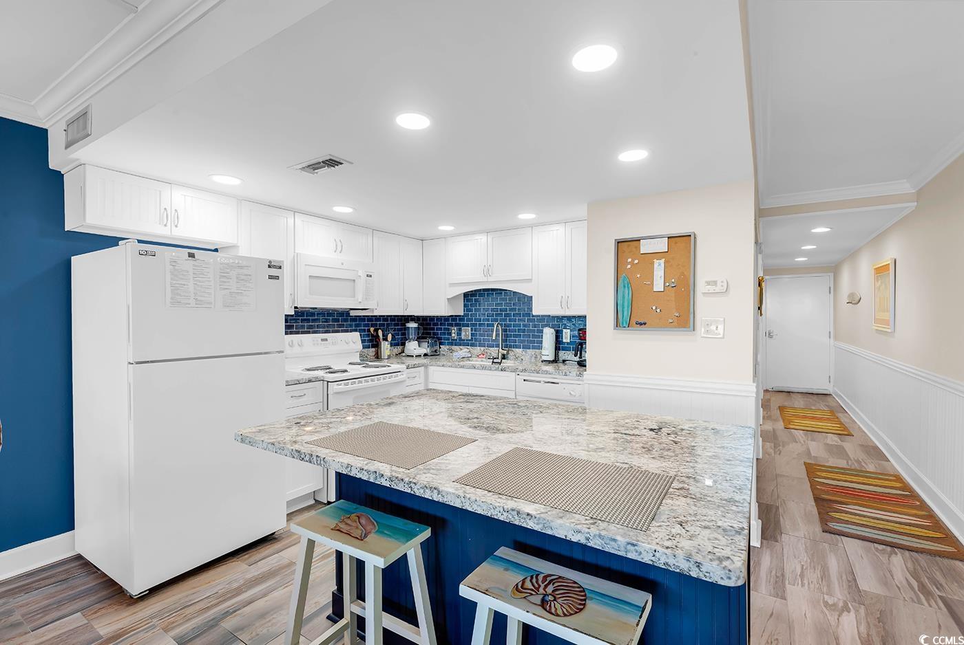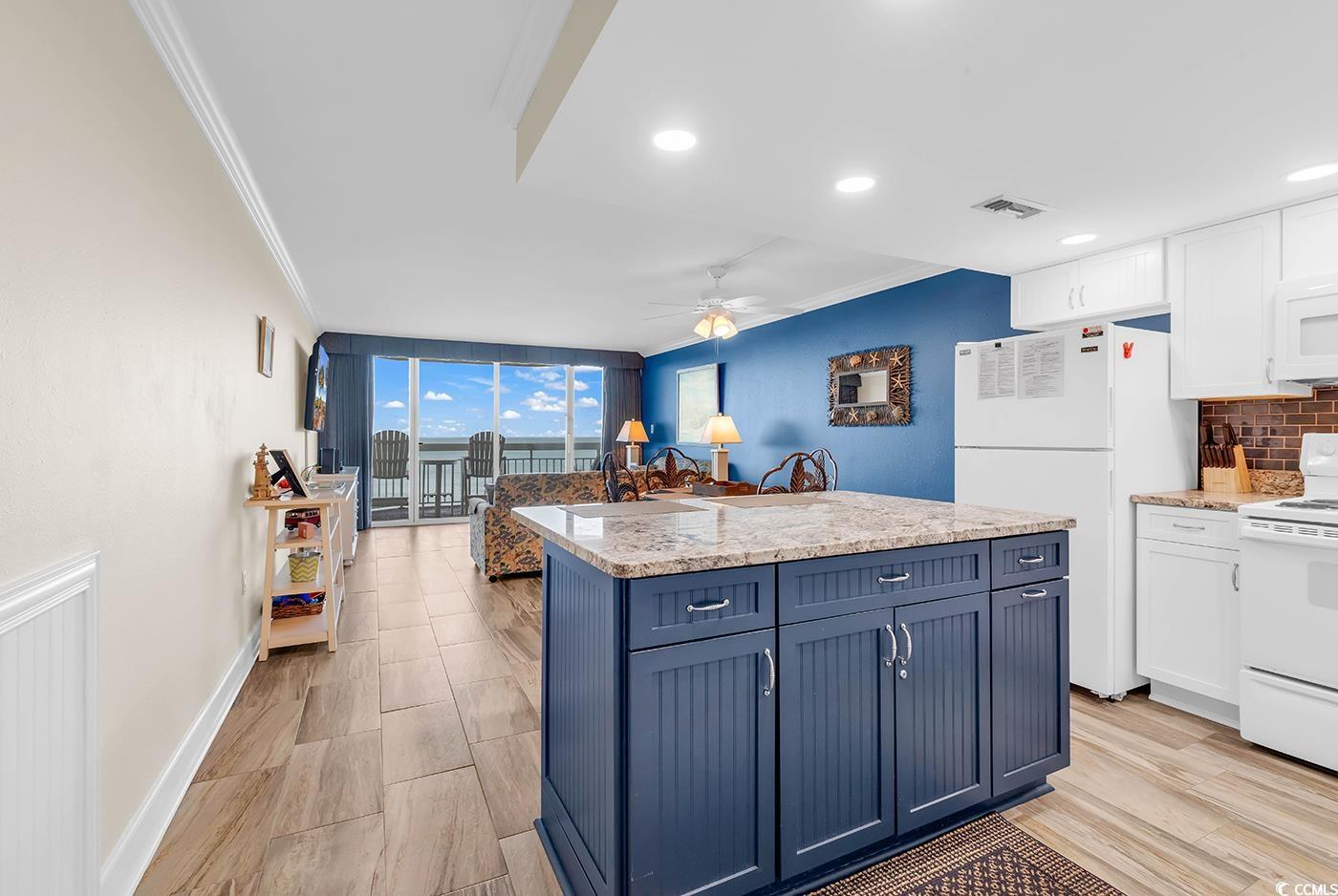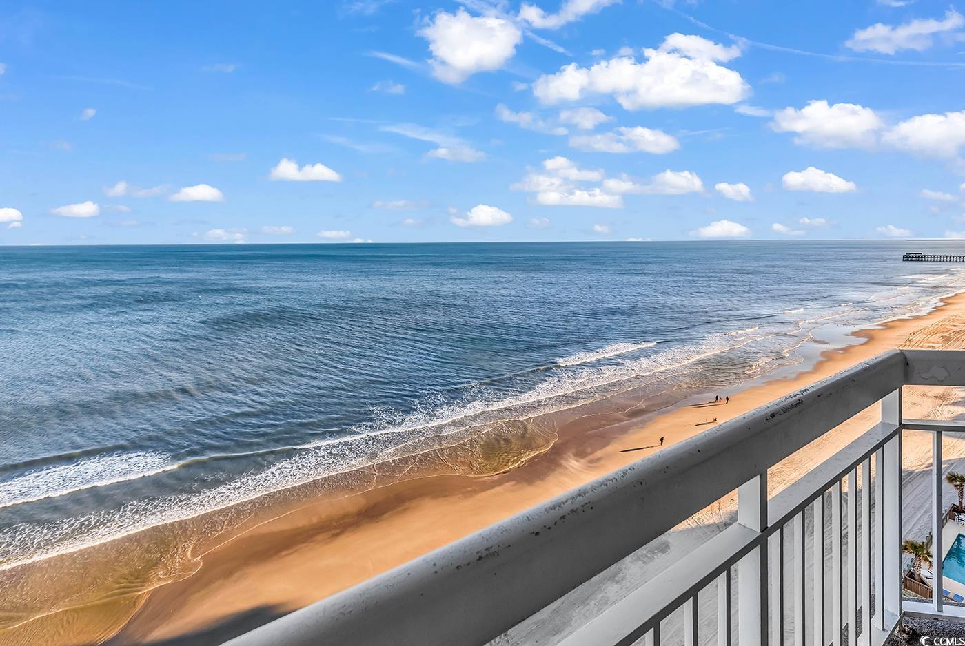 Enjoy stunning panoramic Atlantic Ocean views from the 14th floor of this beautifully updated 1-bedroom, 2-bath condo at the coveted Waters Edge Resort. Directly on the beach, this spacious unit features updated flooring, custom wainscoting, crown molding, and a modern kitchen with stylish cabinetry, backsplash, and island bar. This unit is being sold fully furnished. The primary bedroom includes an en suite bath with a custom walk-in tiled shower, plus a second full bath for guests. The washer and dryer add convenience and quality of living. The resort amenities are exquisite! They include indoor/outdoor pools with swim-through connection, two relaxing hot tubs, 2 fitness centers, an oceanfront sun deck, an on-site beach bar & grill, a gift shop, and covered parking. Situated between Surfside and Garden City Piers, this condo puts you just steps away from the vibrant Surfside restaurant district and the bustling Atlantic Avenue area. Whether you’re seeking a peaceful getaway, a full time residence or a short-term rental, it’s the ideal spot to embrace the beach lifestyle. Book your tour today!
