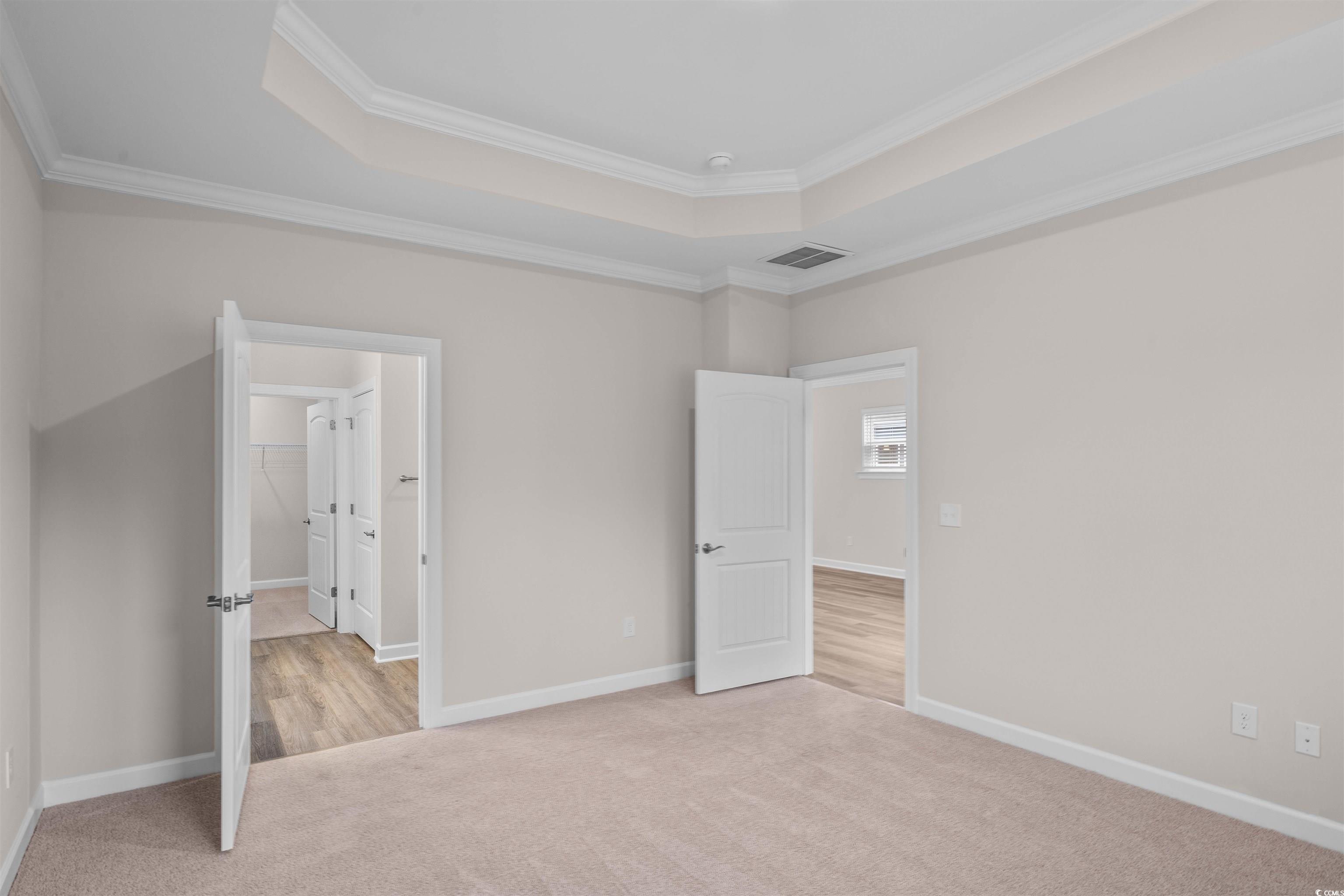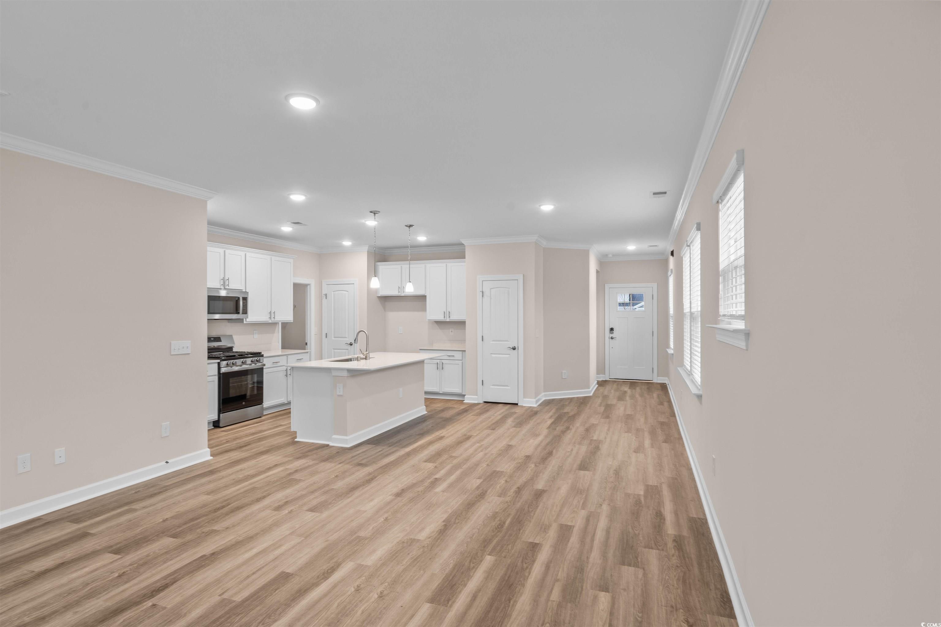As you enter through the foyer, a hallway to your right leads to a cozy bedroom featuring a walk-in closet. Across the hall is a full bathroom, complete with a convenient linen closet. Continuing through the home, you’ll discover a spacious kitchen with a stunning island, perfect for hosting holiday gatherings. The kitchen is equipped with a MOEN Brushed Nickel pull-out faucet and a built in soap dispenser. Prepare delicious meals on your natural gas stove, then gather with loved ones for dinner. The journey continues into the inviting great room, where you can unwind after a long day, cozy up, and enjoy your favorite shows. But the comfort doesn’t end there! At the rear of the house, you’ll find the Owner's Suite, a private retreat with a walk-in closet, a double bowl sink and a separate enclosed toilet room. The bathrooms are equipped with MOEN brushed nickel bath accessories and faucets, offering a modern and elegant touch throughout the home.