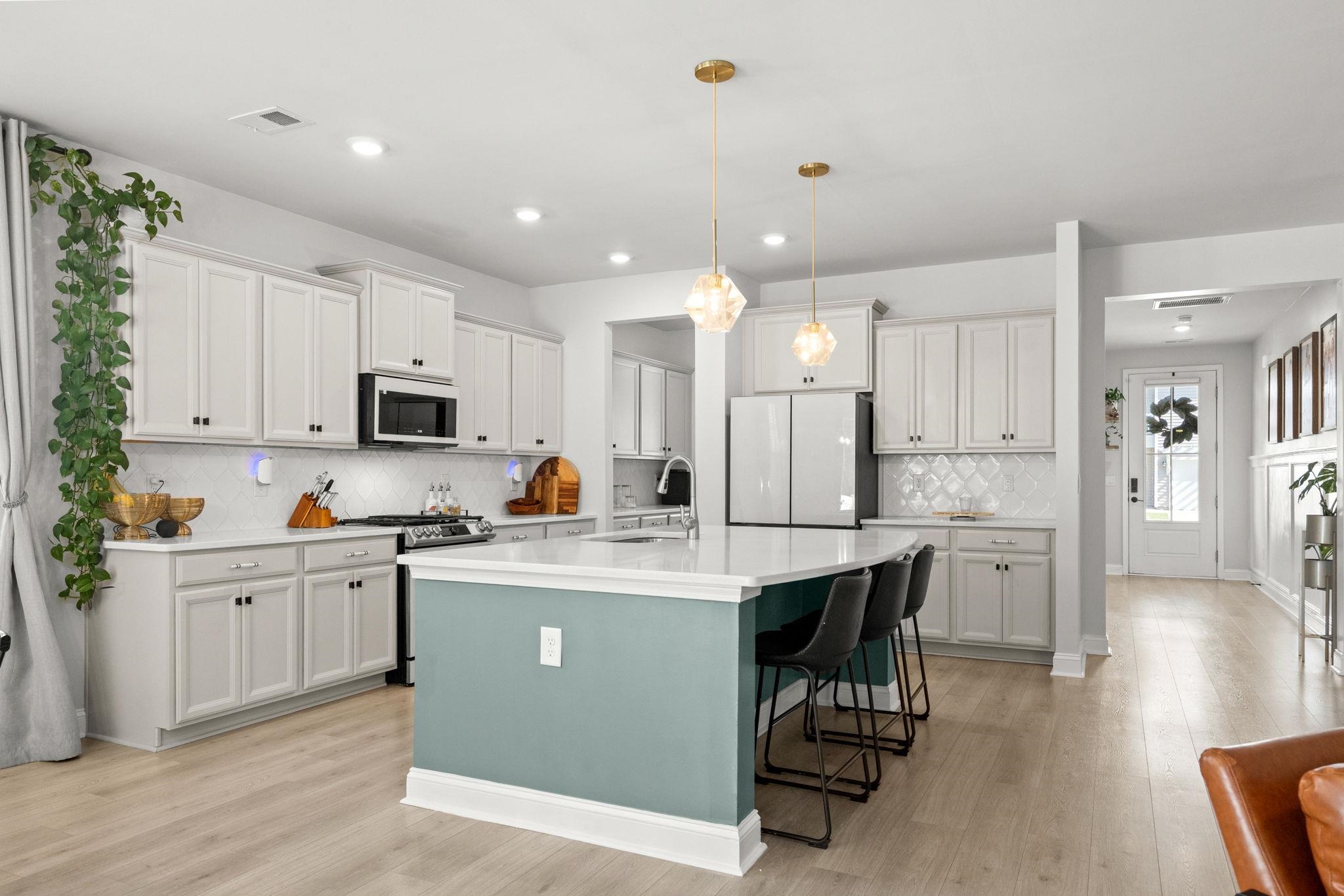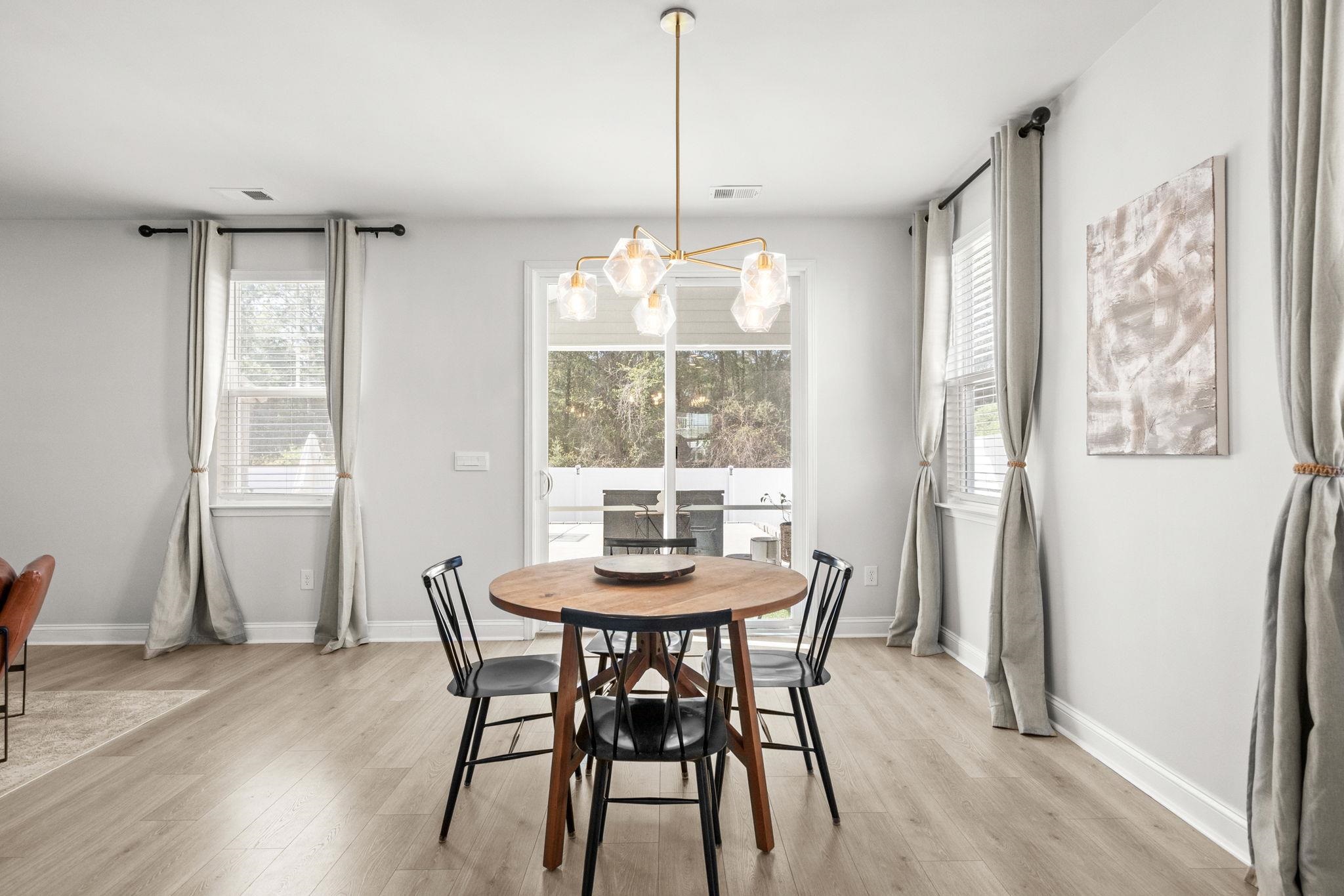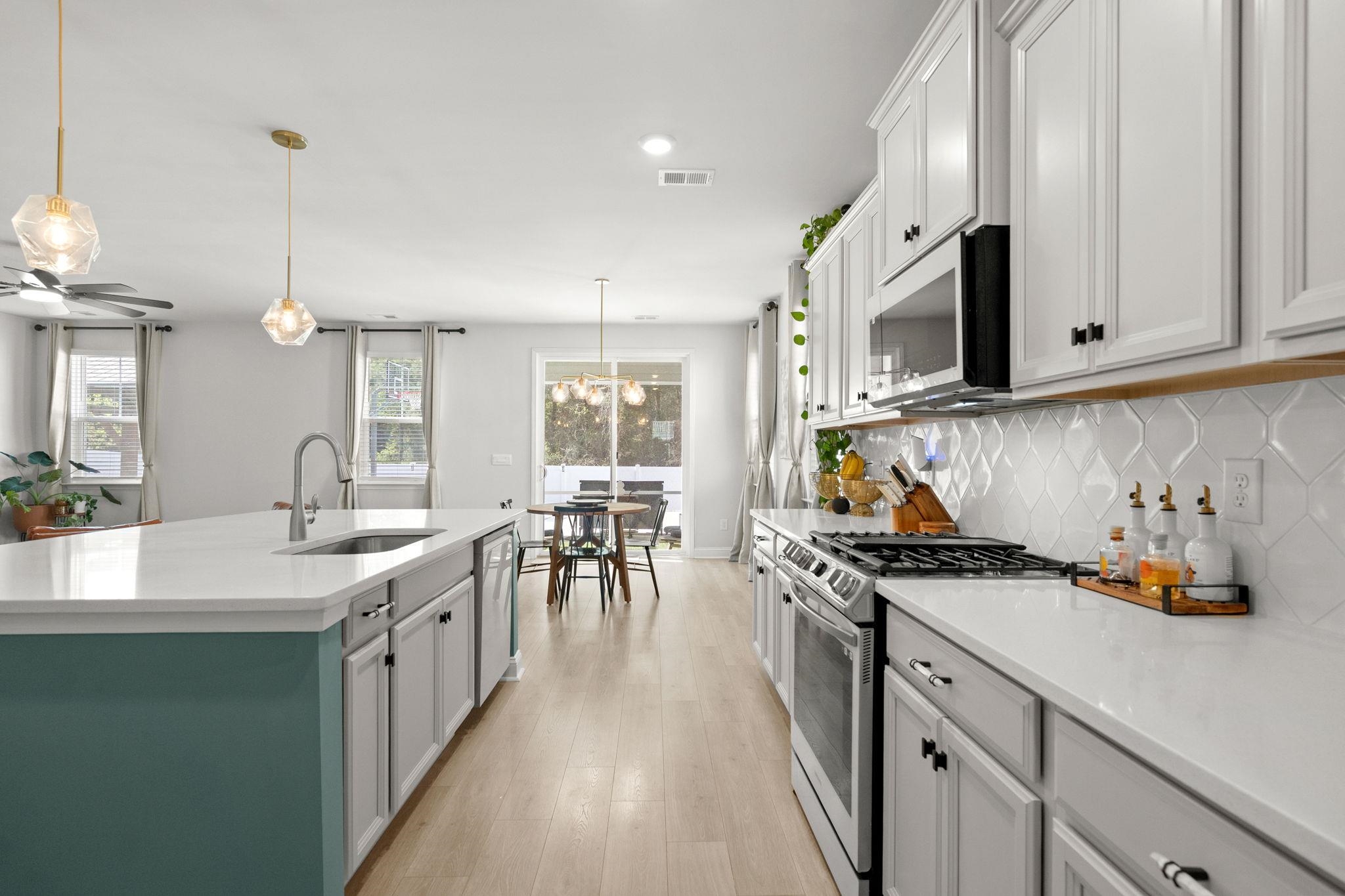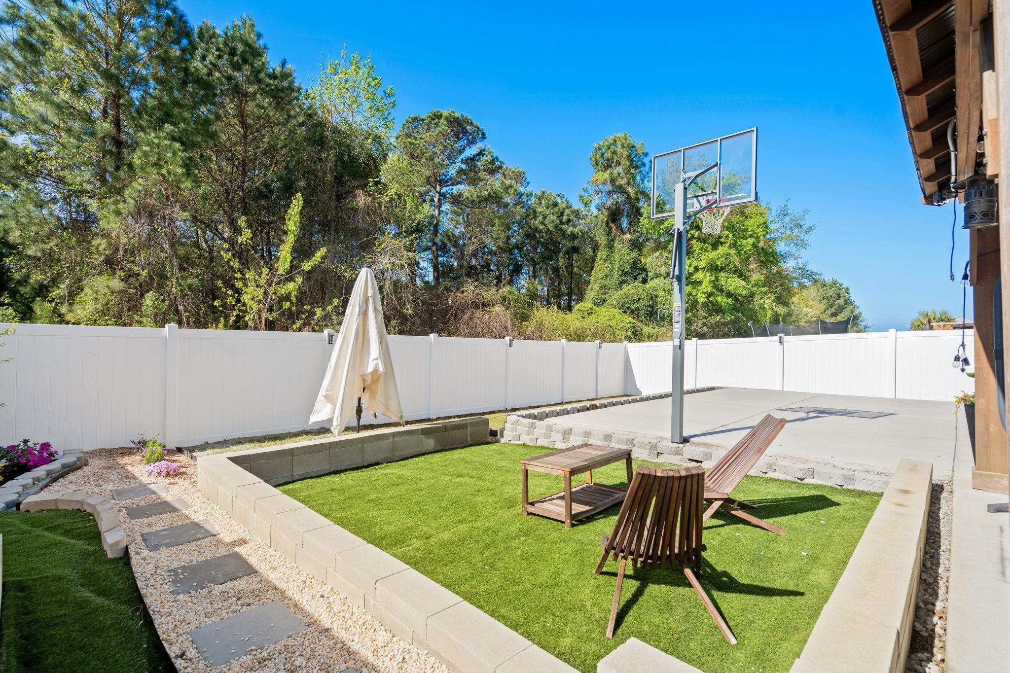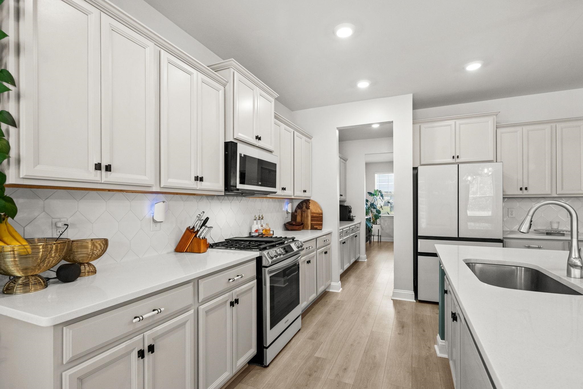 Welcome to this spacious and highly sought after Harbor Oak floor plan located in the natural gas community of The Parks of Carolina Forest, just 15 minutes from the beach. From the moment you arrive, the home’s curb appeal stands out with its stacked double front porches, custom curb edging with river rock mulch, and a tall, elegant entry door that creates a welcoming first impression. Inside, the home is filled with natural light from an abundance of large windows, creating a bright and inviting atmosphere throughout. Just off the foyer, a versatile flex space offers flexible use as a formal dining room, home office, or comfortable sitting area. The open layout continues into a spacious great room designed for comfortable living and effortless entertaining. The kitchen is both functional and beautifully designed, showcasing quartz countertops, a large island with seating, Samsung Bespoke appliances including a gas range, a walk in pantry, and a stunning Butler’s pantry that provides additional prep space and storage. A first floor bedroom and full bathroom offer an ideal setup for guests or multi generational living. Upstairs, the expansive owner’s suite provides a private retreat with a cozy sitting area, a massive walk in closet with direct access to the laundry room, and a well appointed ensuite bath featuring dual vanities, a linen closet, and a large walk in shower. Two additional bedrooms share a full bathroom, while a spacious loft offers flexibility as a second living area, game room, or media space. The backyard is designed for both relaxation and entertaining, featuring a screened porch and an extended oversized patio overlooking a fenced yard with mature trees that provide added privacy. A covered backyard pavilion creates a perfect outdoor living space, complemented by a dedicated sitting area with artificial turf and an inground basketball hoop. The Parks of Carolina Forest offers a scenic setting with beautiful ponds, an impressive amenity center, and the park of the historic Ten Oaks, where walking trails connect directly to the Carolina Forest library. This golf cart friendly neighborhood allows easy access to nearby restaurants and Publix, while its central location provides convenient access to award winning schools, Highway 31, shopping, and the beach just five miles away. This home offers a perfect blend of space, upgrades, and location in one of the most desirable communities in Carolina Forest.