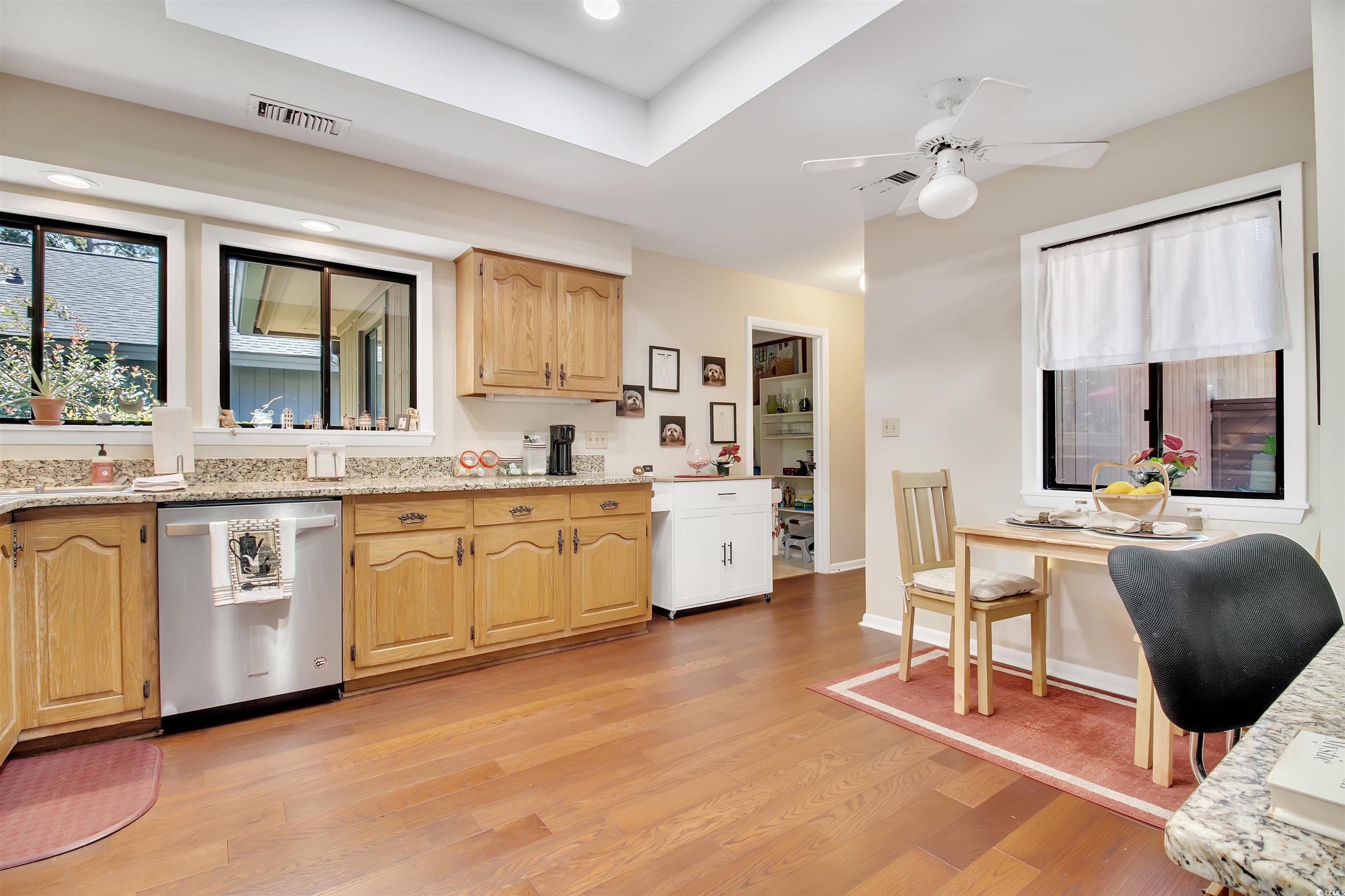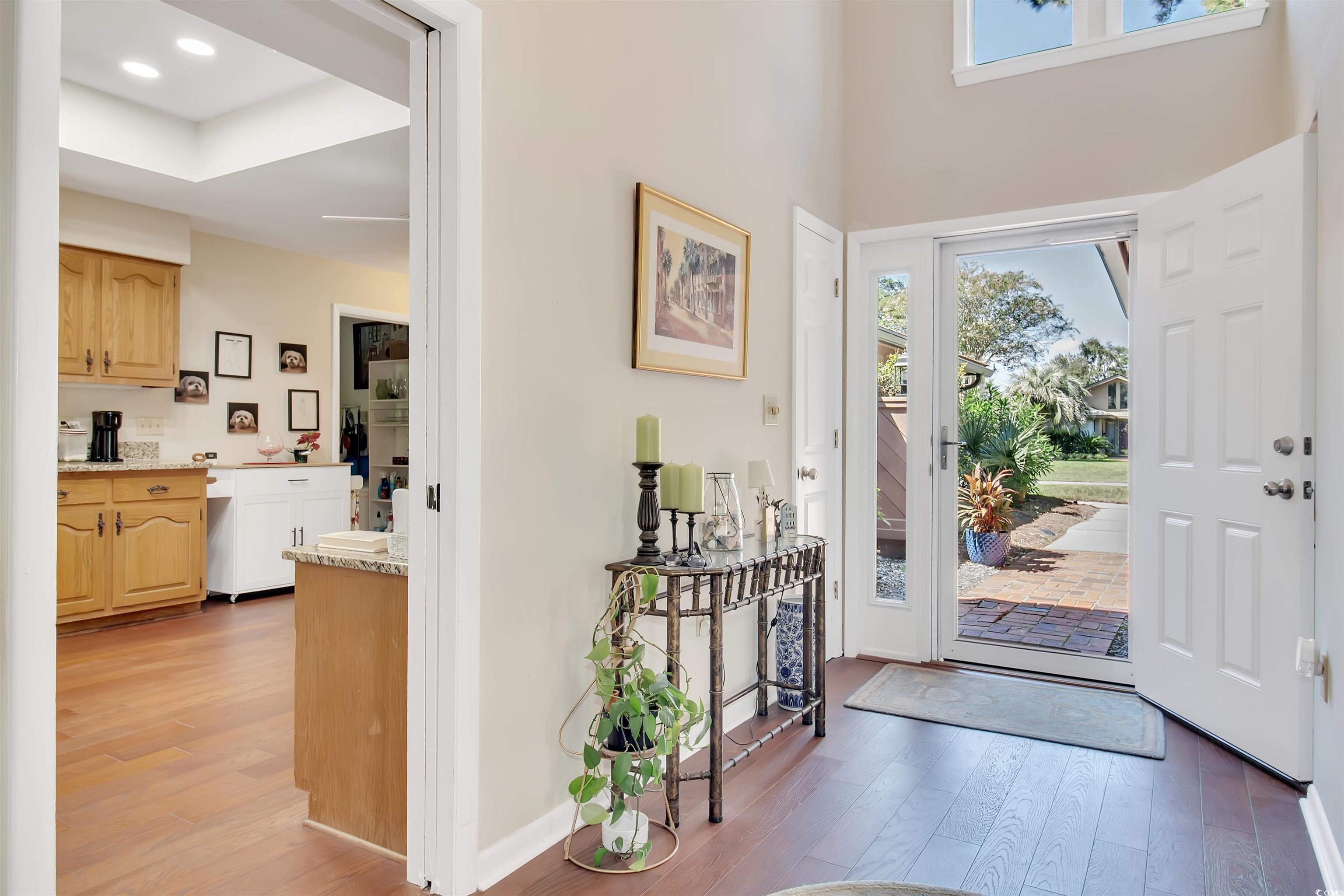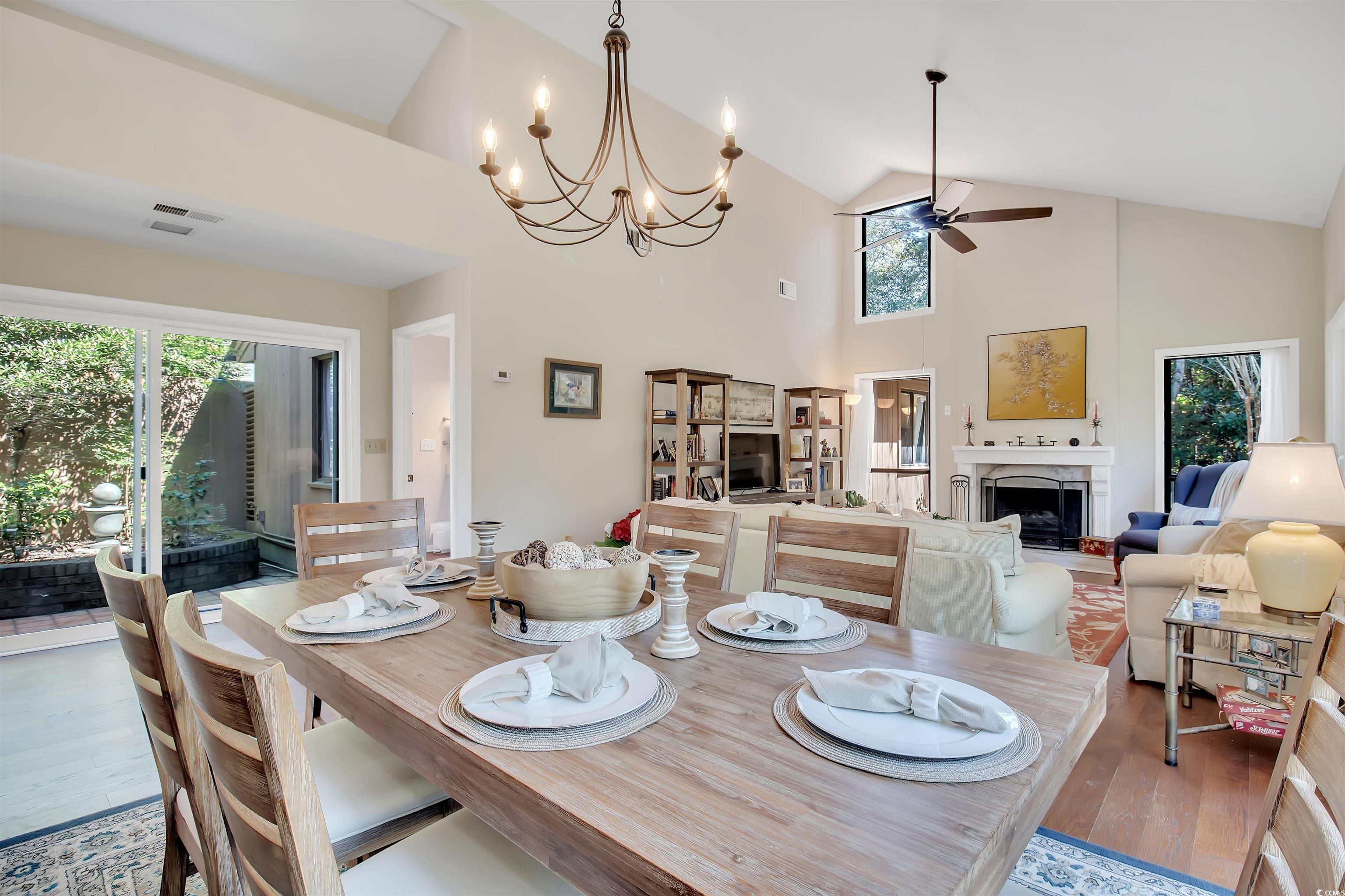 Don't miss the opportunity to own this lovely contemporary 3 bedroom, 2 bath home with an attached garage, in the highly sought after ICW Community of Briarwood. This waterway Community is composed of single family cedar homes, nestled in a forest of mature trees and just minutes from the heart of the Grand Strand. This bright & airy lovely home has an open floor plan with cathedral ceilings and a fireplace as the main focal point of the great room. Two large sliding doors off the living & dining area lead out to the nicely landscaped private back yard. There is also an additional sliding door across the dining area that leads to an outdoor serenity area with plantings and a fountain. The large eat-in kitchen has granite counter tops & stainless steel appliances. The laundry room is adjacent to the kitchen and there is also a small office with a built-in desk & shelving with granite countertops and is conveniently located between the kitchen & laundry room. A nice size primary ensuite with sliding doors that lead out to a screened in porch. Enjoy your morning coffee or evening cocktails in the screened in porch while enjoying nature's sights & sounds in your private yard. The primary bath was tastefully renovated in 2023. There is also a large walk in closet located between the primary bedroom and bath. On the opposite side of the house, there is a large second bedroom with an eight foot wall closet. The third room can be used as a bedroom or flex room and has sliders leading out to the outdoor serenity area. The guest bath is conveniently located between both of the rooms and also has a skylight. The Community Center has a spacious deck with plenty of seating and a pool overlooking the ICW. Enjoy the great views while sunning & swimming or relaxing in the spa. All this and low HOA fees. Briarwood is centrally located and close to Barefoot Landing, golf, restaurants, shopping and the Beach! Area hospitals, medical offices. the Horry County Fire and Rescue Station are also just minutes away. Motivated Seller! Don't miss the opportunity to own this gem!