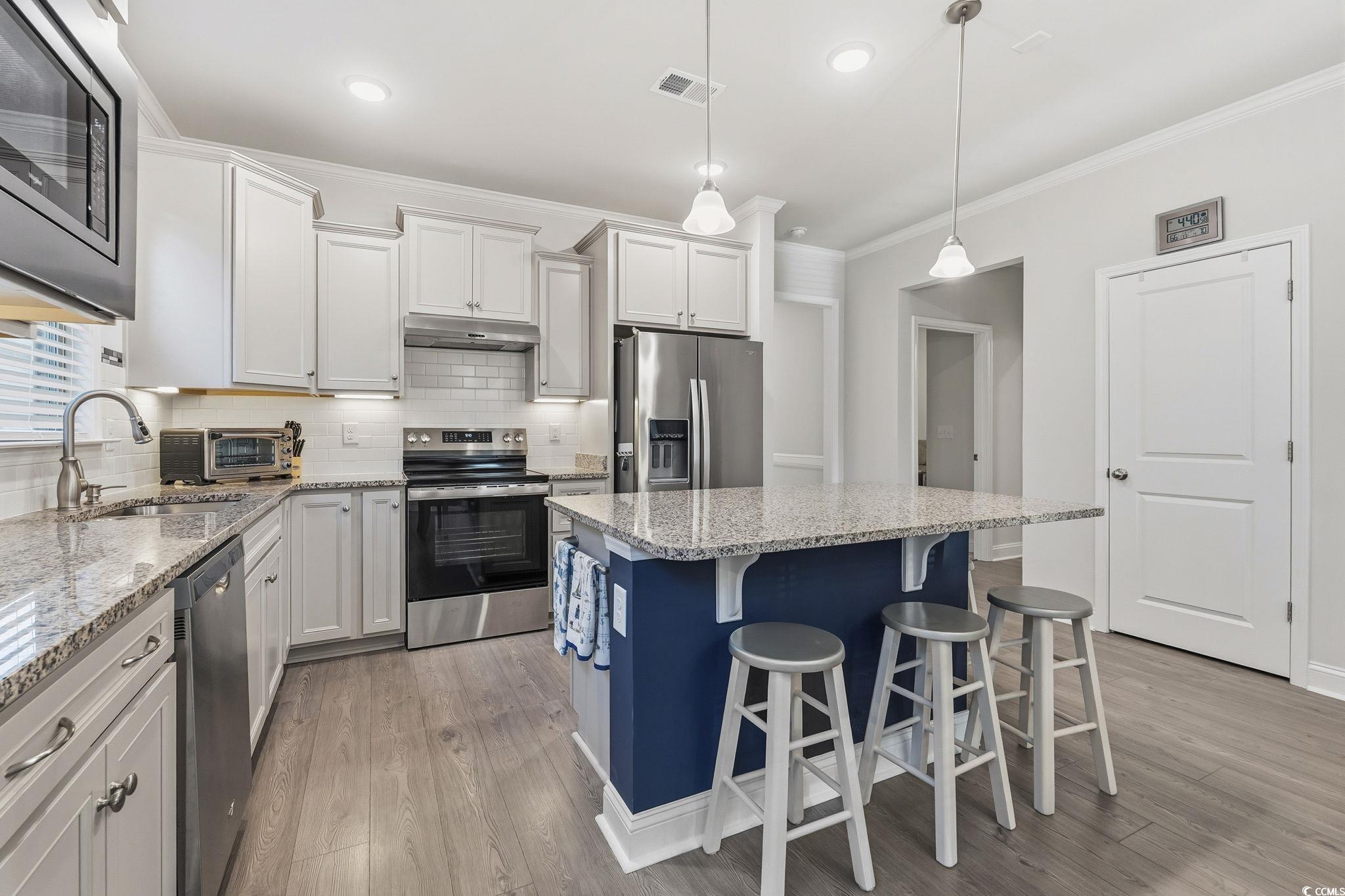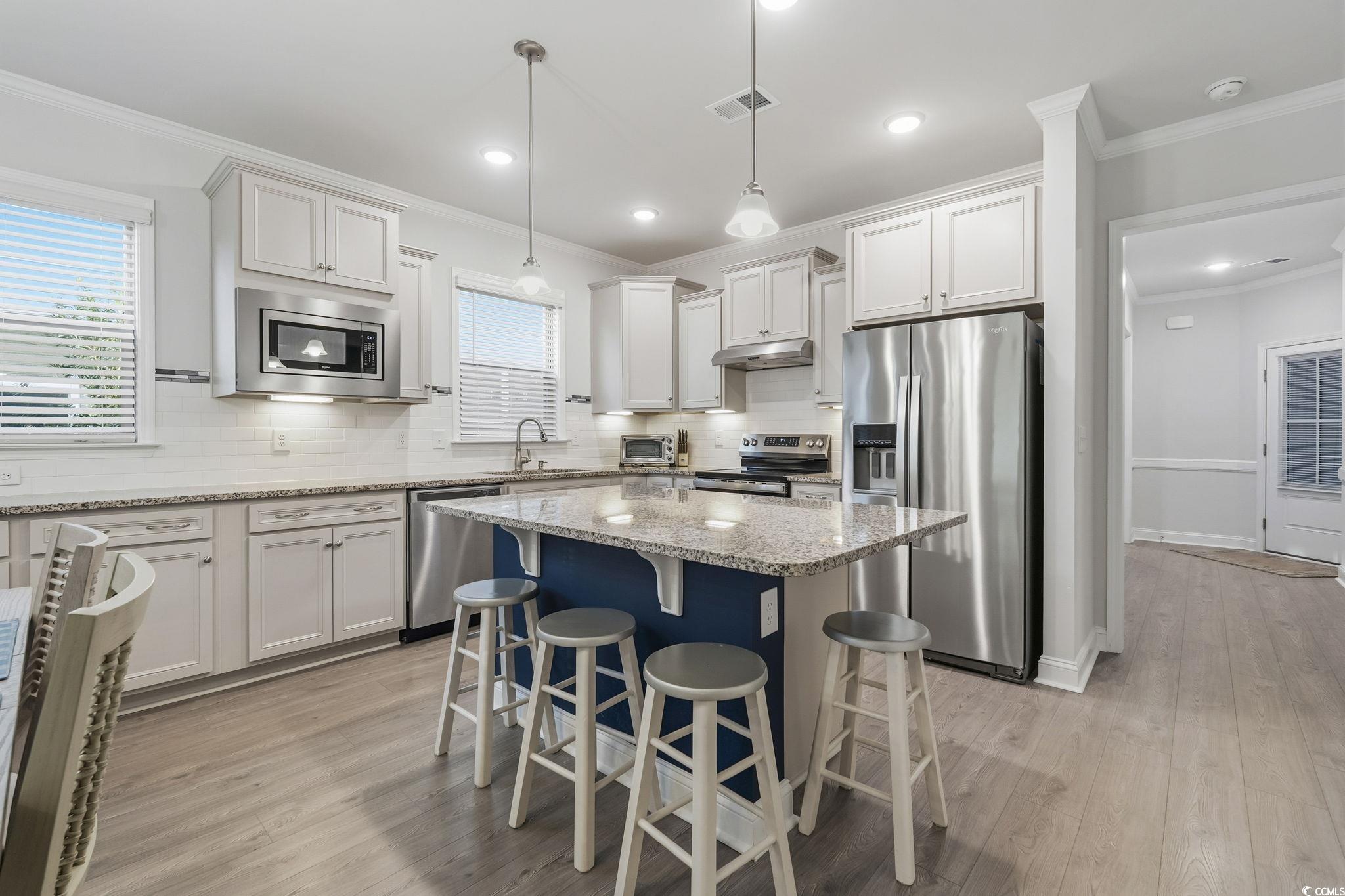 ***OPEN HOUSE FRIDAY November 7th 3pm-5pm, SATURDAY November 8th 12pm -4pm & SUNDAY November 9th 12pm-3pm*** Experience the best of coastal living in this stunning true 3-bedroom, 2-bath waterfront Villa located in the highly sought-after Grande Dunes Del Webb community — an active, 55+ full-amenity neighborhood perfectly situated along the Intracoastal Waterway. This beautiful home features an impressive kitchen with extended counters and cabinetry that make it truly stand out. The 4-stool island, gorgeous granite countertops, upgraded stainless steel appliances, soft-close cabinetry, under-cabinet lighting, and a built-in wine rack create a space that’s both elegant and functional. Thoughtful touches continue throughout with crown and chair moldings, upgraded lighting, and ceiling fans in every room. Step outside to the screened lanai and enjoy breathtaking sunsets over the tranquil pond - the perfect setting for relaxing or entertaining. Additional upgrades include an extended garage, widened driveway, and custom garage shelving for added storage. This home is completely move-in ready and truly shines. Residents enjoy a resort-style, active lifestyle with a 15,000 sq. ft. clubhouse, outdoor and indoor pools, state-of-the-art fitness center, community craft room and kitchen, plus tennis, pickleball, and bocce courts, sidewalks, and miles of biking and walking trails. As a Del Webb resident, you’ll also enjoy exclusive membership to the Grande Dunes Ocean Club, offering PRIVATE BEACH ACCESS and luxurious oceanfront amenities. This Intracoastal Waterway community also offers a day dock and the Grande Dunes Marina just down the street. You’re not just buying a home - you’re embracing a lifestyle.