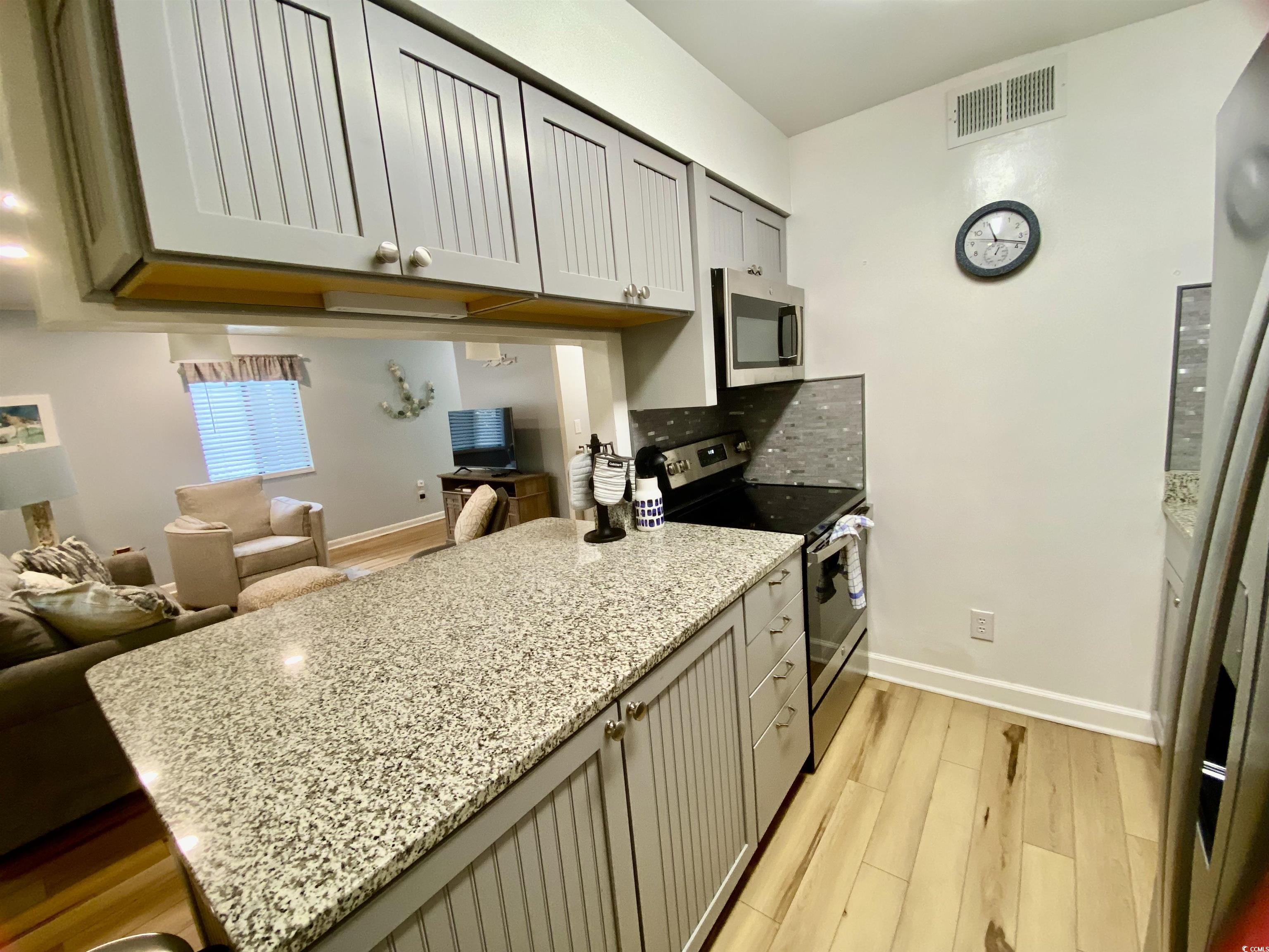 Where in Calabash can you find a WELL-LOCATED 1st floor CONDO that is as pristine or thoughtful? This unit is unbelievably completely redone and is being sold TURNKEY FURNISHED! Truly, what you see is what you gel, even fresh linens and towels are provided! So classy, paints are soft neutral colors and with a new LVP matching floor throughout. So smart for the beach! The popcorn ceiling, likewise, has been removed. Unit has been totally remodeled with new SS kitchen appliances,: stack-able washer/dryer sinks and counter tops/vanities, screens, receptacles, fixtures, and window coverings. Did we say granite -- top of the line pattern throughout along with designer furniture throughout, too. HVAC system is less than two years old. You really need to see how this professionally decorated condo is so perfect in every way, including furniture and linens, artwork and accessories. Accordingly, welcome to the charming condominium neighborhood of Carolina Shores Resort in the enchanting fishing town of Calabash NC, fondly known as the Seafood Capital of the World. But it is so much more, a small-town treasure trove of meandering streets full of culinary delights; crafts, singular beautiful artwork and seasonal destination shopping; antiquing trails, lovely residential homes and much more, all creativity showcasing vibrant stories of this coastal gem -- then and now! So, whether you're hitting the lush greens of a nearby renown golf course, setting sail for a fishing expedition, or simply enjoying a leisurely stroll along the picturesque river front with stops at the bars and restaurants, there's something here for everyone. This unexpectedly perfect condo is the frosting on the Calabash seafood. Architecturally pleasing Carolina Shores Resort has been the historic gateway to Calabash as it is right on the corner of Country Club Dr. and Beach Dr. SW