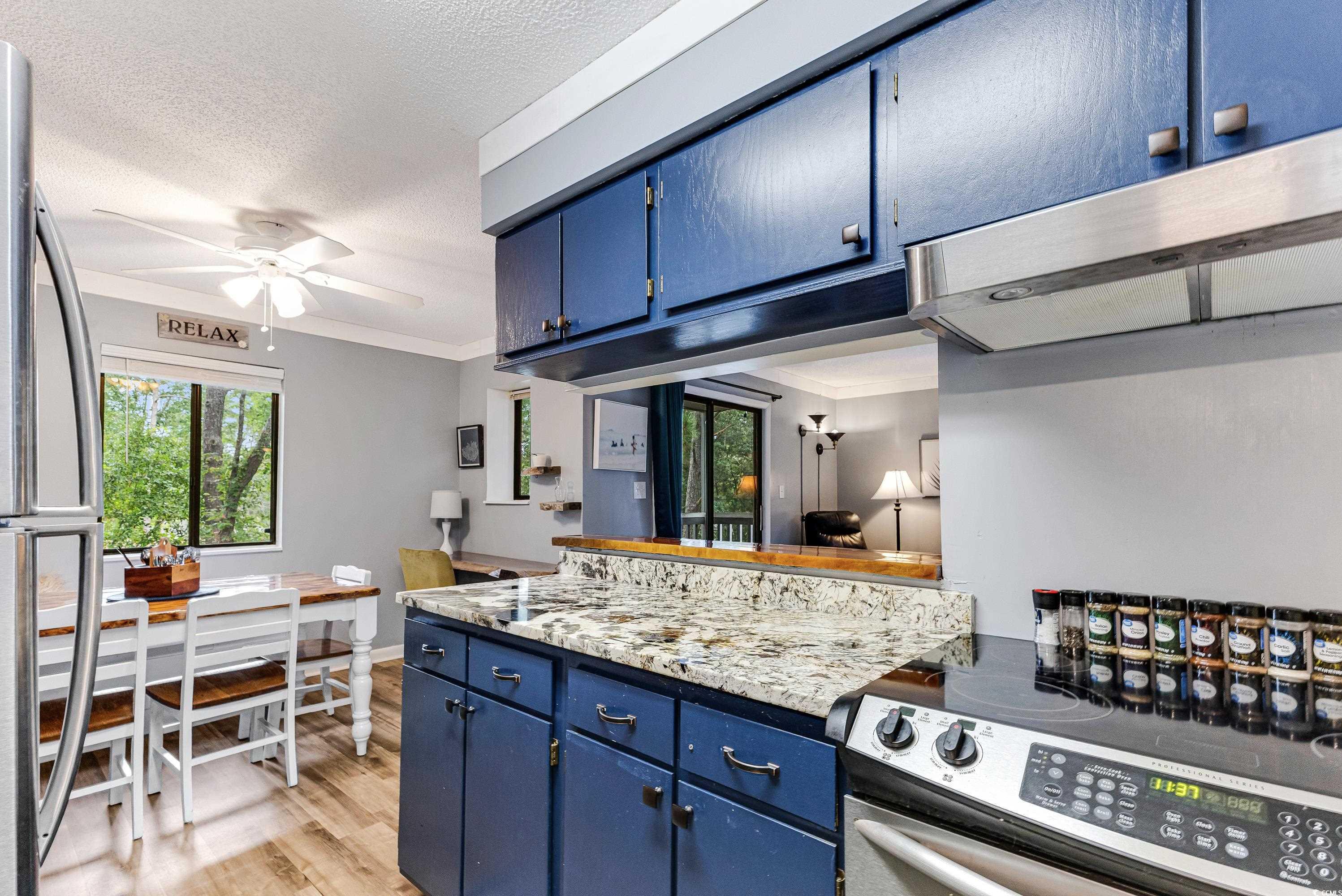 Stylish 2 bedroom, 2 bath condo in the heart of downtown Calabash, the seafood capital of the world. Fully updated from head to toe, including modern bathrooms, granite countertops, stainless steel appliances, a gorgeous wood breakfast bar, cozy dining area with banquette seating, and a neat coffee bar in the living room. Fully furnished and move-in ready, just minutes from the area's beaches and golf courses and within walking distance to the dining and shopping of Calabash. Outdoor entertaining is easy on the screened porch overlooking a peaceful wooded area. This is the perfect affordable beach getaway!
