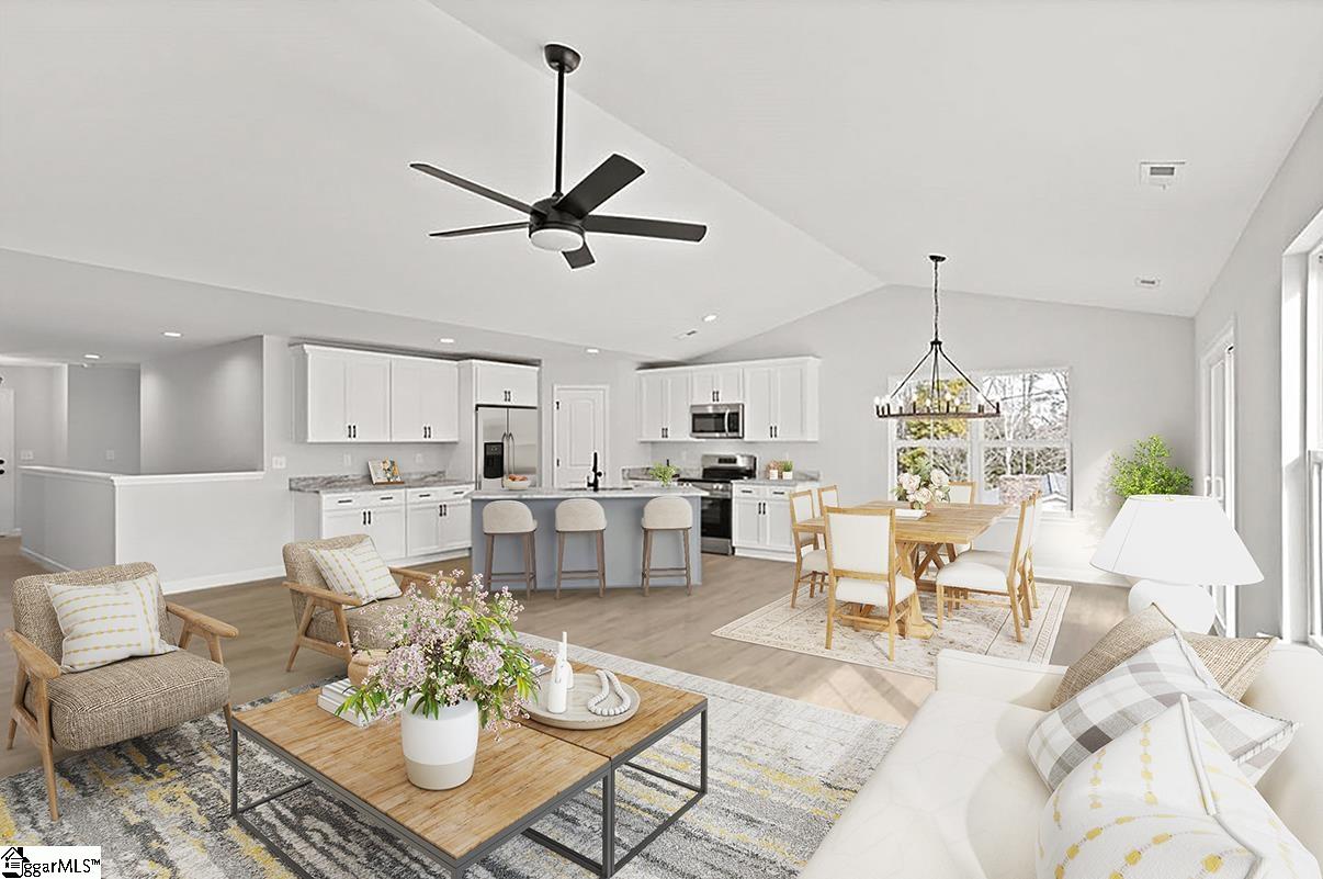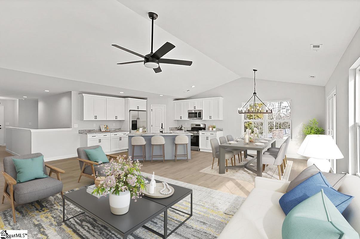Better than new home with two full living spaces on a private half-acre, no HOA. This beautifully designed home offers a layout that truly works for today’s lifestyle. The open main level features a vaulted great room filled with natural light, an oversized kitchen island, and a dining area that flows seamlessly for everyday living and entertaining. What sets this home apart is the fully finished lower level, offering an expansive media room, game room, home office, and a kitchenette with dining space. Whether you need room for teens, guests, working from home, or hosting friends, this lower-level functions like a second living space, something rarely found in this price range. The primary suite is a relaxing retreat with a spa-style bath, soaking tub, walk-in shower, and double vanity. Two additional bedrooms and a full bath on the main level provide easy one-level living, while the lower level adds incredible flexibility for the future. Outside, enjoy a private half-acre lot with no HOA restrictions and plenty of room for outdoor living, entertaining, or future additions. If you’ve been looking for a home that feels brand new, offers space to grow, and provides flexibility most homes don’t, this one stands out. -Finished Basement with media room, game room, office and kitchenette. -Two full living spaces -Open main level layout with vaulted great room -Oversized Kitchen Island -Primary suite on main level -Ideal for families, guests, or work from home buyers. -NO HOA