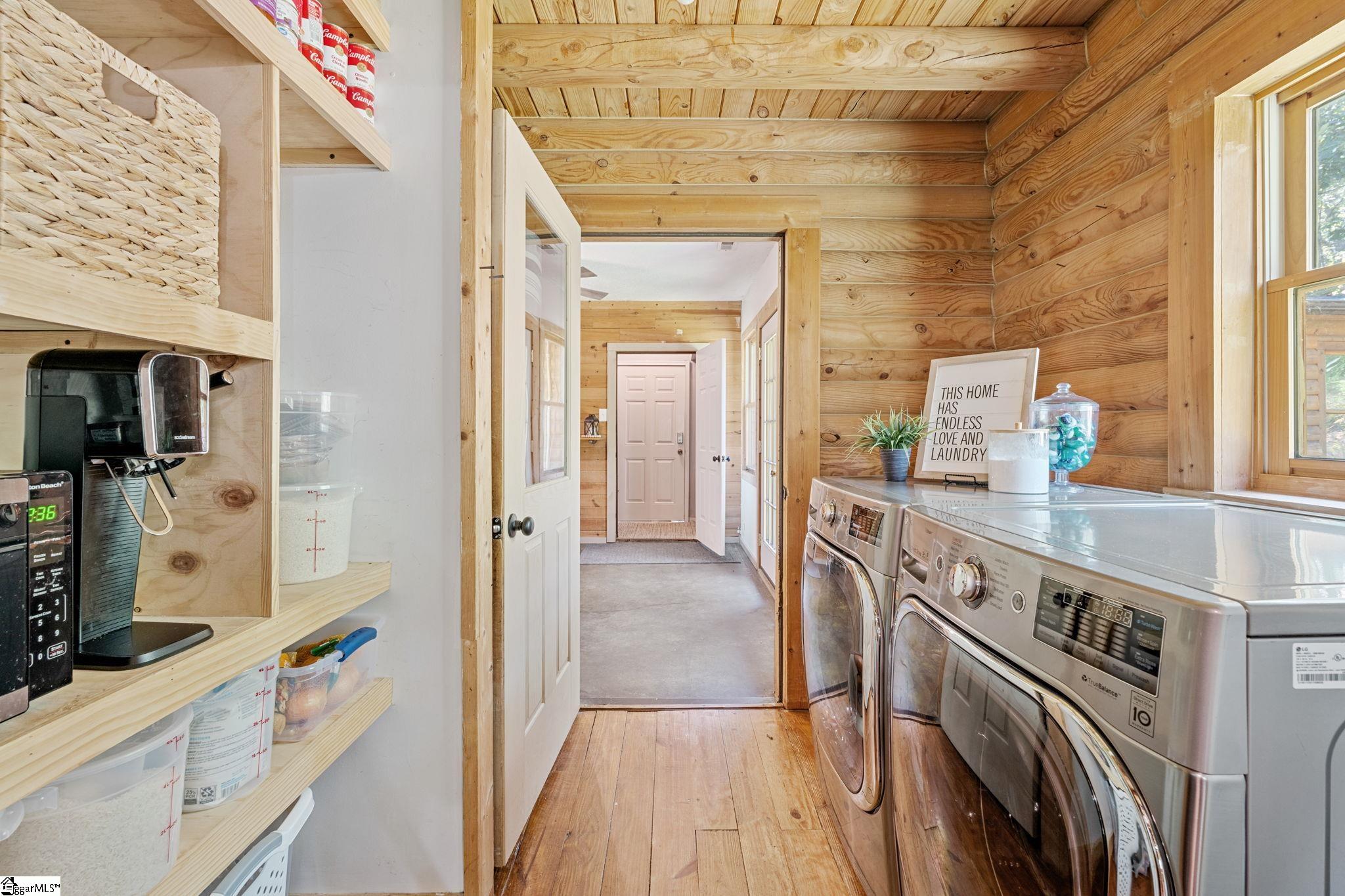 Nestled on 3.55 private acres along South Carolina’s scenic Highway 11, this 2,900 sqft log cabin offers a rustic retreat with endless potential. Featuring 3 bedrooms, 3.5 bathrooms, and a spacious room over the 3-car garage, this home combines mountain charm with flexible living spaces. Step inside to soaring cathedral ceilings in the living room and a kitchen designed to impress—complete with abundant countertops, storage, and a walk-in pantry. The main-level master suite includes a walk-in closet and an unfinished full bathroom, giving you a blank canvas to create your dream spa-like retreat. A generous walk-in laundry room adds even more convenience and storage. Upstairs, a loft area overlooks the two-story dining and living room, while two oversized guest bedrooms share access to another unfinished full bath, ready for your vision to take over the space. Above the garage sits a massive room with its own full bathroom which could be a fourth bedroom or a fun flex space. Each bay of the 3 car garage is oversized, totaling just under 1,500 sqft, and offers more than parking. With a storage room, workshop space, half bath, and yard door, it’s a true extension of the home, ready to serve a variety of needs. As you walk into the house from the garage, you’ll find another large flexible room perfect for a home office, mudroom, or hobby space. Enjoy the peaceful sights and sounds of nature from the 40-foot front porch or explore the wooded acreage with a creek running along the back of the property. The flat backyard is the ideal spot for a future deck or outdoor entertaining area. You’re bound to see endless wildlife no matter where you venture on this 3.55 acer lot! A roof was just installed in 2025, dual HVAC systems were replaced in 2019, and all kitchen appliances convey at closing. This property is minutes from Victoria Valley Vineyards, Aunt Sue’s, Table Rock State Park, The Rock Golf Course, Bald Rock, Caesar’s Head State Park, and numerous beautiful scenic hiking trails and waterfalls. The home does require some renovation work and will not qualify for traditional financing. It is being sold as-is with the seller providing ample of time for inspections to be performed. This beautiful log cabin is priced ready to sale, making it an excellent opportunity for buyers seeking an unique property to customize.