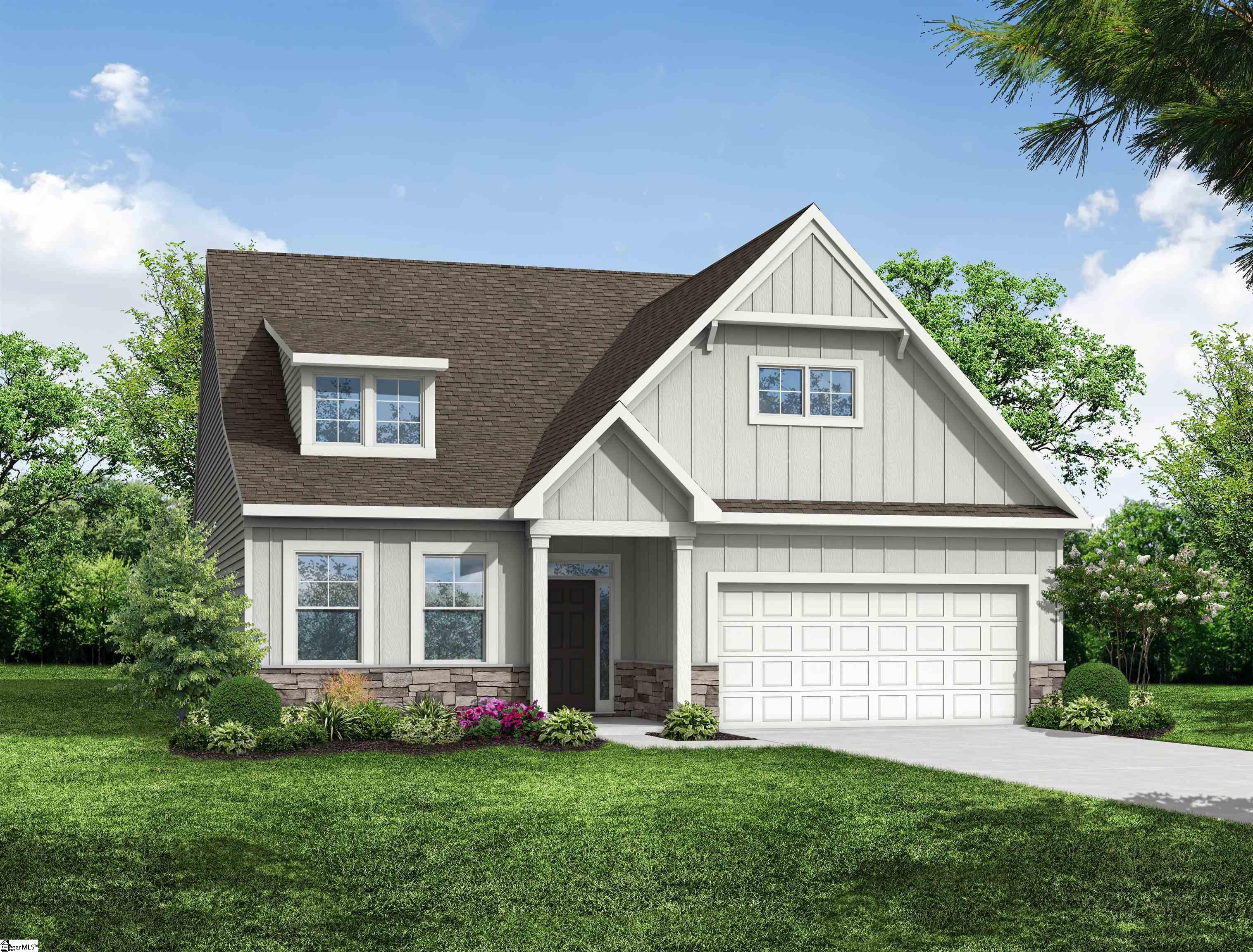 Brand New Construction! This beautifully designed 4-bedroom, 3-bath home includes a spacious and functional layout with a versatile loft. The primary suite and two secondary bedrooms are conveniently located on the main level. Enjoy outdoor living year-round on the rear covered porch. The gourmet kitchen features quartz countertops, tile backsplash, pendant lighting over the island, LED disc lighting, and stainless steel appliances—perfect for both everyday living and entertaining. The great room is anchored by a cozy gas fireplace, while upgraded cabinetry and EVP flooring flow throughout the home, adding style and durability. The main-level primary suite is a true retreat, complete with a luxurious bath featuring a separate tiled walk-in shower, garden tub, tiled flooring, and dual vanities. All secondary bathrooms also include upgraded cabinetry and quartz countertops. Upstairs, you’ll find a spacious loft along with an additional bedroom and full bath—ideal for guests or a private living area. Additional highlights include upgraded trim, lighting, and plumbing fixtures throughout, a structured wiring package, finished garage, and a built-in pest control system. Enjoy community tot lot, walking trails, firepit and pickleball.