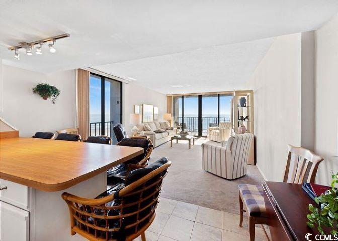 Arcadian One just might be the most unique and desirable location on the Grand Strand. Although somewhat private, it is within walking distance of the beautiful Arcadian Shores golf course and Apache fishing pier; less than 2 miles to groceries, pharmacies, urgent medicalcare, restaurants, major retail shopping, and fire station; only about a 5-minute drive to more restaurants and entertainment attractions,e.g. Carolina Opry, Pirates Voyage, Alabama Theater, Barefoot Landing, Duplin Winery, Broadway at the Beach, and much much more along restaurant row. There is on-site rental office, security, and maintenance personnel. The property features a social room for entertaining, and an ocean front picnic area with grills for cookouts. There is a locked pool side owners’ storage for beach chairs and umbrellas. This 3-BR/2 BT ocean front condo is fully furnished and move in ready. Ocean front balcony offers stunning unobstructed views of the sand and waves of the beautiful Atlantic Ocean where you will see swimmers, boats, occassional dolphins, and you might even get a glance of a whale. This unique property is suitable as a full-time or part-time residence and/or a great investment property.