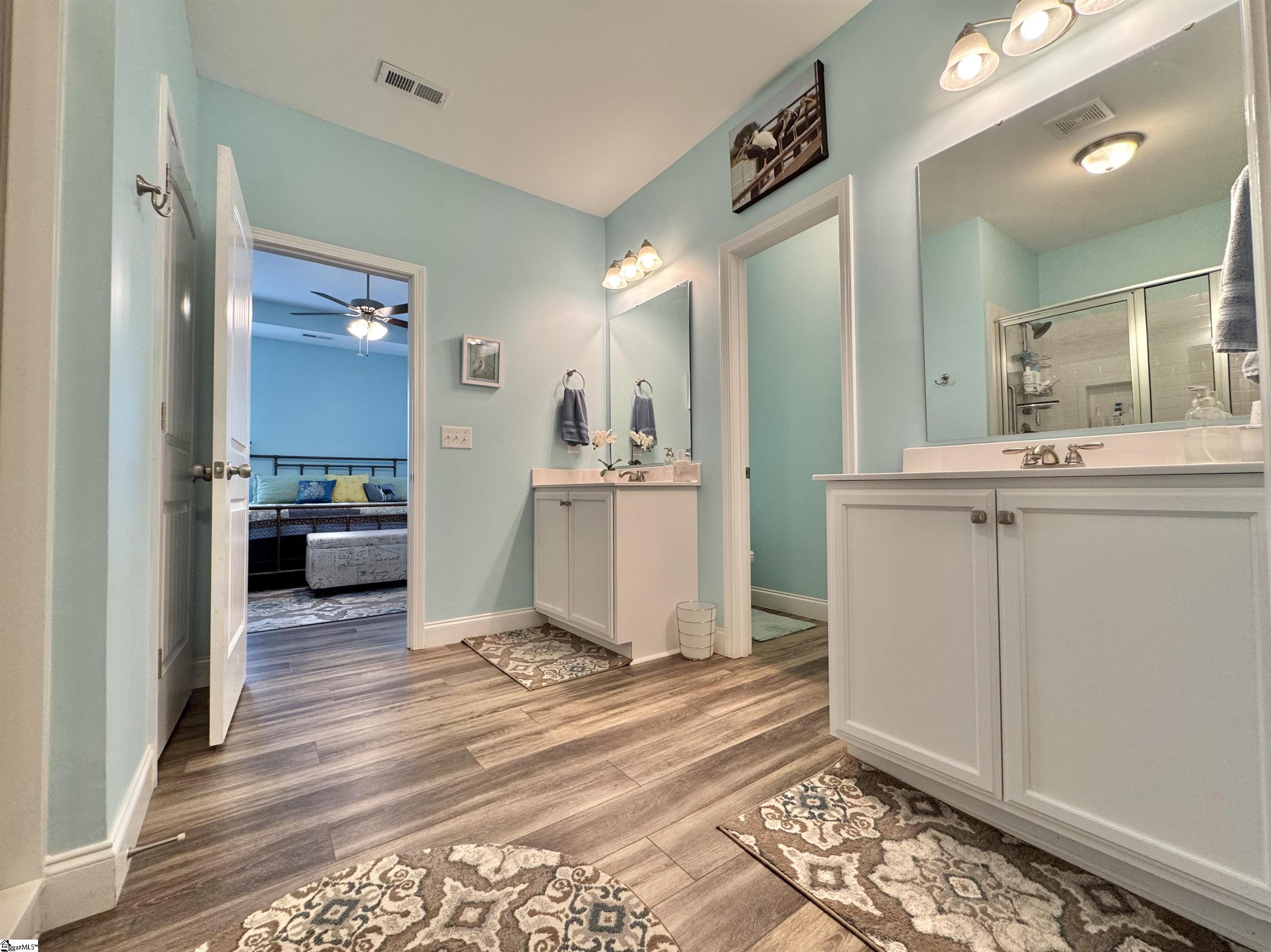 This stunning home in Old Bethlehem Commons offers the perfect blend of modern design, flexible living, and small community charm with a true country setting. Step into a welcoming foyer and discover a tremendously versatile floor plan. Just off the entry, a front room with elegant glass French doors offers the perfect space for a home office, formal dining, or quiet study. The heart of this home is the beautifully appointed kitchen featuring striking cabinetry, granite countertops, and a massive 9+ foot island overlooking the living room with vaulted ceilings, ideal for entertaining. Off of the living area is an additional space for dining, a reading nook, or room to extend your living area. The spacious master suite is a true retreat offering a tray ceiling, double vanities, a walk-in shower with white subway-style cultured marble, and generous walk-in closet custom designed by Carolina Closets. Durable upgraded flooring runs throughout the halls and main living spaces, adding warmth and style. Additional highlights include an oversized mudroom/laundry area, a bonus room for even more flexible space or 4th Bedroom, ceiling fans in all bedrooms, baths with chair height toilets, closets/pantry with 16” shelving, and a fully fenced backyard ideal for kids, pets, or weekend barbecues. French doors lead to a spacious 10x20 covered back patio, perfect for year-round outdoor enjoyment. Enjoy the convenience of an oversized .74-acre homesite and a 20x24 detached insulated garage with added lighting and electrical outlets perfect for extra storage, hobbies, or recreational gear. The additional 10x16 building with built in ramp can convey with acceptable offer. Relax knowing this home comes with a transferable termite bond. Located in a quaint 7-home community just minutes from the Pickens Golf Club, shopping, dining, schools, hospital, Downtown Easley, Downtown Pickens by easy access to Hwy 8 and Hwy 123. Only 20 Minutes to Clemson University, Tri-County Technical College, Southern Wesleyan University and 30 minutes to Downtown Greenville. This distinctive home truly has it all. Welcome home!