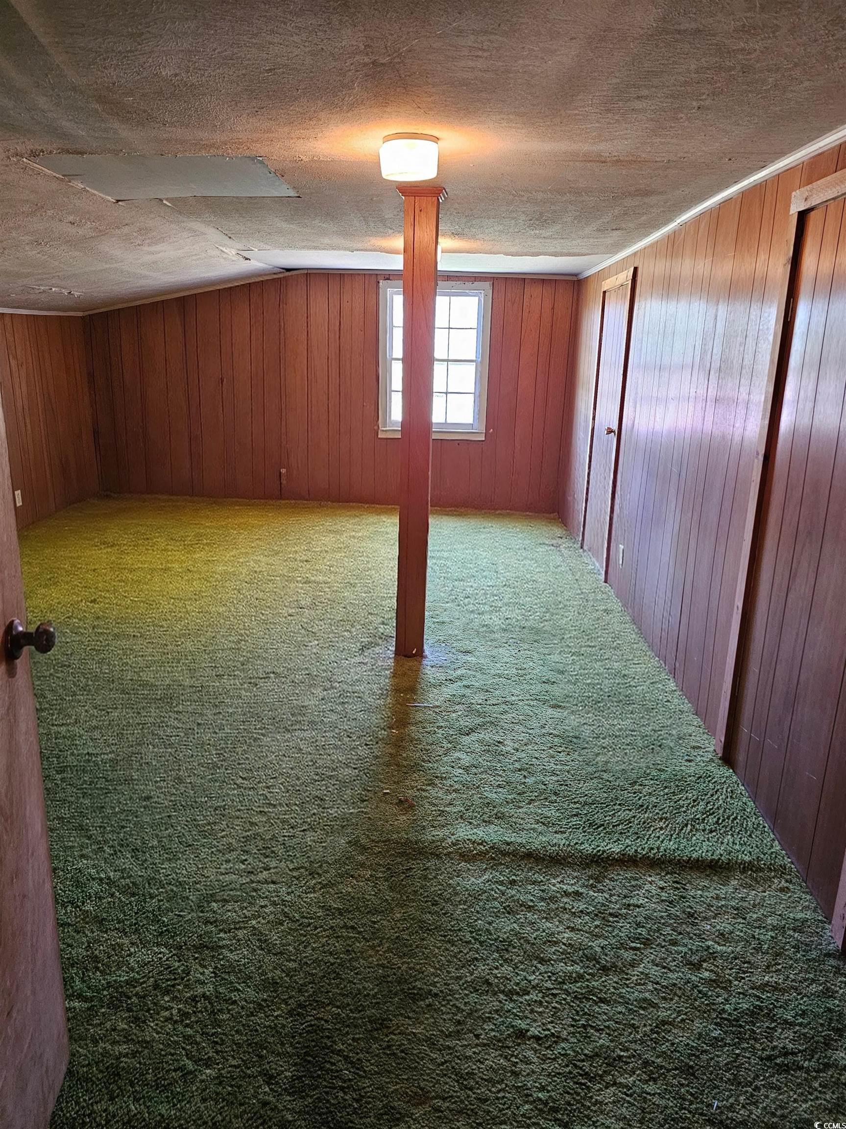 Welcome to this charming 1 1/2 story brick country home located on .87 acres of peaceful, serene land outside city limits. This cozy home features 2 bedrooms with a possible 3rd bedroom or bonus room upstairs, complete with a huge walk-in closet. The main level boasts cathedral ceilings in the living room and dining area, and faux wood beams throughout the den, living room, dining room, and kitchen. Enjoy the natural light that shines through the stunning stainglass window in the mornings, as well as the bay window, brick fireplace, and custom built-in bookcases and desks. The kitchen offers plenty of cabinet space, while plantation shutter blinds and hardwood floors add to the home's charm. Outside, you'll find a detached cinderblock building with electricity, as well as a detached metal building with electricity, a 220 outlet, and a garage bay door on a concrete pad with a porch. This property is perfect for those looking for a quiet retreat with no HOA, yet still just a quick drive to Myrtle Beach or Florence. Don't miss out on this unique opportunity to own a piece of country paradise!