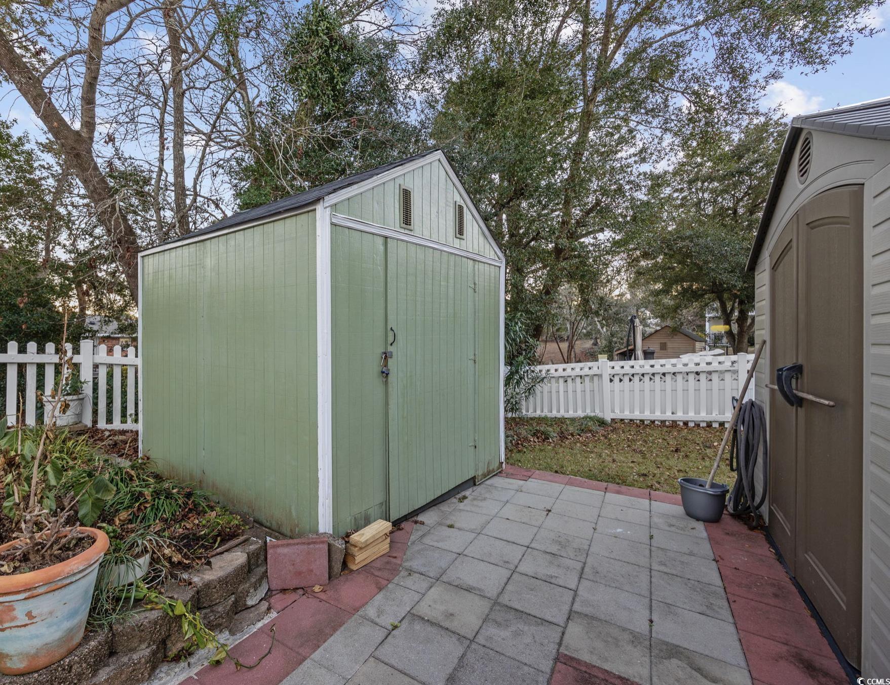 NEW REDUCTION!!! Homes in Washington’s Walk rarely come on the market. It’s because everyone loves living there! Located on the east side of Hwy 17 in the desirable Cherry Grove section of North Myrtle Beach. So close to the ocean but tucked back on a cul-de-sac, in a small, quiet neighborhood. Walk, bike or golf cart to the beach. This charming 3-bedroom 2.5 bath home has been meticulously maintained both inside and outside. The exterior facade is misleading. One step inside reveals a very spacious home! Kitchen, dining, living, laundry, half bath and master suite are all on ground level. Freshly painted, luxury vinyl plank floors, solid surfaces in the kitchen are just a few of the upgrades. 2 bedrooms with a shared bathroom are on the second level. You are going to love the outside of this home as much as the inside. Out the back door from the living area, you enter a fully fenced, private and almost secluded tropical paradise three seasons of the year. A very comfortable sitting area surrounded by palms and shade trees along with many perennials to provide color almost all year. Also included in the back yard are 2 storage sheds, a storage closet and an outdoor shower along with an irrigation system. This is where you will want to spend your free time when you are at home. Be sure to check out the photos from last summer with the lush green Bermuda grass and all the beautiful blooms! Come take a look and fall in love with this house and community! Come take a look! Great home, great neighborhood and close to the beach!