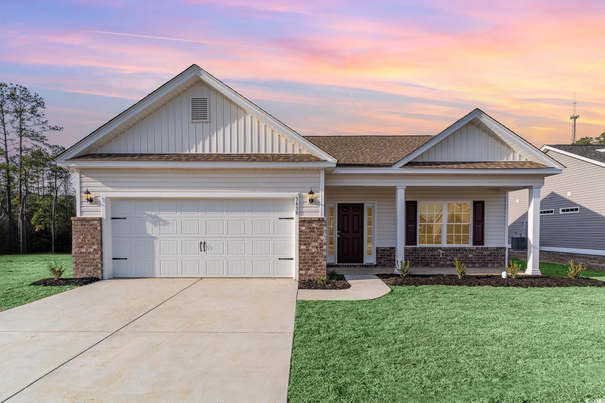 Quick Move In Home! Enjoy the freedom of owning a low maintenance, single level home that checks all the boxes. The spacious Busbee floor plan located on a stunning pond lot features Aristokraft cabinets and spacious counter space with a floating island great for entertaining, spacious pantry, ample closets for storage, and low maintenance waterproof laminate flooring gives the look of wood with easy care and cleanup. The private master suite also offers a large walk-in closet and 5' shower and spacious vanity. Other features and benefits of this home include but are not limited to; designer kitchen featuring stainless Steel appliances, profiled Aristokraft™ Shaker style Cabinets with hardware, granite countertop package with polished stainless steel sink and pull out faucet, durable waterproof LVP flooring in living areas with stain resistant carpet in bedrooms, interior trim package includes window casings and stool for durability and appeal, relaxing baths with cultured marble countertops with integral bowl; executive height vanities in all bathrooms; elongated toilets; contoured fiberglass shower and tub units, maintenance free exterior features such as premium vinyl siding, soffits and fascia; and high performance GAF™ Architectural shingles, spacious covered rear porch overlooking extra grilling patio, natural gas package including gas heat, Rinnai™ tankless Hot water, and gas range, covered rear porch and patio, vaulted ceilings, 2 car painted and trimmed garage with Liftmaster™ MyQ wifi enabled garage door opener, and drop down attic access for storage. Woodside Crossing is located on Four Mile Rd just 10 minutes to downtown Conway and minutes from Hwy 22 with quick access to Myrtle Beach, Little River, North Myrtle Beach, etc. Building lifestyles for over 40 years, we remain the premier home builder along the Grand Strand. We’re proud to be the 2021, 2022, 2023, and 2024 winners of both WMBF News' and The Sun News Best Home Builder award, 2023 and 2024 winners of the Myrtle Beach Herald's Best Residential Real Estate Developer award, and 2024 winners of The Horry Independent’s Best Residential Real Estate Developer and Best New Home Builder award. Pictures, photos, colors, and layouts are for illustration purposes only and can vary from home to home. Customization may be possible – call listing agent for availability. Square footages are approximate.