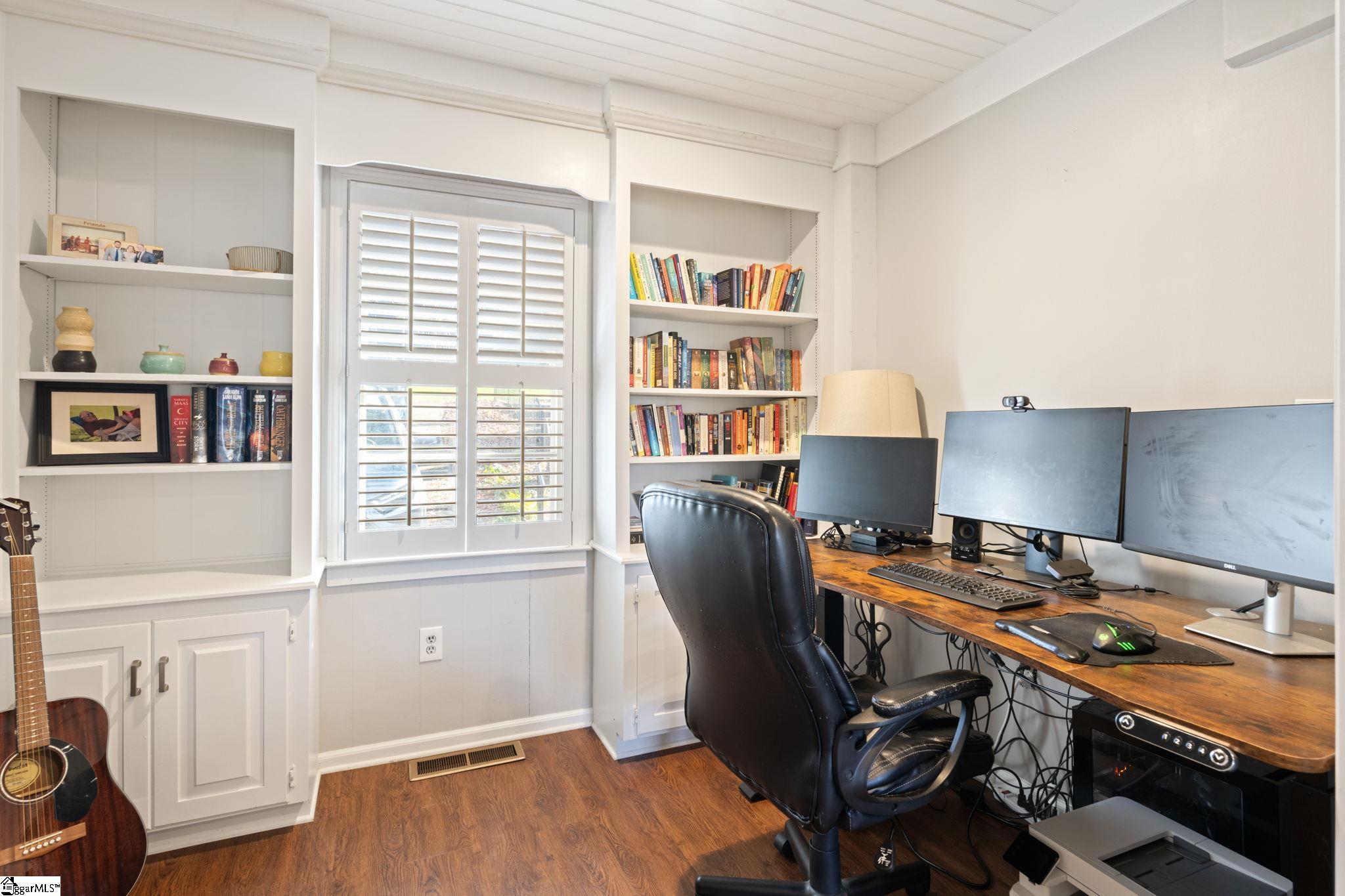Homes like this do not come on the market often! Tree lined streets AND incredible proximity to downtown Greenville--this one needs to be on your list to tour. This beautiful home features original hardwood floors and an expansive and updated kitchen. The owners have taken great care to make each space feel like home. A large living room opens into a bright dining area with a sitting area by the fire. There is also a fantastic office with built in bookshelves. Each of the two bathrooms have been updated as well! The primary bedroom features a walk in closet and plenty of space. The unfinished basement can be used as a gym, garage, or workshop or could be finished to accommodate more everyday living space.