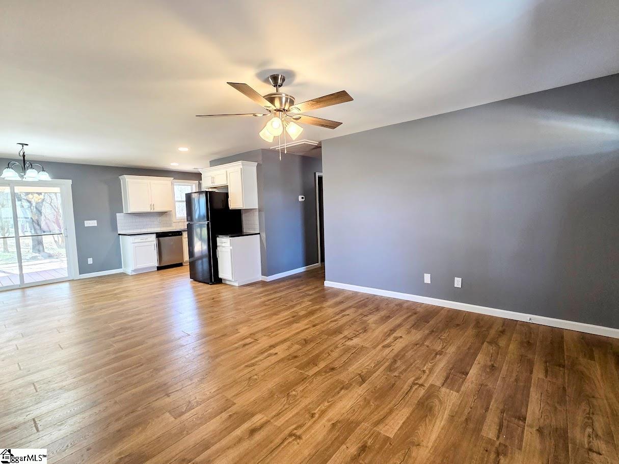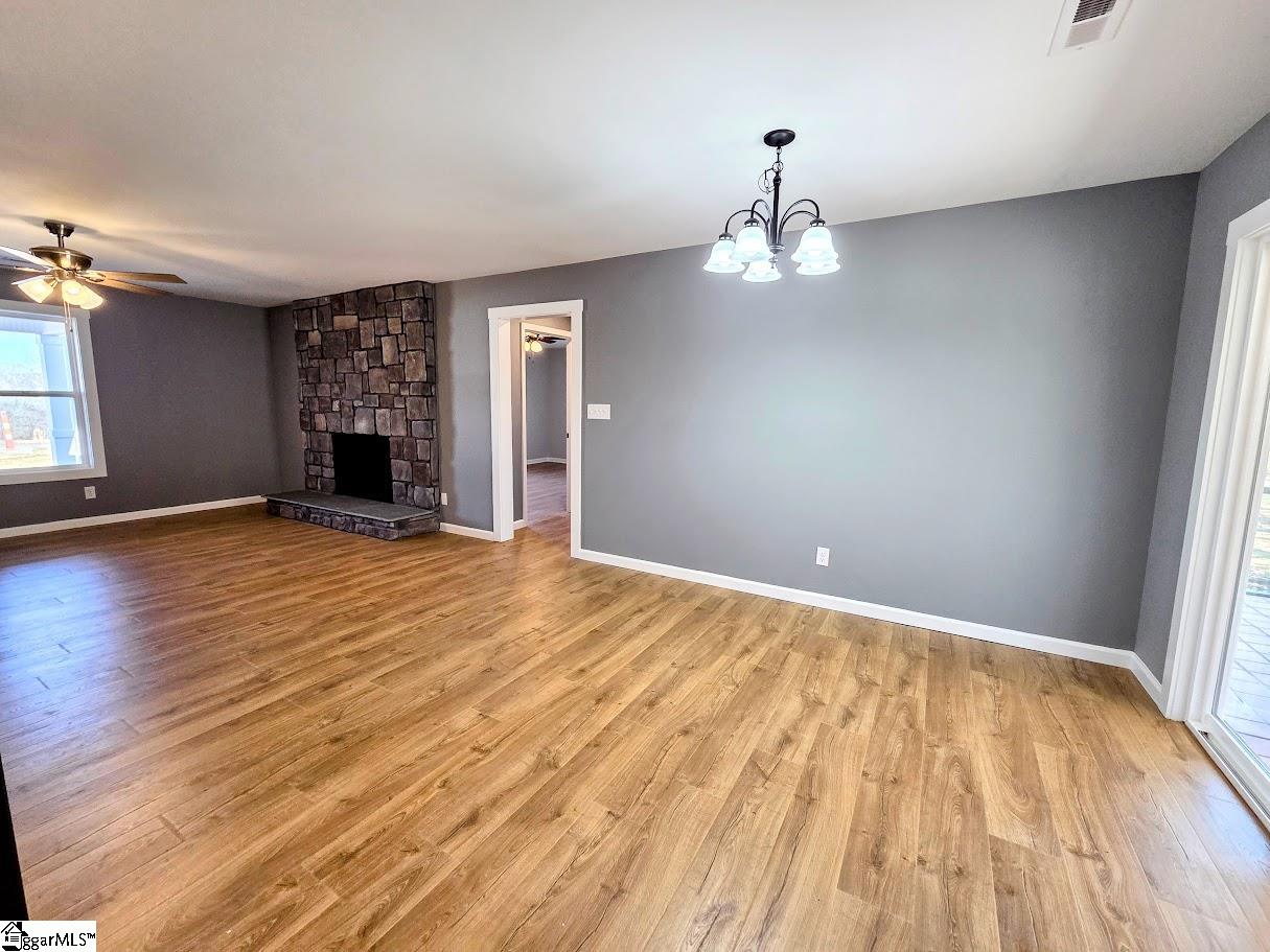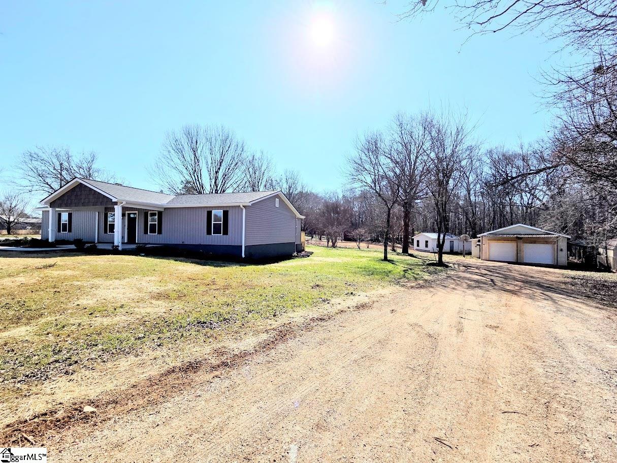 Welcome to 103 Blossom Branch Ext, a stunning 4-bedroom, 2-bathroom home located in the charming town of Piedmont, SC in the highly sought after Wren School District. This home is a perfect blend of style and comfort. The interior boasts a seamless aesthetic with brand-new, low-maintenance LVP flooring installed throughout, offering both durability and modern appeal for busy lifestyles. The kitchen is a chef's dream, equipped with a refrigerator, stove, dishwasher, and an over-the-range microwave. The granite countertops, new custom kitchen cabinets, and open floor plan make it a delightful space for cooking and entertaining. The heart of the home is the inviting living room, anchored by a striking, floor-to-ceiling rock fireplace that offers a touch of rustic charm with the warmth of a wood-burning fire. Smooth ceilings and overhead fans provide comfort, enhancing the room’s open and airy feel. The master suite is a private sanctuary with its own private entrance and double closets. Attached master bath is curated for comfort and functionality featuring new tub/shower combo, toilet, and custom granite double-sink vanity with enhanced ambiance of updated, modern lighting. From the new roof to the driveway, this home has been meticulously updated. Exterior features include brand-new vinyl siding, a new garage door, and a smooth concrete driveway leading to the one-car attached garage. Function meets comfort in this home's exterior features, headlined by a generously proportioned screened-in porch that seamlessly extends your living space. The oversized yard is complemented by a detached multi-purpose 4 car garage, offering a dedicated space for projects and storage.