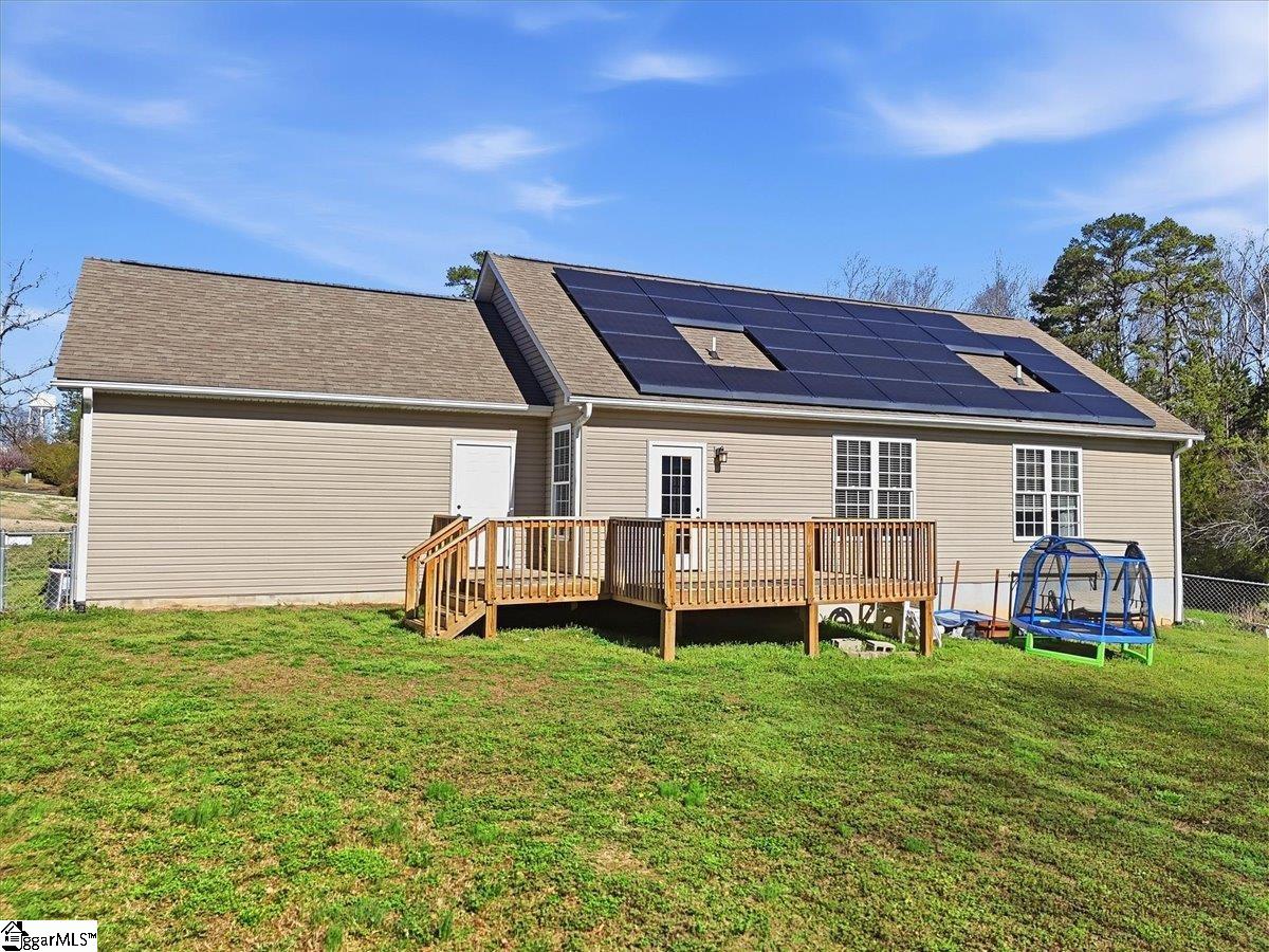 Discover traditional living with modern day efficiency in this charming 3 bedroom, 2 bath home. Situated on a rare double lot totaling just over 2 acres. Located at the end of a quiet cul-de-sac, this property offers a peaceful setting with plenty of room to enjoy the outdoors without the restrictions of an HOA. Inside, the home is filled with natural light and warm tones, creating a welcoming atmosphere throughout the living spaces. Step outside onto the back deck overlooking the fenced backyard, perfect for entertaining, gardening, relaxing evenings, or giving pets and family room to play. Major upgrades provide value and peace of mind, including a new roof installed in 2025 and fully paid-off Enphase Energy solar panels mounted on the back of the roof, offering energy efficiency and lower utility costs. Located in a highly sought after established neighborhood, while still enjoying the freedom of no HOA. This is your chance to have it all schedule your showing today.