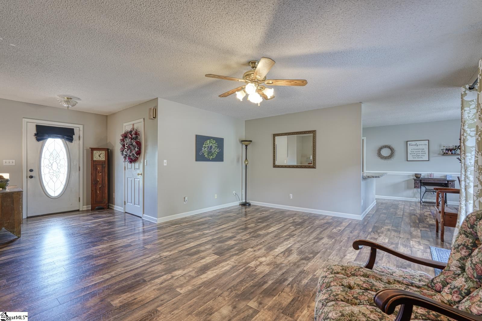 CONVENIENT TO SPARTANBURG AND GREENVILLE. THIS HOME IS LOCATED IN THE RURAL HOUSING ELIGIBILITY LOAN AREA. Just what you have been looking for, A beautiful, updated family home with plenty of room to roam! This home offers 3Br 2 baths and a large flex room that is perfect for home office, playroom or any extra space needed. Step inside this warm and inviting home and see the large open great room, updated white kitchen with newer appliances and newer counter tops. There is an open dining area that overlooks the beautiful back yard and large newer deck with Rubbermaid floor covering. This home is located on a large .90 acre corner lot with an established manicure lawn and outbuildings (with electric) that are perfect for storage. The large deck is a great spot for entertaining or enjoying the great outdoors. Also, there is a nice outdoor fire pit for relaxing in the evenings. The Split bedroom floor plan and updated kitchen and baths are a plus. Beautiful wood floors in the great room and kitchen and the 2nd bathroom was just updated with new floors, newer light fixture with blue tooth, and a new vanity. Home has a walk in laundry room and there is plenty of storage in the walk in pantry. If you are looking for a nice rural country setting and convenience, this is it! This is a smaller one street neighborhood that is convenient to everything. This home shows great and is in move in ready condition. Hurry and take a look!