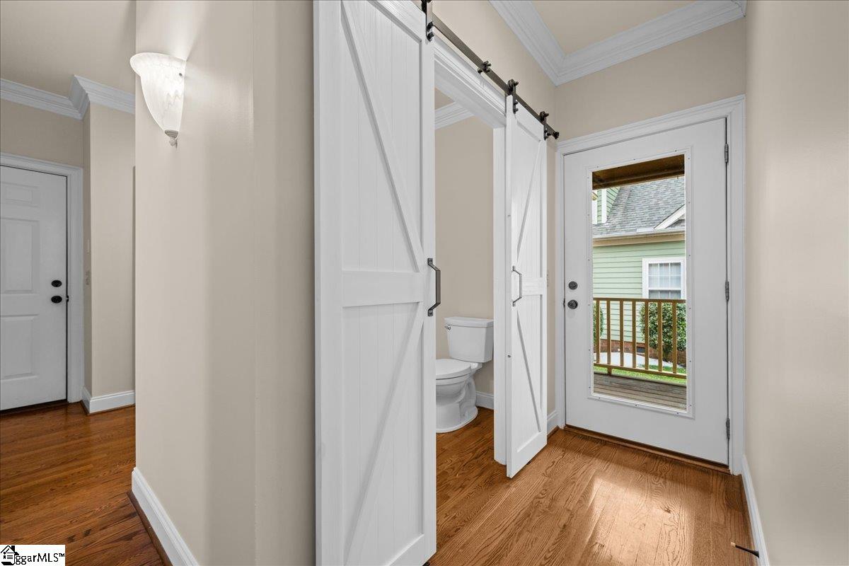 Beautiful Craftsman-style home ideally situated on a corner lot directly across from a large community park in the sought-after Verdmont subdivision, offering a front-row seat to neighborhood gatherings and entertainment. This thoughtfully designed home is graced with hardwood floors, all-new interior paint, and new carpet in the primary bedroom, creating a fresh and inviting atmosphere throughout. The beautiful kitchen is a true highlight, featuring granite countertops, a walk-in pantry, and a bar seating area, along with a charming breakfast sitting area perfect for casual meals or morning coffee. The main level also showcases a stunning rock fireplace with gas logs in the great room, adding warmth and character to the heart of the home. The primary suite on the main level offers a private retreat with a large walk-in closet and a spa-like bathroom complete with dual sinks, a separate shower, and a soaking tub ideal for relaxation. Upstairs, you’ll find two additional bedrooms and a spacious recreational room, perfect for a media room, playroom, or home office. Be sure to open all doors to discover the abundant walk-out storage areas conveniently located off the secondary bedrooms and recreation room. Large crown moldings throughout add refined architectural detail. Outdoor living is elevated with premium wood ceilings on both the front and side porches, while pull-down porch shades provide an additional thoughtful touch of comfort and detail. The side porch is ideal for grilling or gathering with friends, and a rear-entry two-car garage completes this exceptional home. The Verdmont subdivision offers a robust amenity package, including Music in the Park events held throughout the year with food trucks and special guest artists, a Fourth of July parade, and Easter egg hunts for all ages, creating a true sense of community. Additional amenities include two scenic ponds for fishing, a resort-style pool, playground, and a poolside grilling area. Ideally located, Verdmont is close to restaurants, shopping, and everyday conveniences, with easy access to I-385, making commuting and exploring the Upstate a breeze. Bonus a new roof in 2025.