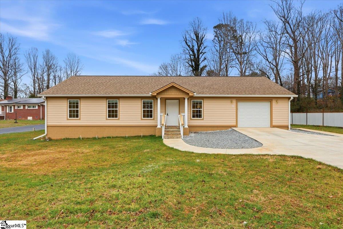 This beautifully designed new construction home offers 3 bedrooms and 2.5 baths with a thoughtfully planned open-concept living and dining area, ideal for modern living. The kitchen features shaker-style cabinetry, granite countertops, brand-new stainless steel appliances, a built-in pantry, and a coffee bar. Recessed lighting throughout enhances the bright, contemporary feel. Additional features include an attached one-car garage equipped with a ductless heating and air system, a dedicated laundry room with sink, and a spacious primary suite with a private full bath. The home also offers leafless gutters, a patio, and convenient yard access. Energy efficiency is a standout with owned solar panels—no payments and no cost to the buyer, allowing you to enjoy the benefits immediately. The property also includes two workshop/storage buildings, including a 34x28 building with a roll-up door, perfect for hobbies or storage. Ideally located in the desirable Travelers Rest area, this home is just minutes from local dining, shopping, and everyday conveniences, offering an excellent blend of comfort, functionality, and location.