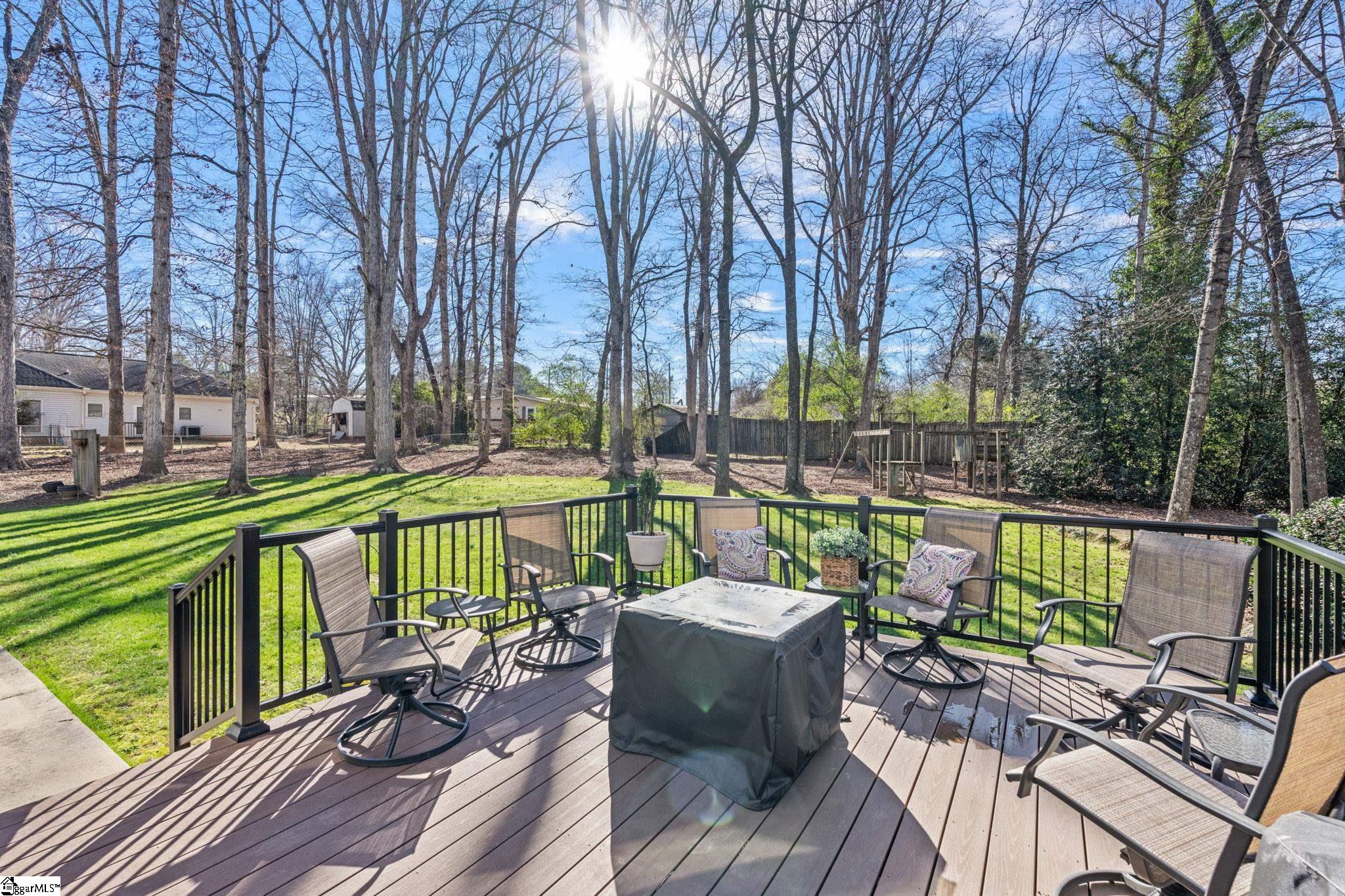 Your dream home just hit the market! Welcome to 103 Meadow Woods Court - a beautifully maintained 3-bedroom, 2.5-bathroom home full of timeless character, tucked away on a quiet, established street with no HOA. Set on a spacious 0.61-acre lot surrounded by mature trees, this property offers privacy, tranquility, and plenty of room to spread out. Inside you’ll find a beautifully designed and flexible floor plan featuring stunning hardwood floors throughout the main level, a sun-filled sunroom with floor-to-ceiling windows, and a brand-new back deck, making it ideal for everyday living and entertaining. The spacious living room is to the right of the entryway and showcases a striking brick fireplace with gas logs. The great room flows seamlessly into the sunroom, filling the home with natural light. The kitchen connects to the living space and offers stainless steel appliances, an eat-in dining area, and large windows overlooking the backyard. Just off the kitchen is a laundry room with a spacious pantry and direct access to the two-car garage. The formal dining room also connects to the kitchen and features large windows for an open, inviting feel. Upstairs, the expansive primary suite includes a sitting area, a large walk-in closet with attic/storage access, dual vanities, and a walk-in shower. Two additional spacious bedrooms with generous closet space share a full bathroom with a tub/shower combination. Don’t miss the unfinished third-floor bonus room, which is heated and cooled, offering the opportunity to add valuable square footage and customize the space to fit your needs as a fourth bedroom, home office, or flex space. Out back, enjoy peaceful evenings on the brand-new Trex deck, surrounded by mature trees - ideal for relaxing or hosting. Conveniently located just five minutes from Smithfields Country Club, less than 10 minutes from Downtown Easley, and close to shopping and dining. With Downtown Greenville and Clemson both just 20 minutes away, this home delivers the perfect balance of space, privacy, and convenience. Recent updates include: new windows (2023), new carpet (2022), Trex deck (2025), Upstairs & Downstairs Heating Units less than 5 years old, and a roof less than 10 years old. Schedule your showing today - this one won’t last!