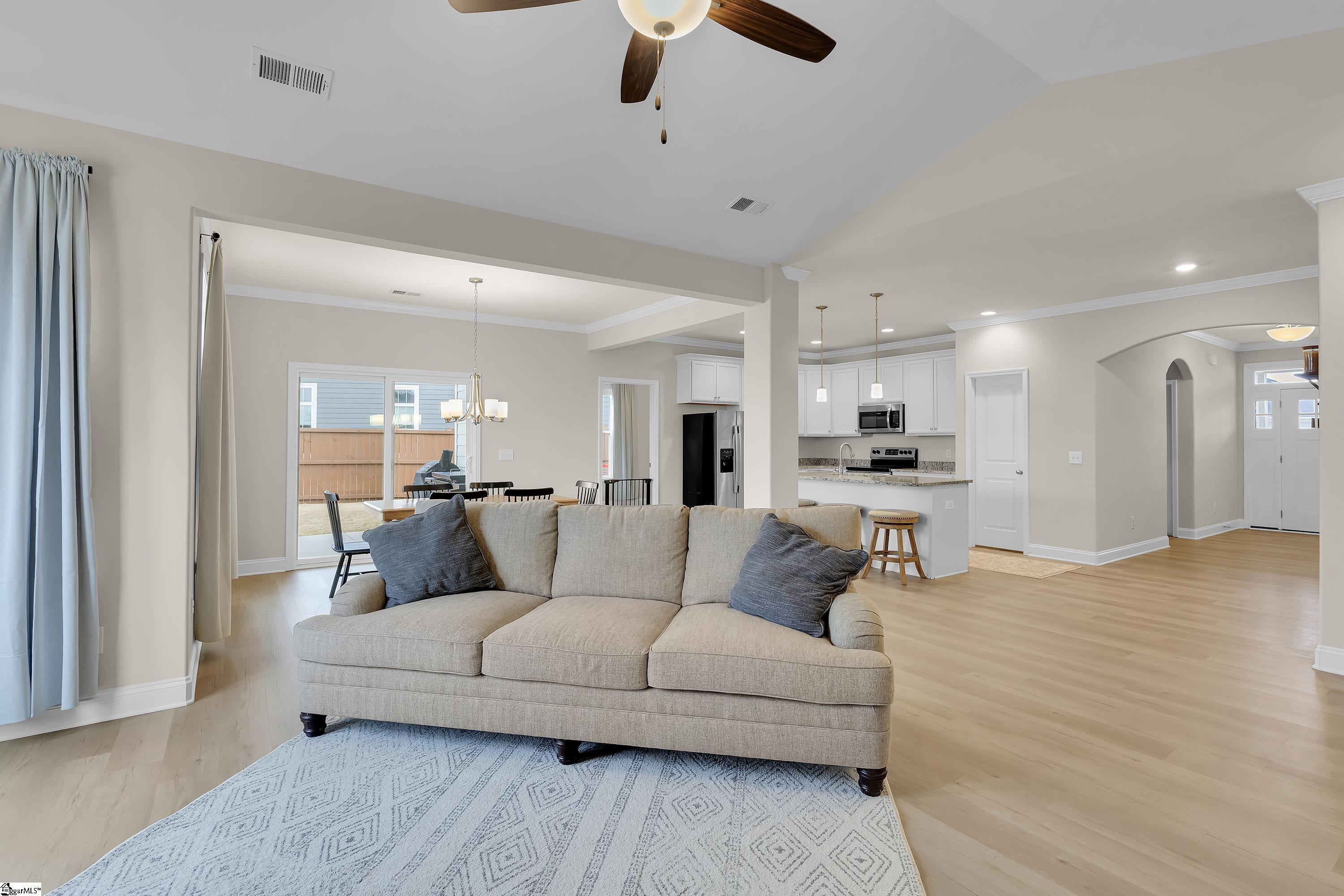 Welcome to 1030 Linden Ridge Road. Located in Greer’s Amherst neighborhood, the setting balances a quieter pace with everyday convenience, making it easy to settle in and feel at home quickly. Built in 2022, the home combines modern finishes with a layout that supports both daily routines and long term living. Set on a desirable corner lot, this ranch style home offers inviting curb appeal with a clean architectural profile and a thoughtful blend of stone and hardboard siding. The level yard is fully fenced, providing both privacy and usability while still feeling open and well proportioned. With sidewalks, mature surroundings and a welcoming street presence, the exterior sets a warm and polished tone from the moment you arrive, offering a low maintenance setting that fits comfortably into the established feel of the Amherst community. Luxury vinyl plank flooring runs through the main living areas, providing durability and a clean modern look. The living space is anchored by a gas fireplace and opens easily into the kitchen and dining areas, creating a natural flow without feeling oversized. The kitchen is finished with granite countertops, smooth top electric range, built in microwave, dishwasher and a pantry that keeps storage practical and organized. Just off the dining area, you have a covered patio space that offers a shaded spot to enjoy the backyard. The nearly half acre lot provides room to spread out while remaining manageable. The primary bedroom is tucked away for privacy and features a spacious bath with double sinks, a garden tub and a separate shower. A walk in closet completes the suite. Two additional bedrooms and a full bath offer comfortable accommodations for guests or everyday use. A dedicated flex space near the front of the home works well as an office, workout area or second sitting room. Laundry is located on the main level and includes electric hookups for washer and dryer. The attached two car garage offers additional storage and easy access into the home. Amherst is a well established neighborhood with sidewalks and a sense of connection that appeals to buyers who want community without sacrificing personal space. The location allows for quick trips to Greer Station, GSP airport, nearby schools, shopping and dining along Wade Hampton Boulevard and easy access to I85 and all that Greenville has to offer!