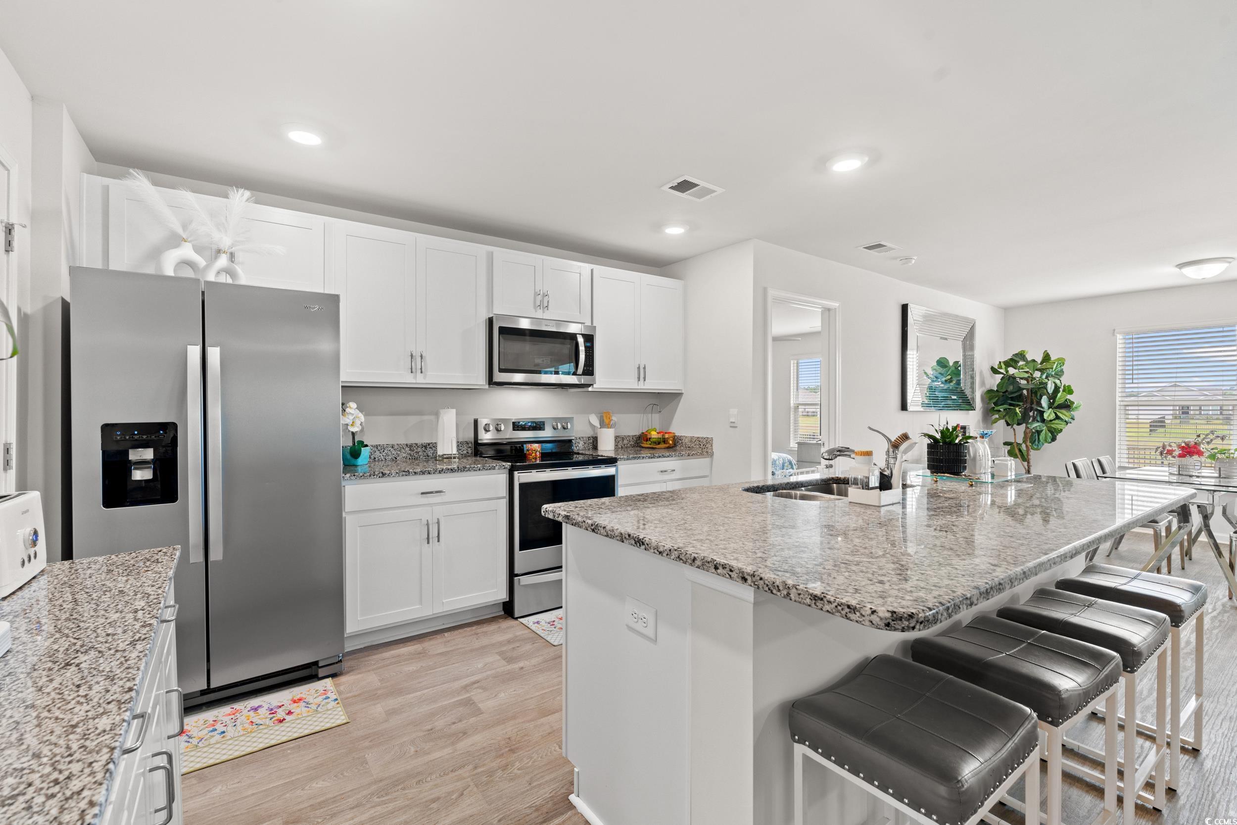 Built in 2023, this beautiful 3-bedroom, 2-bath home offers a perfect blend of modern finishes and everyday functionality. Step inside and be greeted by vinyl flooring that flows seamlessly through the main living areas and bathrooms. The in the spacious kitchen you'll find stainless steel appliances, large pantry, a large island with a breakfast bar—ideal for casual dining or entertaining—and an open layout that connects to a cozy dining area. The primary suite is a true retreat, complete with a generous walk-in closet and a private bath designed for comfort. Enjoy morning coffee or evening relaxation on the screened-in back patio, overlooking a fully fenced backyard with a water view. This move-in ready gem won't last long—schedule your tour today!