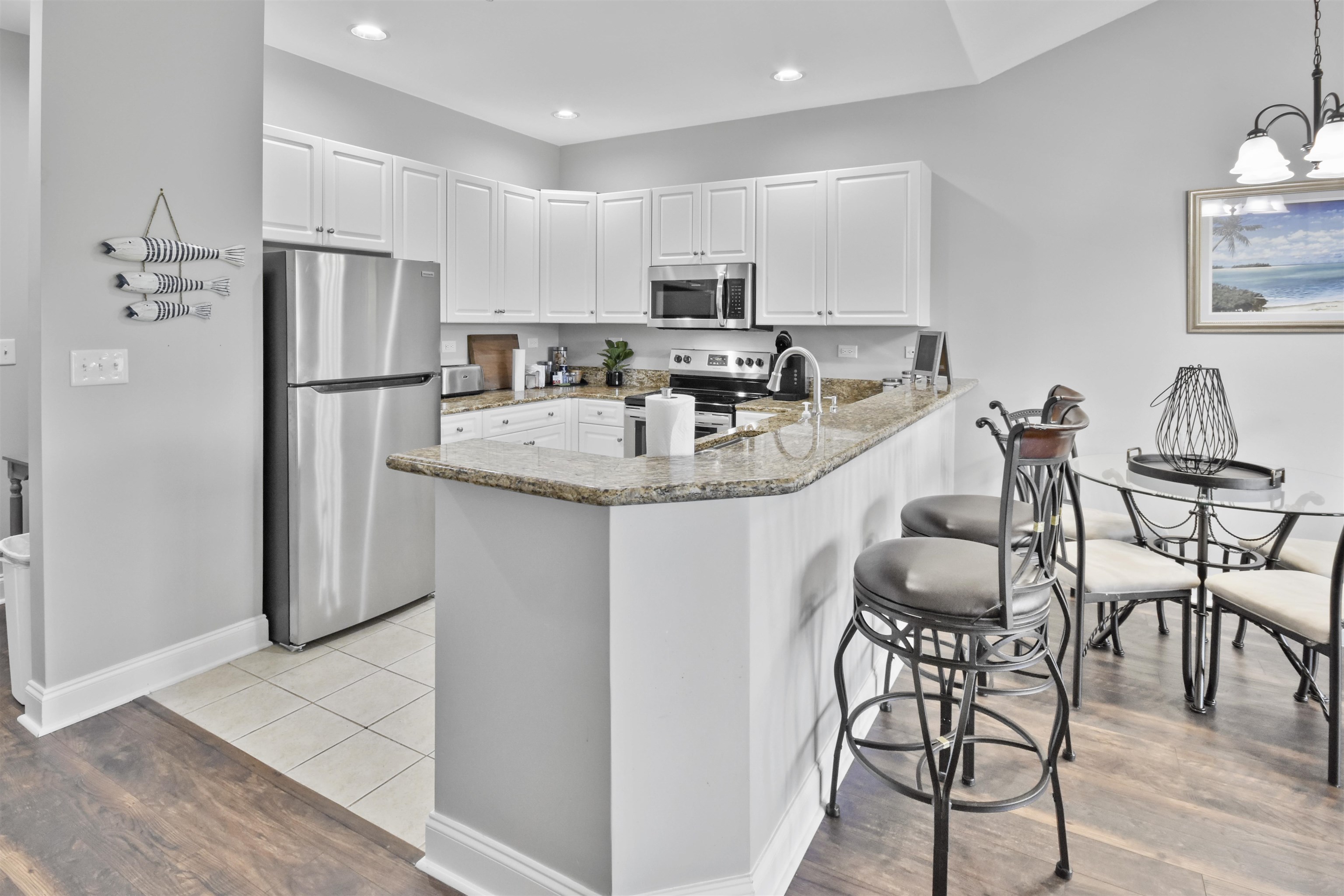 Gorgeous, fully furnished top-floor 2-bedroom, 2-bath condo at World Tour, thoughtfully updated and offered turnkey for immediate enjoyment or rental. This lightly uses, open unit was freshly painted in 2022 and boasts major mechanical upgrades including a new HVAC and water heater installed in 2022, plus a washer/dryer added in 2023 and new kitchen appliances in November 2023. Quality finishes include luxury vinyl plank flooring throughout and elegant granite countertops in the kitchen and both bathrooms, creating a clean, low-maintenance aesthetic. The most desirable floor plan places both the living room and the master bedroom on the front of the building, providing beautiful views of the World Tour golf course; both rooms open to the private balcony so you can savor sunsets or your morning coffee while overlooking the greens. Being on the top floor means no neighbors overhead, and elevator access makes coming and going easy. World Tour’s resort-style amenities enhance everyday living with a sparkling community pool, clubhouse, fitness center, pro shop, on-site restaurant, and meticulously maintained golf facilities, as well as a robust schedule of on-site activities and convenient access to nearby shopping and dining. Located within the highly regarded Carolina Forest school district, this condo presents strong appeal as a primary residence, second home, or short-term rental investment—offering a sophisticated coastal lifestyle, excellent rental potential, and a comfortable, move-in-ready home.