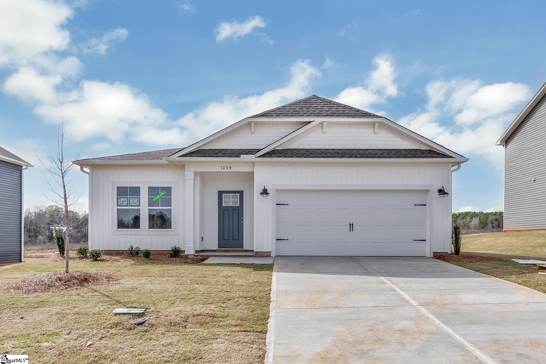 MOVE IN READY NEW CONSTRUCTION - 3BRs/2BAs + covered porch split ranch home on a full sodded yard! This open-concept home is located in Great Southern Homes' newest community in the Upstate. Shiloh Trail is located in Spartanburg Co. midway between both Greenville and Spartanburg. The Talbot II is an open and airy floor plan that invites you to come in from the moment you drive up and see the front porch that says “Welcome Home!” The kitchen includes staggered white shaker cabinetry, a large pantry, recessed lights, granite countertops, glass tiled backsplash, stainless steel appliances, and a counter height bar top that opens to the Great Room. The over-sized Great Room is the perfect space for both everyday living and entertaining family and friends. The spacious Primary Suite includes dual sinks with granite vanity tops, walk-in shower, a garden tub, and a large walk-in-closet. Home also includes LVP flooring in all common areas, matte black light fixtures, two tone paint, and extensive closet space throughout. Interested in a GreenSmart home? Live Green. Live Smart. The tankless hot water heater, programable thermostat, Energy Star appliances, Low-E glass windows, above industry rated insulation, and a programmable 4-Zone irrigation system are just a few of the standard items that will assist with lowering your monthly utilities while reducing your carbon footprint at the same time. Shiloh Trail is just a short minute drive to grocery/drug stores, restaurants, medical facilities, shopping and dining in the downtown areas of Duncan, Greer, and Spartanburg. Quick and easy access to I-85 & I-26 makes GSP airport, the mountains, nearby lakes, and SC, NC, & GA beaches just a short drive away.
