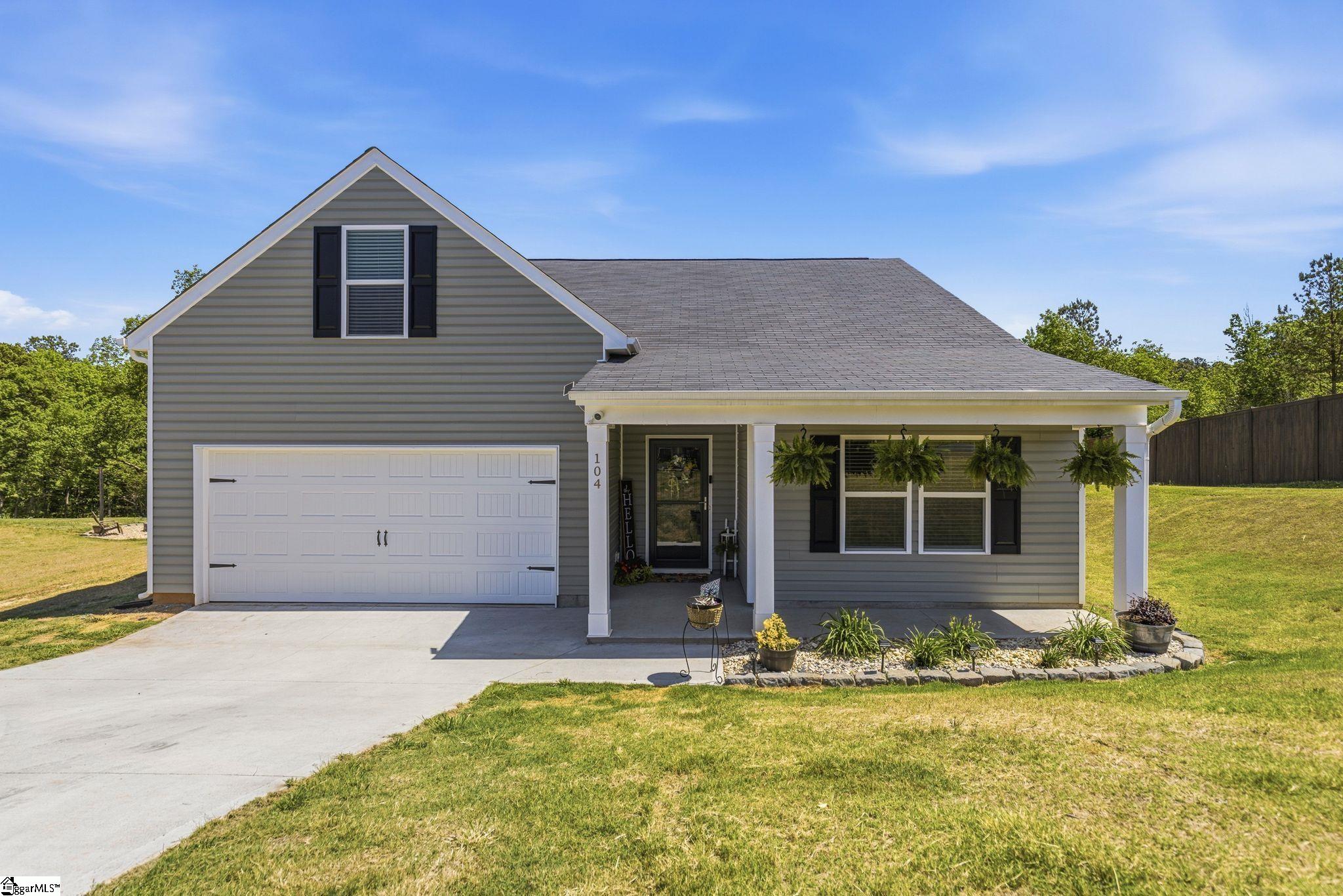 Discover unparalleled comfort in this less than 1 year old 3-bedroom, 2-bathroom residence, perfectly situated on a generous 1.29-acrelot in Anderson. This charming home features a classic facade and a well-maintained yard, creating an inviting curb appeal. The exteriorboasts a 2 car garage and an inviting covered porch, ideal for enjoying peaceful mornings or serene evenings. Inside you will find that ithas been freshly painted and has an open floor plan. A secure storm door adds to the home's practical features and classic charm.Step inside to 1782 square feet of thoughtfully designed living space. Each of the three bedrooms offers a private retreat, while the twofull bathrooms provide everyday convenience. The 1.29 acres surrounding the home ensures privacy and ample space for outdooractivities or future enhancements, truly blending indoor comfort with the tranquility of nature. Nestled at 104 Alpine Heights Court, thisproperty provides a serene lifestyle while remaining accessible to local amenities. This home presents a unique opportunity to embrace aharmonious lifestyle in a desirable location.