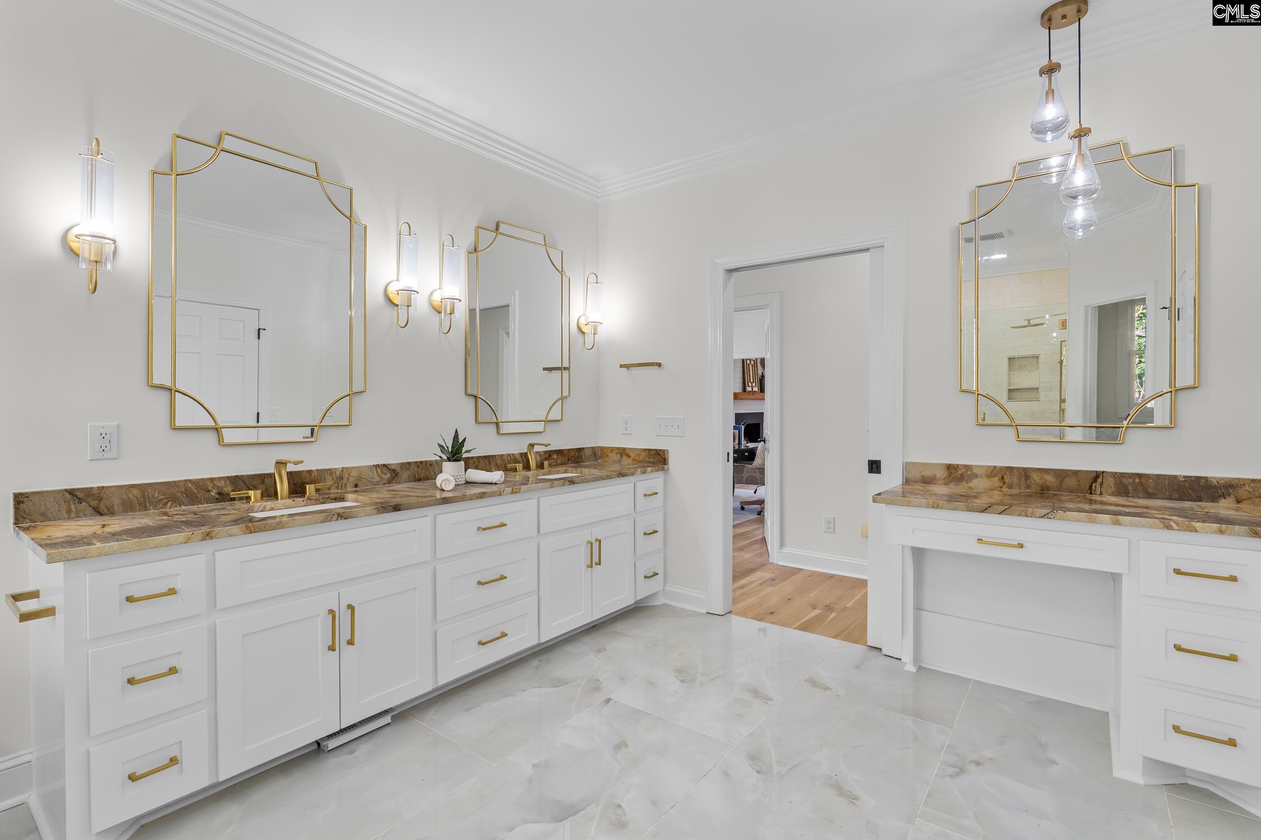 JUST UPDATED: Elevated golf-course living in Golden Hills Golf & Country Club!! This expansive home offers over 5,250 sq ft of heated living space with an additional 1,084 sq ft of unfinished potential, all tucked away on a quiet cul-de-sac backing to a serene pond and located just across from Hole 11.The main level features a spacious living room, home office, primary suite with a beautifully updated en-suite bath, and two guest bedrooms. The kitchen has been completely refreshed with new stainless steel appliances, a gas range top, stunning quartzite countertops, and a tiled backsplash—perfect for both everyday living and entertaining. Brand new hardwood floors flow throughout the main level, complemented by new tile in the main floor bathrooms, updated light fixtures, ceiling fans, and fresh paint throughout the home.The walk-out lower level offers exceptional flexibility with two bedrooms, a large living area with direct pond access, and a fully appointed bar area featuring granite countertops, a wine cooler, beverage refrigerator, and ice maker—ideal for entertaining or creating a game room or media space. Luxury vinyl plank flooring runs throughout the entire lower level, tying the space together beautifully.Bathrooms have been thoughtfully upgraded with tiled showers in the primary bathroom and Jack-and-Jill bath, quartzite countertops in the primary bath, and granite countertops in the remaining main-level baths.Golden Hills offers gated access, golf, tennis, a clubhouse, and a pool, all just minutes from Lake Murray, award-winning schools, and downtown Lexington conveniences—making this an exceptional home in one of the area’s premier golf communities.Please note: Some listing photos have been virtually staged. Disclaimer: CMLS has not reviewed and, therefore, does not endorse vendors who may appear in listings.