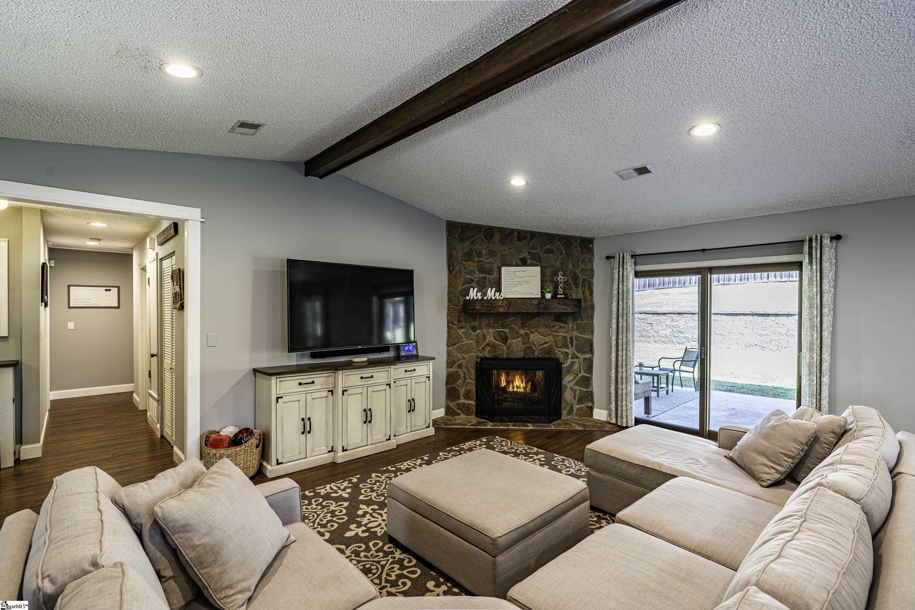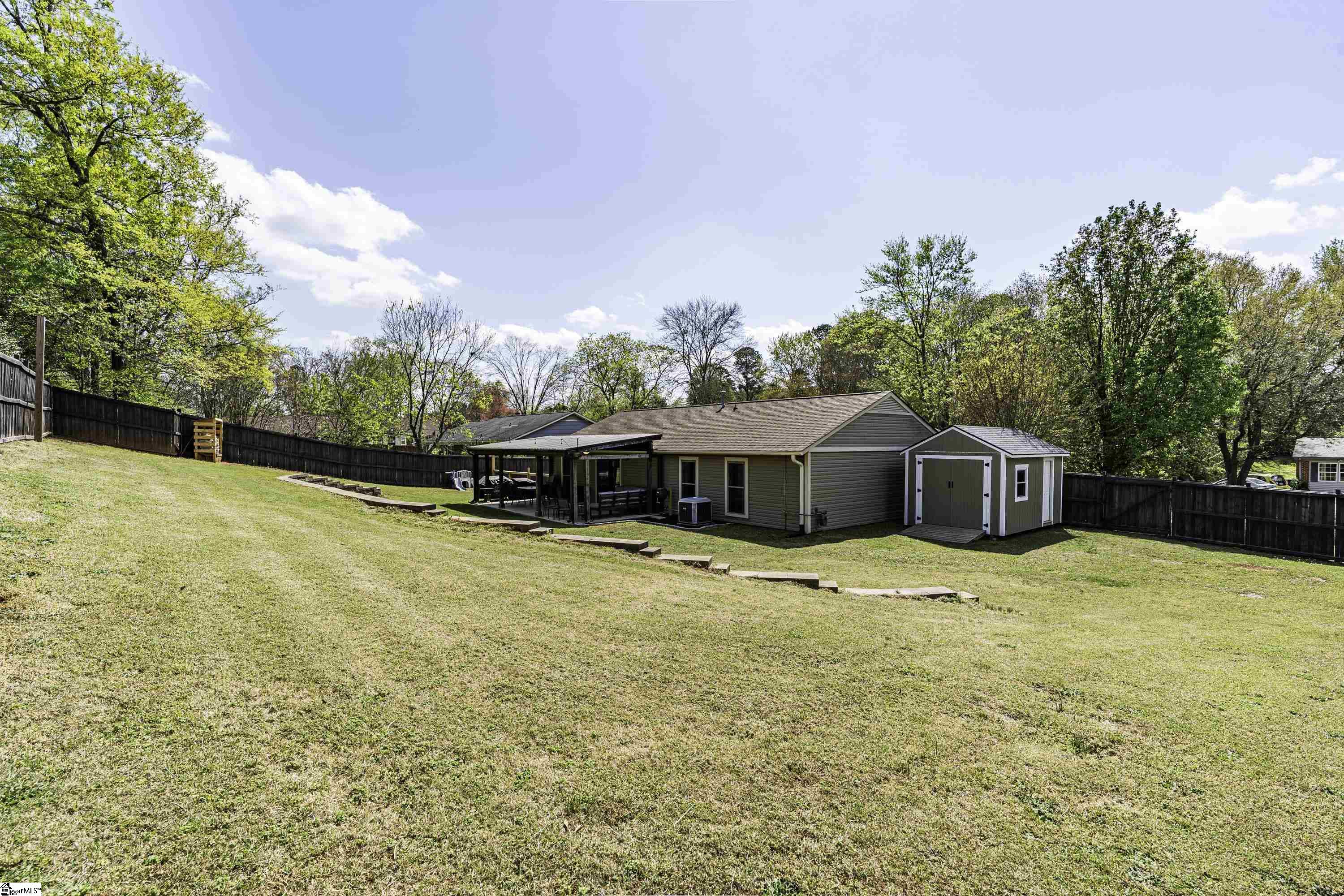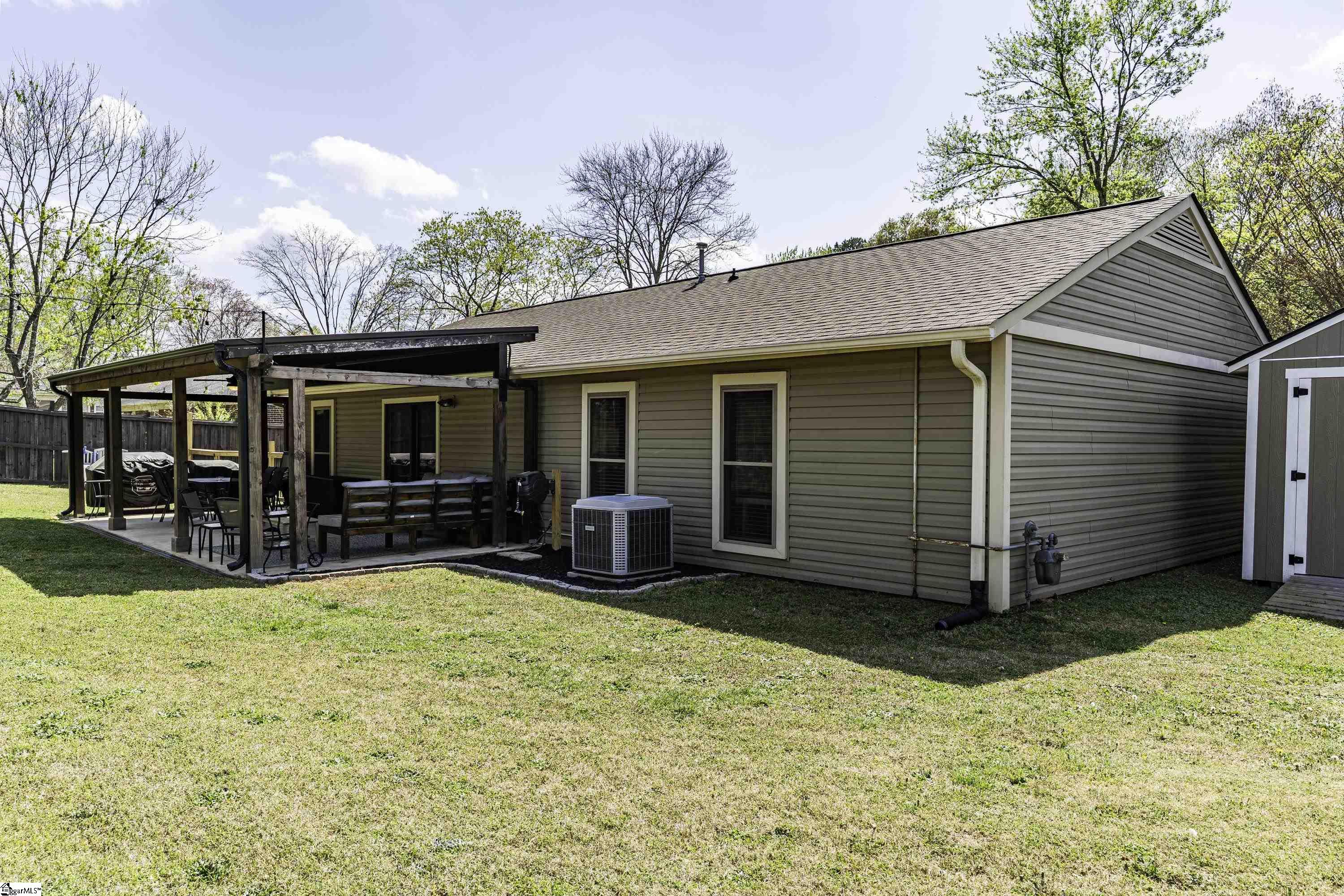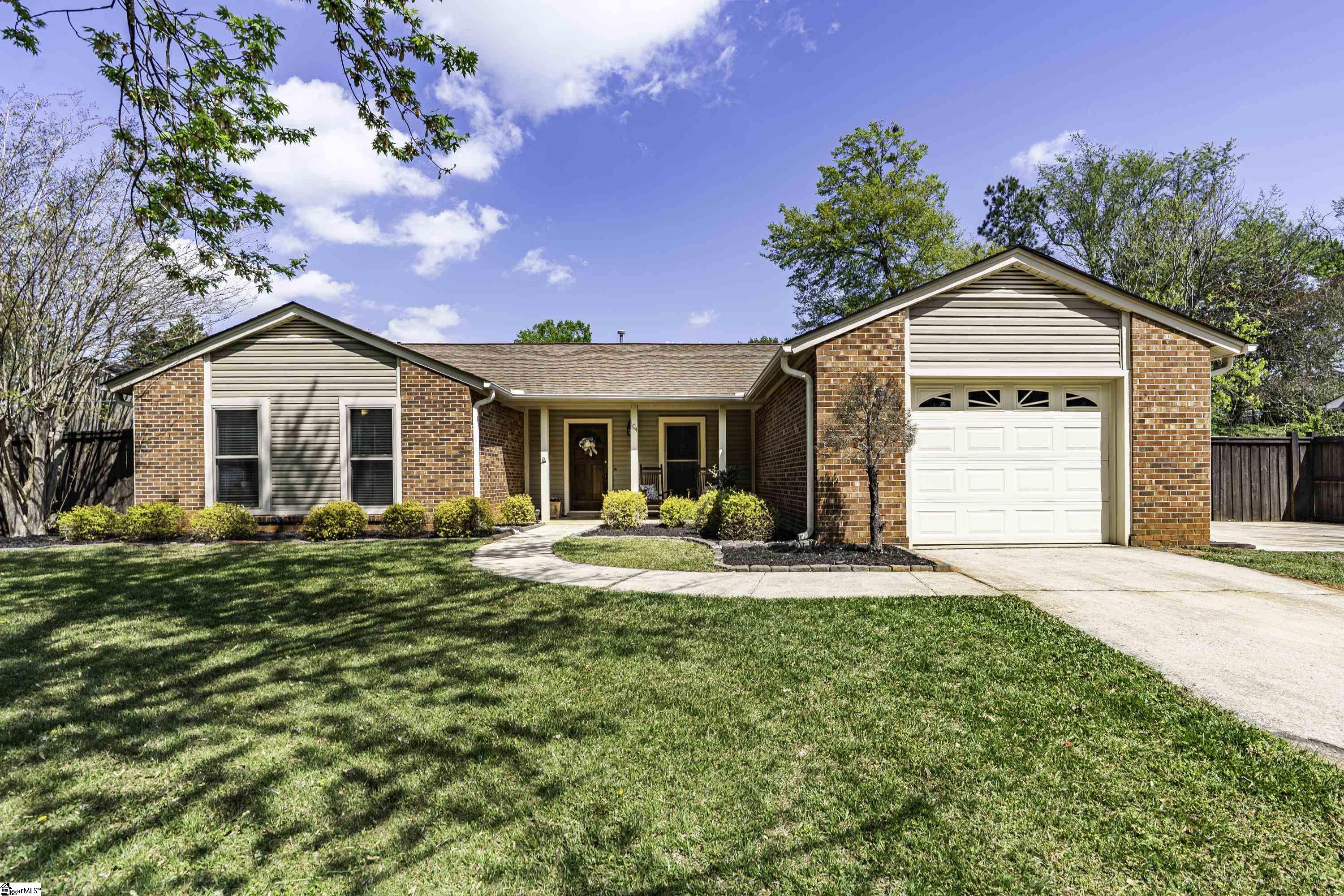 GREAT LOCATION. GREAT SCHOOLS. This charming one-level home is located on a spacious corner lot in Westminster Village. Perfectly situated between Pelham and Hudson Road, this property is adjacent to the Devenger subdivisions and just 15 minutes from Downtown Greenville. The interior features a bright, open floor plan with numerous updates. The newly renovated kitchen is equipped with an abundance of cabinets, granite countertops and stainless steel appliances, flowing seamlessly into the spacious dining area and a living room centered around a large rock fireplace with gas logs, a vaulted ceiling and stained wooden beam. The large primary suite includes a bath with tiled shower, two closets, one of which is a walk-in, while two additional bedrooms share a well-appointed hall bath. The outdoor living space is a standout feature, offering a fully fenced backyard sanctuary, a 31x14 covered patio, a sliding safety fence that surrounds the side yard area and can be easily opened up. Additionally, there is a beautiful retaining wall, plenty of space for a fire pit, entertaining, playground and gardening. For extra storage, there is a very nice 176 square foot storage shed which matches the home. Easy access to I-385, I-85, Greenville, local shopping and restaurants. Don’t miss out. This home will not last long!