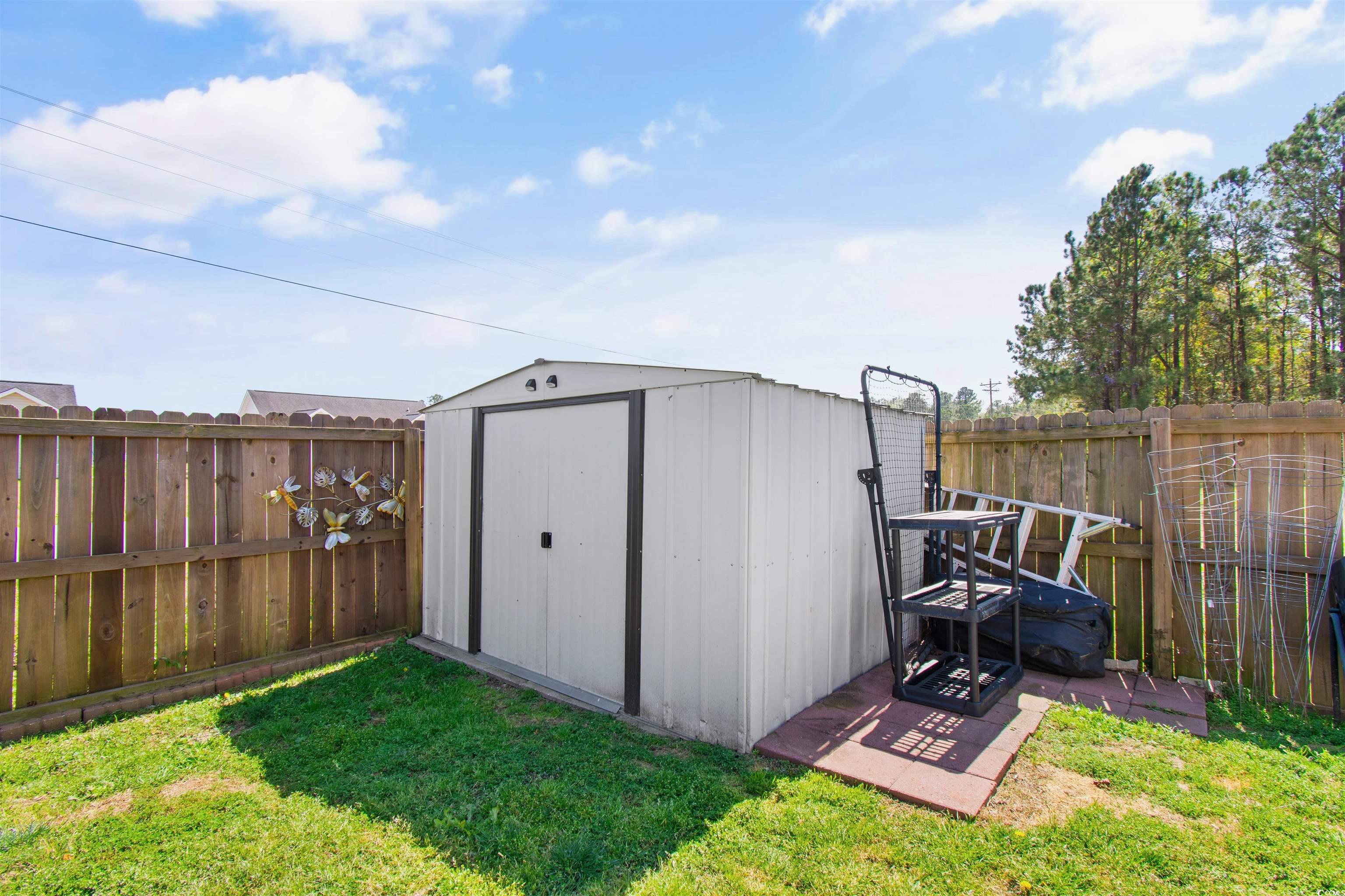 Welcome to 104 Clovis Circle—a beautifully updated 5-bedroom, 3.5-bath home located in the Hammerstone Landing neighborhood of Myrtle Beach. Just a short 4-mile drive to the beach, this home offers the perfect balance of peaceful living and easy access to shopping, dining, the Intracoastal Waterway, and more. Step inside to an inviting open floor plan featuring wood-look tile flooring, a formal dining area, and a bright, spacious living space. The kitchen is both stylish and functional with sleek quartz countertops and plenty of room for meal prep and entertaining. The master suite is a private retreat with a fully updated bathroom that includes a dual sink vanity, a walk-in shower, a garden tub, and beautiful tilework. Upstairs features bamboo flooring and large bedrooms with generous closet space throughout the home, offering great storage. The garage has been thoughtfully converted into a versatile flex space—ideal for a home office, gym, playroom, or creative studio. Outside, enjoy a large, fully fenced backyard with a custom deck and cozy fire pit area—perfect for relaxing or entertaining friends and family. A standout feature of this home is the private MOTHER-IN-LAW SUITE, offering its own entrance, a full kitchen with stainless steel appliances and tiled backsplash, spacious living room, bedroom and bathroom. Whether for extended family, guests, or rental income potential, this space adds incredible value and flexibility. Don’t miss your chance to own this unique property with room to grow, live, and entertain—schedule your private showing today!