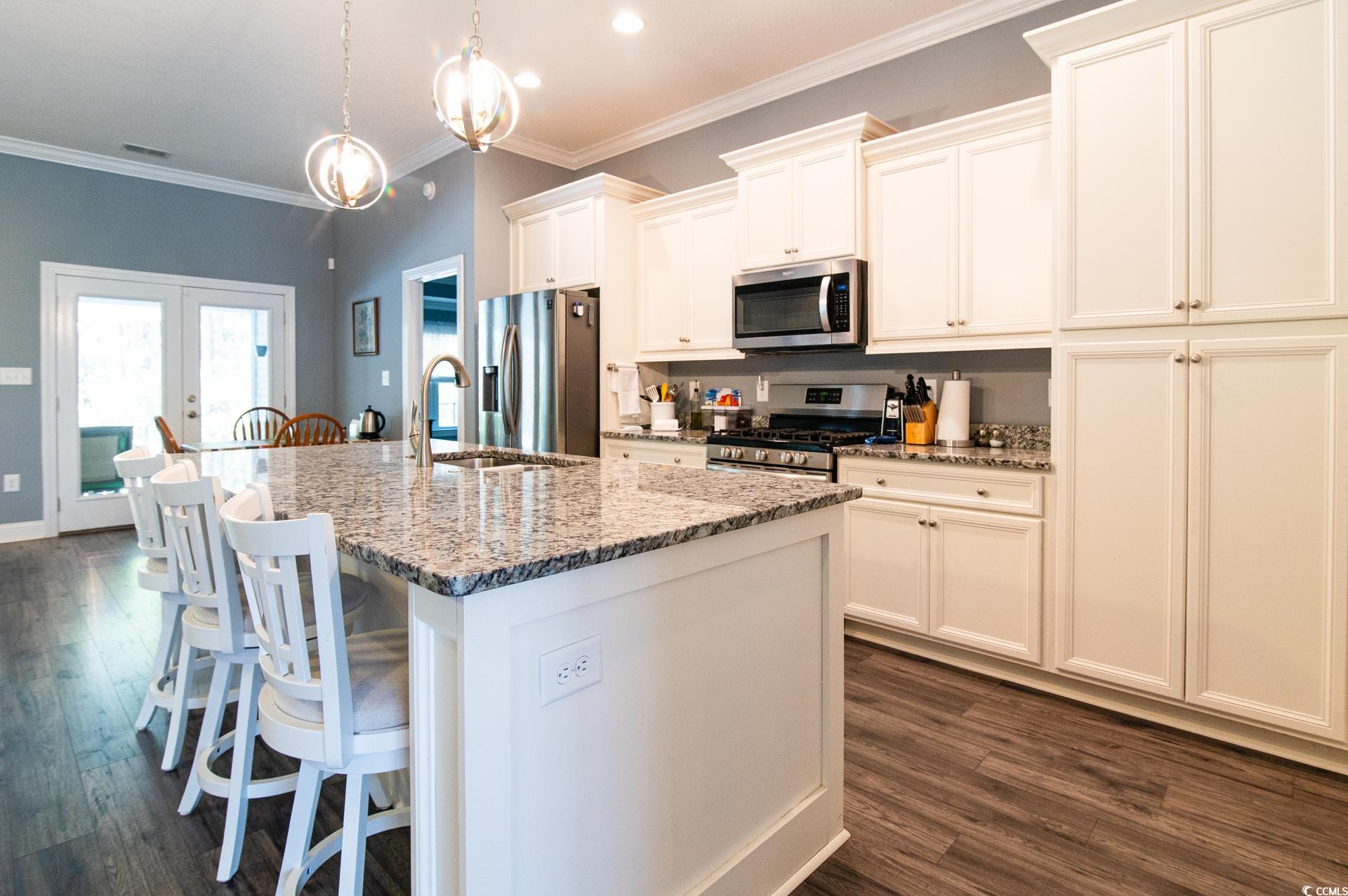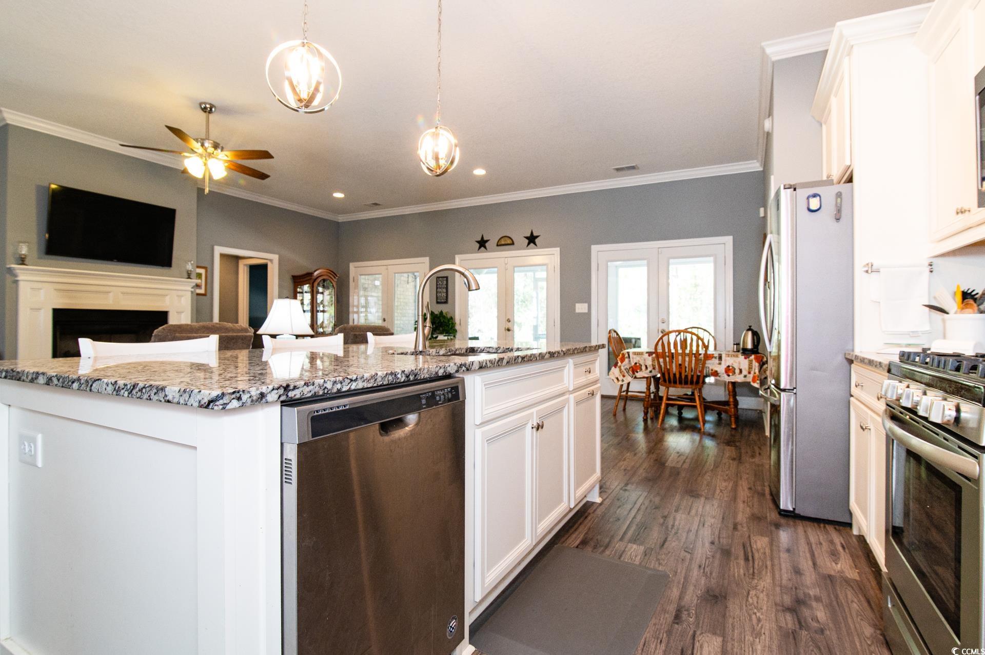 NO HOA!!!! All brick 4 bedroom/3 bath home located on a large 1 acre home site in the desirable Aynor School District. This home features a spacious great room with fireplace and 10’ flat ceilings through out the home. Lots of detail throughout the home with crown, chair rail, and picture frame moldings. The kitchen is a great size with granite counters and large island, solid wood cabinets with dove tail doors. The gas range and fireplace have a propane tank. There is a large kitchen nook as well as a beautiful formal dining room with a 11 foot tray ceiling. There are 3 sets of glass doors leading to the covered porch The owner put in a beautiful heated and cooled all concrete salt water inground pool with a waterfall fountain in 2021. A portion of the yard is fenced with the rest of the property is wooded for your privacy .Laminate wood floors in the main living area with carpet in the 4 large bedrooms. The large master bedroom and bath features a garden soaking tub, over-sized shower, high-quality brass body delta valves and faucets, granite vanity tops, double sinks, and two enormous master walk-in closets. Exterior features include a carriage style automatic garage door with glass window for natural light, quiet belt drive garage door opener, outdoor shed to store all your pool accessories and garden tools. Maintenance free vinyl shake gables and dormers, over-sized concrete double drive, entry sidewalk, and a front porch. Great for parking RV and or boat.