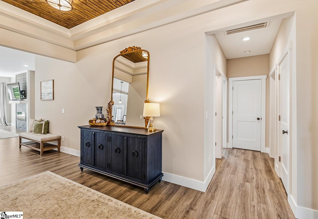 OPEN HOUSE | THIS SUNDAY, APRIL 26TH FROM 12-2 PM | Don’t settle for cookie cutter new construction! This beautifully maintained home is just 3 years old, but on a majestic .75 acre lot with hundred year-old trees and a creek! Enjoy the benefits and low maintenance a new home brings while also being in the established and highly sought-after neighborhood of Powderhorn. The bright open floor plan greets you with tall ceilings and expansive windows with stunning views of the old hardwood forest. The current owners have added many upgrades including: leveling the backyard with a custom pavers retaining wall, black aluminum fencing, smart irrigation system, deck addition, screened porch, pavers patio, privacy wall, landscaping, and more! You’ll enjoy privacy and abundant wildlife just outside your back door, all while being in the heart of Simpsonville just minutes from the best shopping, dining, schools, parks, etc. 4 minutes to The Ice Cream Station and Vaughn’s Warehouse, 7 minutes to Target and Publix. Yard has just been aerated and seeded so new grass is on its way! Other great features of this home include quartz countertops and soft close cabinets in kitchen and bathrooms, stainless steel appliances, richly stained shiplap tray and coffered ceilings, custom wooden shelving, walk-in pantry, and so much more. You’ll never run out of storage space with the expansive raw basement underneath. Powderhorn features a clubhouse with large pool, playground, tennis and pickleball courts, and a serene nature trail which is just steps from the home itself. Don’t miss out on this rare gem in the heart of one of Greenville County’s most desirable areas.