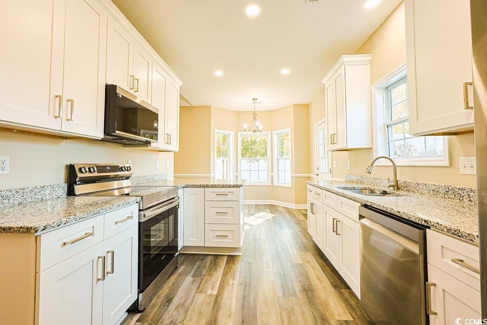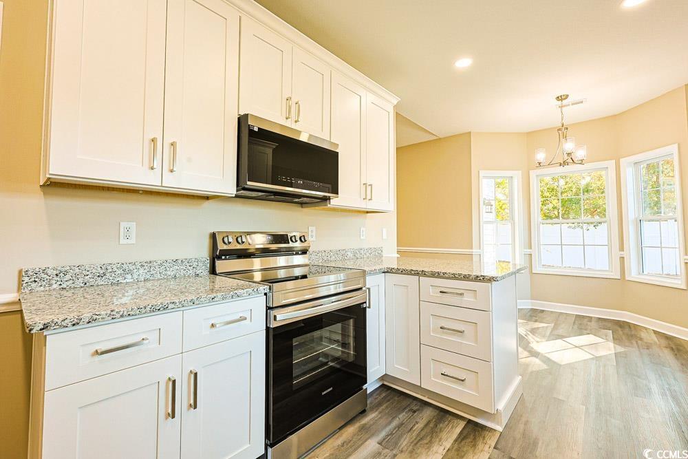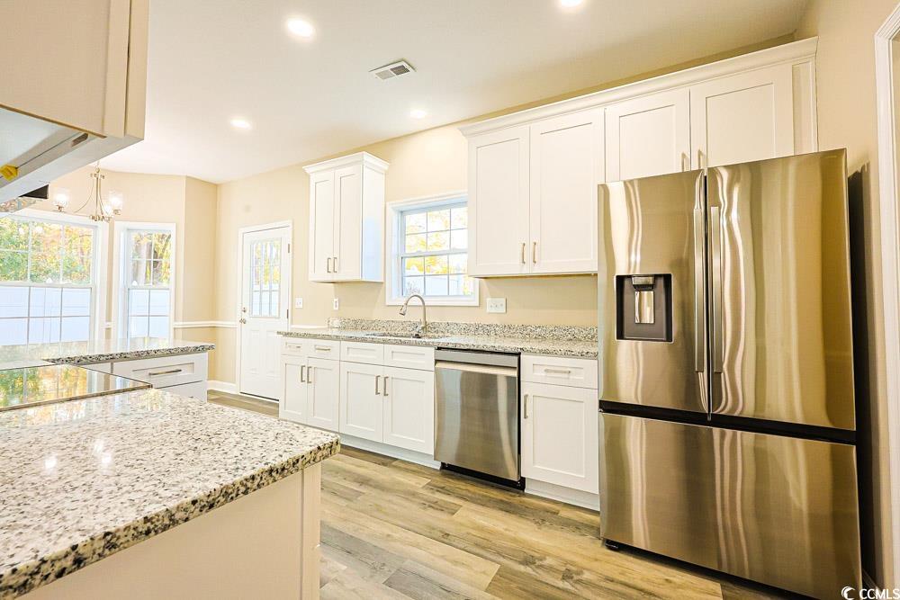 Beautifully updated and move-in ready, this 4-bedroom, 2.5-bath ranch-style home offers modern living in the highly desirable Carolina Forest High School district. Renovated from end to end in 2025, this 2,253 sq. ft. property showcases a long list of brand-new upgrades, including a roof, HVAC system, luxury vinyl plank flooring, custom kitchen cabinetry with granite counters, stainless steel appliances, updated lighting, refreshed bathrooms, new sliding doors, and interior paint throughout. The former garage has been thoughtfully converted into a versatile fourth bedroom with its own walk-in closet and plenty of natural light—ideal for a private office, studio, or learning space. The main living area features soaring vaulted ceilings and a warm fireplace, creating an inviting atmosphere for gatherings and everyday relaxation. Situated on a .24-acre corner lot in Jessica Lakes, the home offers mature landscaping and a fenced backyard perfect for pets, outdoor living, or play. Just minutes from charming Historic Downtown Conway—recognized by HGTV as one of the “40 Most Charming Downtowns”—and close to Coastal Carolina University, this location combines convenience with character. Completely updated and full of modern appeal, this home is a rare find in an established community. Don’t miss the opportunity to see it!