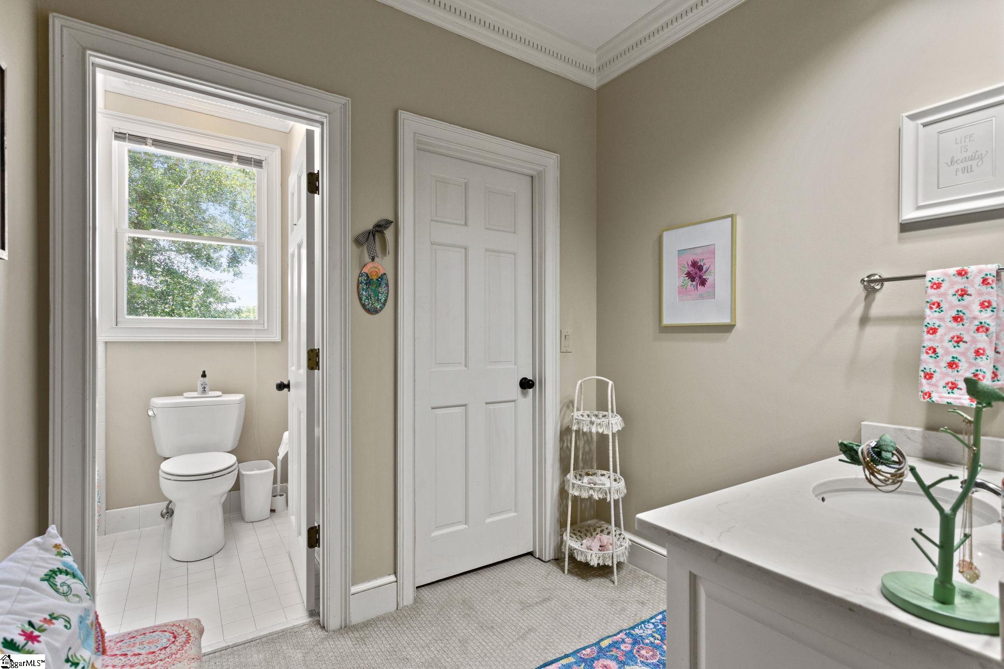 A Thornblade gem tucked away on a private cul de sac on one of the most sought after streets in the subdivision. Walk into an elegant 2 story foyer with large dining room and two living areas. Hardwood floors. Updated kitchen with new paint and stunning new quartz counter tops with large hammered stainless steel sink New paint throughout the entire house. A primary suite to die for includes separate sitting area, trey ceilings, two closets, updated bathroom with separate shower and tub, new quartz counter tops with two vanities. Let the light shine in with windows on the entire rear of house with large deck with awning that is perfect for entertaining. Full walkout basement with large den, kitchenette and separate bedroom with full bath.Upstairs you will love the three bedrooms all with their own full bath and walk in closets. Separate exercise room and another flex room. Brand new circle concrete driveway.