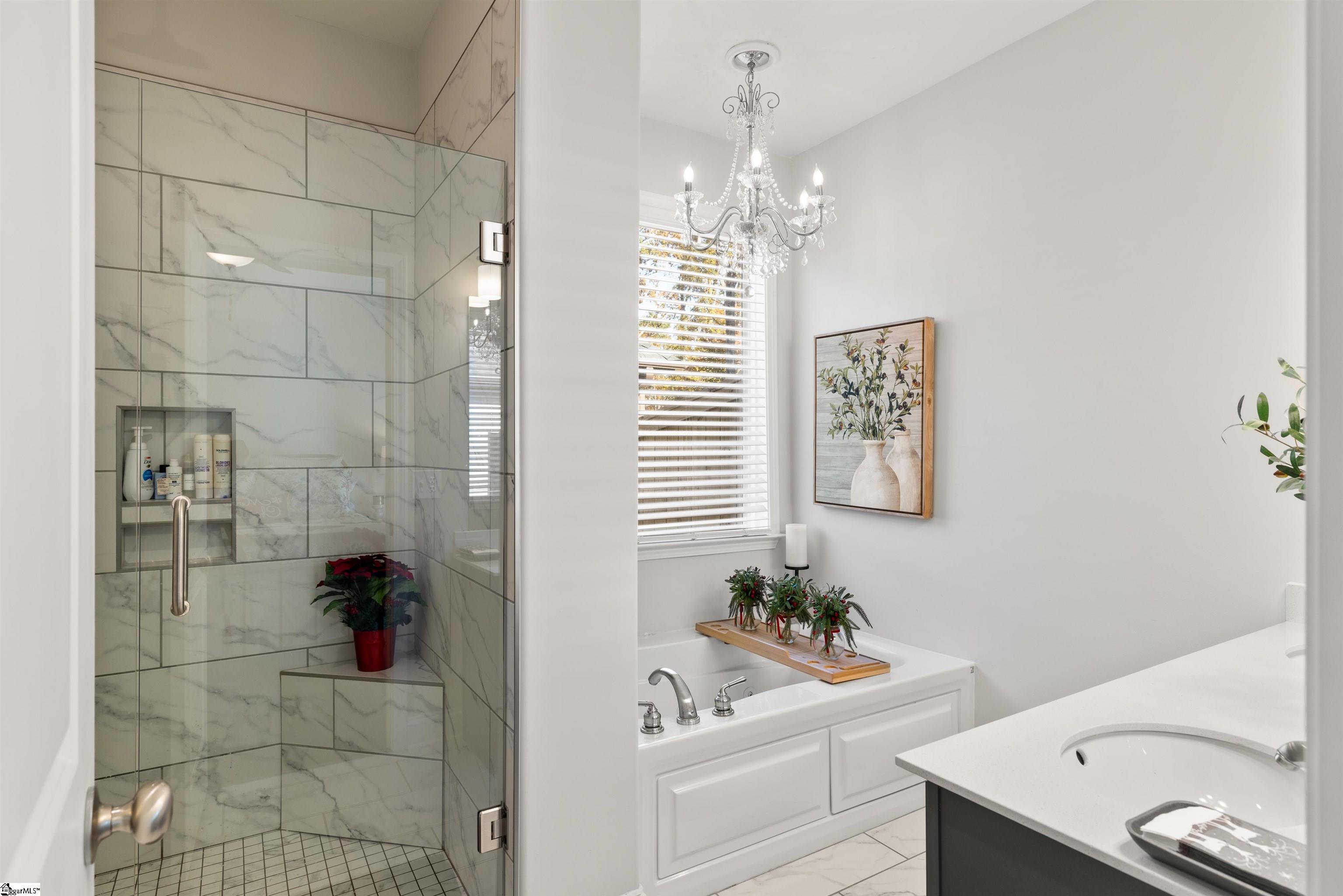 OPEN HOUSE SATURDAY 11/08/2025 FROM 2-4PM. Welcome home to 104 Landry Ln! This beautiful home offers 3 bedrooms and 2.5 baths with the primary suite conveniently on the main level. Enjoy a spacious open layout with granite countertops and a cozy gas log fireplace. The home features a paved driveway, garage with sink and cabinets, a 10x30 patio perfect for outdoor entertaining, and a fenced-in yard. Upgrades include a Whirlpool tub, rainfall shower head, and custom lighting throughout. Modern appliances, a walk-in pantry, and a convenient laundry room complete this move-in ready home. Conveniently located near downtown Greenville, Travelers Rest, Furman University, and the highly coveted Swamp Rabbit Trail. Schedule your showing today and experience everything this home has to offer!