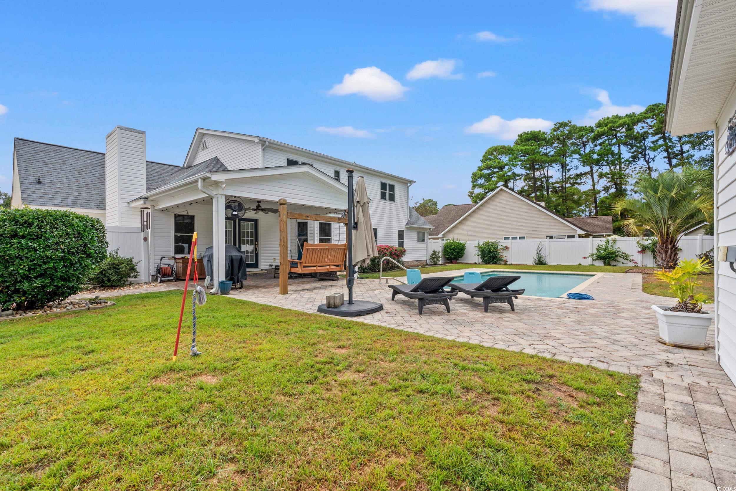 Welcome to this beautifully maintained 4-bedroom, 2.5-bathroom home, ideally situated on a cul-de-sac! Enjoy the spacious, private backyard featuring a refreshing pool and a full privacy fence. Inside, the home offers two generous living areas, and a large kitchen with a rolling island and stainless steel appliances. Brand-new windows throughout the home, along with paid for solar panels provide for ultimate efficiency. The large primary suite is large and complete with a large walk-in closet and a beautifully updated bathroom with a modern walk-in shower and dual vanity. The three other bedrooms are located upstairs with a separate bathroom. A screened in side load garage also provides room for cars and storage. This home is a prime location being close to shopping, grocery stores, and Coastal Carolina University. Don’t miss your chance to tour this move-in ready gem — schedule your showing today!