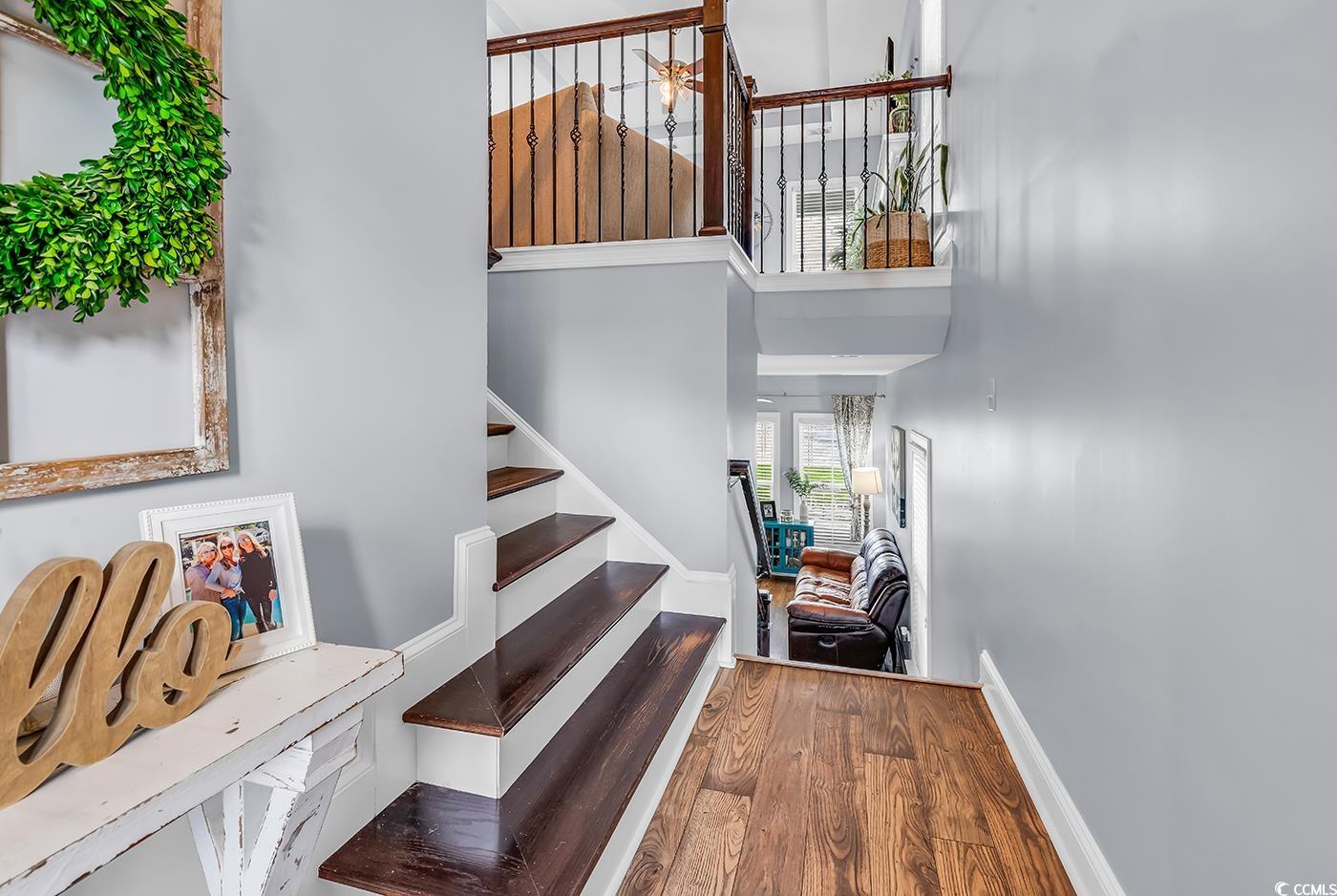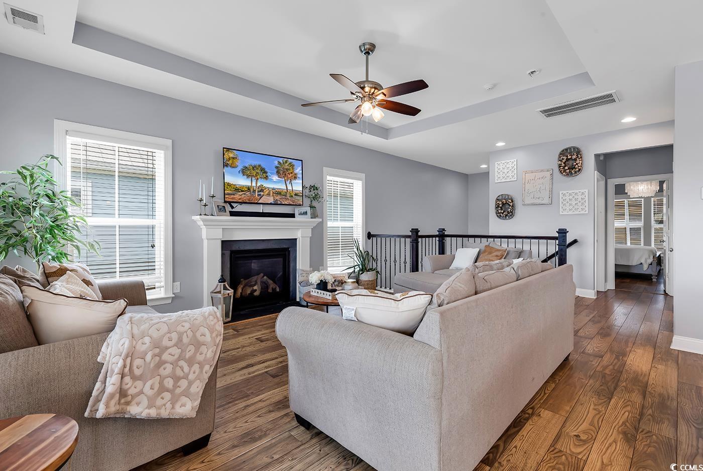 Welcome to Your Beach-Style Dream in Wilderness Pointe This beautiful split-level home in Wilderness Pointe at Prince Creek community combines coastal charm with modern living. The distinctive metal roof, Bahama shutters, and two-car garage create that sought-after raised beach house aesthetic we all love. Enter to discover a thoughtfully designed floor plan. Upstairs features an open concept living space with a spacious living room complete with a stylish tray ceiling and cozy gas fireplace, dining area, and kitchen. The kitchen showcases tall white shaker cabinetry, a large island with sleek countertops and stainless steel appliances. The upstairs primary bedroom offers a private oasis with its own bathroom featuring a tiled walk-in shower, a double vanity with custom ship lap accent wall, and a spacious walk-in closet. Downstairs, you'll find two additional bedrooms, a full bathroom, and a second living area perfect for movie nights or as a quiet retreat for guests. Both levels offer outdoor areas for enjoying those perfect South Carolina evenings, with access from each floor. The community amenities include two pools, pickleball, tennis, and trails. Located near shopping, dining, and just a quick ride to the beach, this immaculate home offers the ideal balance of comfort and coastal living in the prestigious St. James school district.