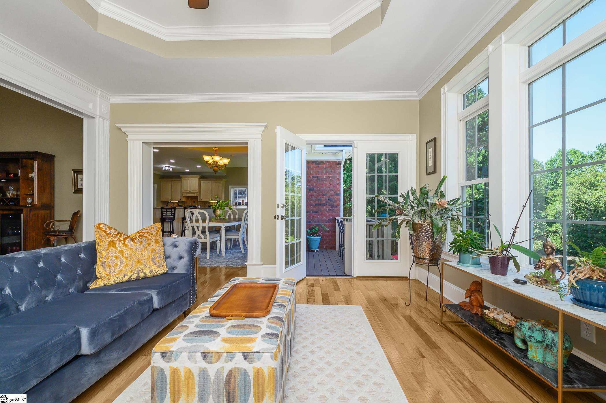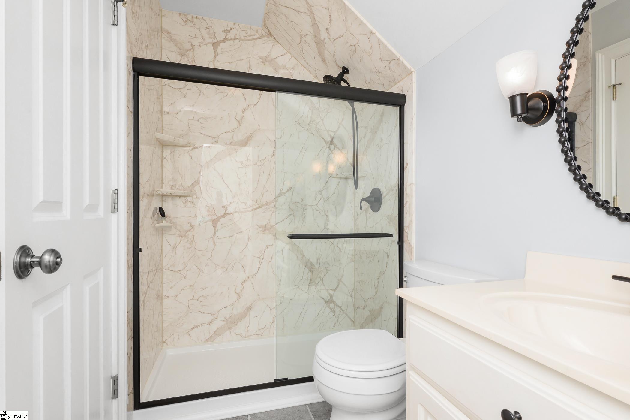 Welcome to 104 Walnut Creek Way, located just off Hwy 153 in Greenville. This home is over 5,600 square feet with 6 bedrooms, 5½ baths, a fully finished walk out basement and 3 car garage, nestled on just under an acre lot. In addition to the primary suite on the main level; the basement features an apartment like layout with a full kitchen, large living room, oversized bedroom with a large walk in closet, full bathroom, and is accessible through it's own separate entrance at the back of the home, a single car extra long garage or the main level. The basement also has a media room, and a room that can be used as a home gym or storage. On the main level, the large two story great room is perfect for entertaining, with additional seating in the sunroom. Upstairs are 4 bedrooms and 3 full baths. Two bedrooms share a Jack and Jill bath with separate vanities, and two bedrooms each have their own en-suite full baths. As you step out onto the covered porch you'll enjoy a nice seating area, that extends into a huge patio with a fire pit area. You'll be able to truly enjoy this oasis of a backyard complete with peaceful water sounds coming from the fountain. Be sure to walk down to the creek that runs along the back side of the lot to really enjoy all the beauties nature has to offer. The Birch River community is complete with a community pond and pool for even more outdoor enjoyment and activities. Conveniently located just mins to dining and shopping this home is zoned for the Powdersville School District. Be sure to click the links for the virtual walk through and video tour.