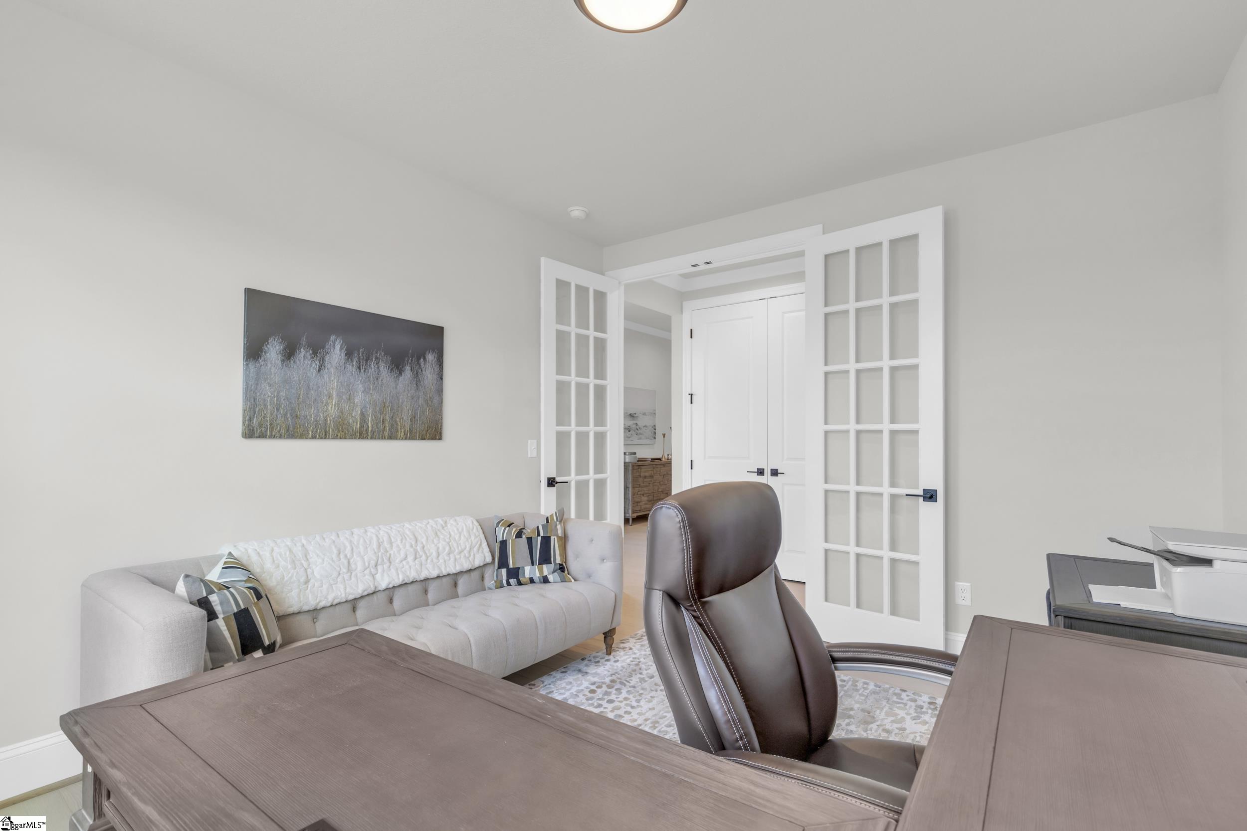 This immaculate, nearly brand new 3-bedroom, 2-bath Craftsman-style home combines modern comforts with low-maintenance living. A welcoming two-story entry opens to a bright, open-concept living space with an office and a spacious primary suite on the main level. The primary closet has custom cabinetry making use of maximum storage and organization. The kitchen features white cabinetry, a warm green island, and overlooks the dining and living areas. A gas fireplace with a floor-to-ceiling marble-style stone surround adds warmth and style. Custom blinds were added throughout the home. Step outside to a screened wraparound porch with its own gas fireplace, perfect for enjoying multiple seasons on the private, tree-lined backyard year-round. Upstairs offers a sunlit loft space, two additional bedrooms, and a full bath. Storage is abundant with a garage, attic, and a full walk-through crawlspace. The HOA maintains all lawn care including the irrigation system, common spaces, and hosts neighborhood gatherings throughout the year. Ideally located near Simpsonville's shopping, dining, hospital, and the notorious Swamp Rabbit Trail extension, with easy access to Mauldin and Greenville. You will not want to miss this beautiful, home!