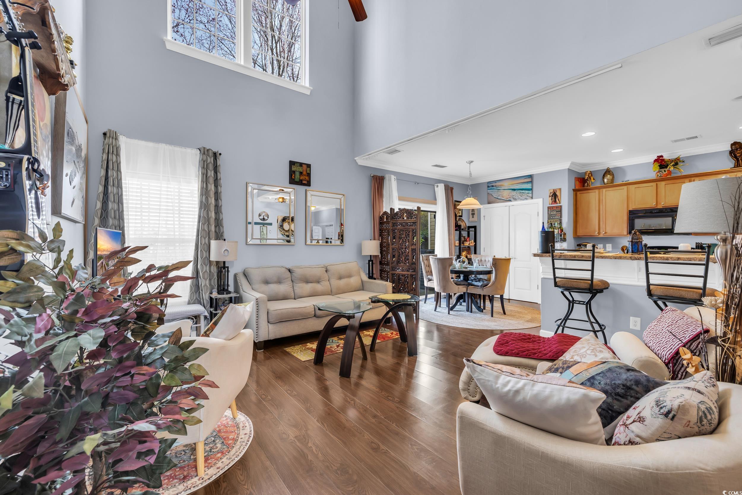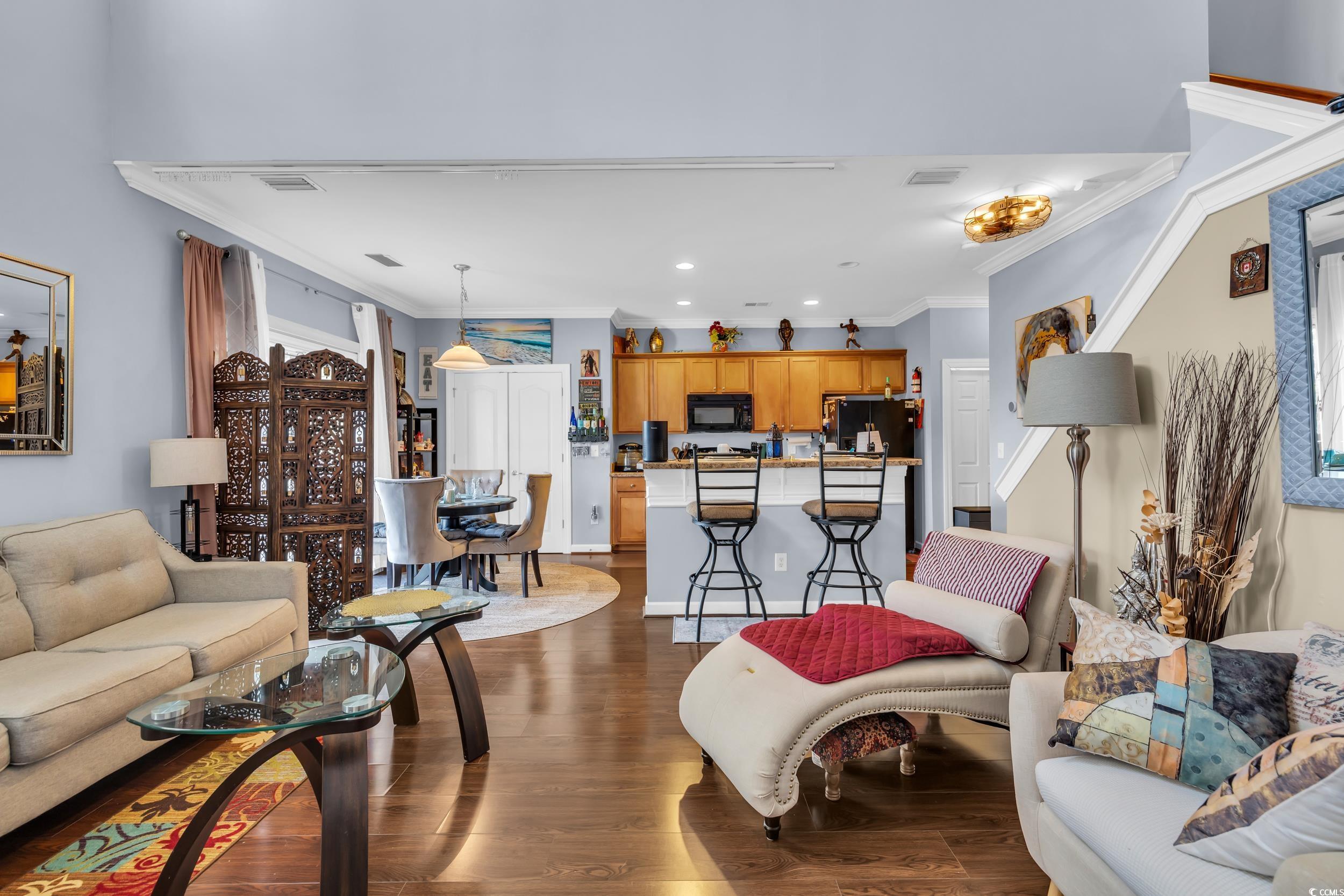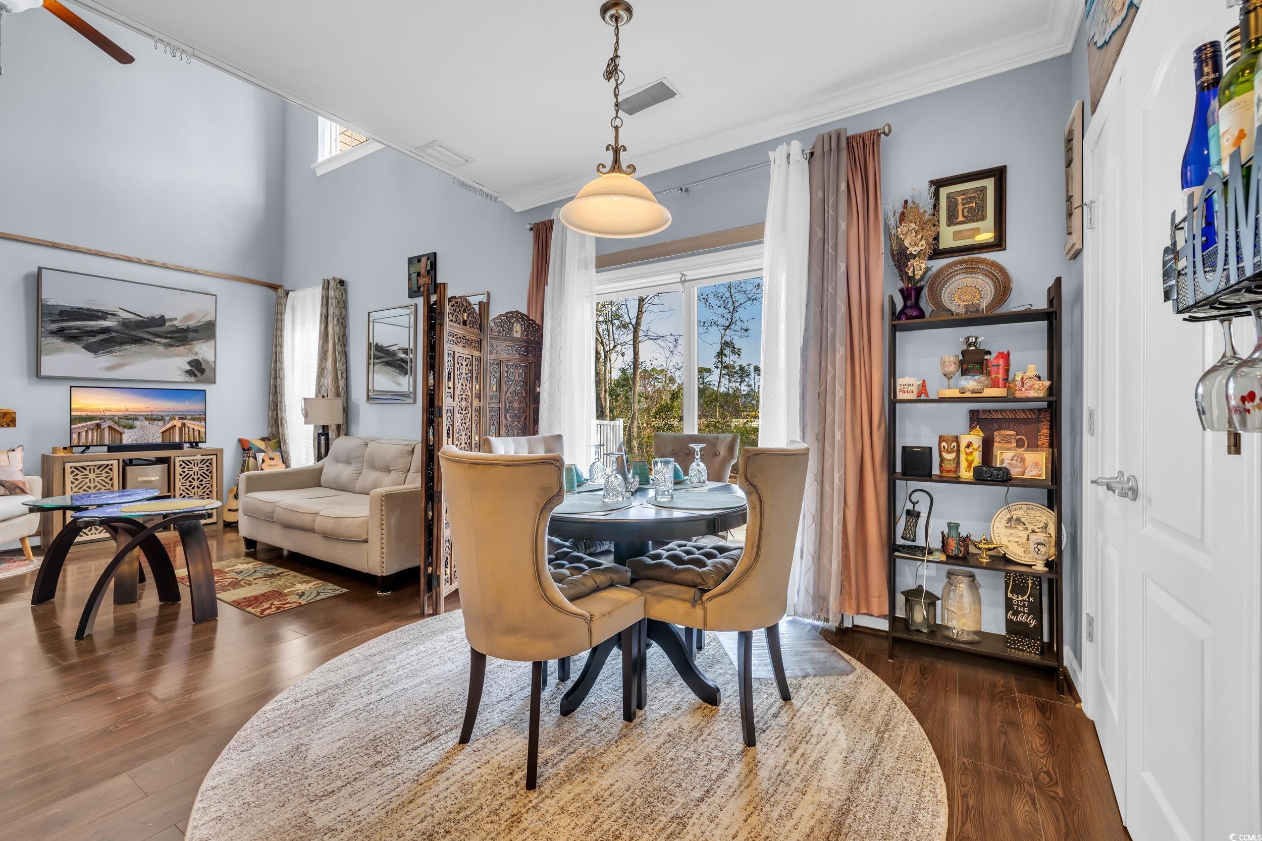 Welcome to Fairways at Wild Wing, a charming townhome community offering both comfort and convenience. This beautifully maintained two-story townhome is ideal as your new home or a potential investment property. Enjoy the added benefit of a private two-car garage and driveway, with a patio in the back that provides privacy and a peaceful retreat within the neighborhood. As you step inside, you’ll be greeted by a hallway leading into the open living area. One of the home’s standout features is the impressive cathedral ceilings in the living room, creating an airy, open atmosphere. This inviting space flows seamlessly into the kitchen and dining areas. The kitchen features a bar-height countertop, perfect for casual meals and entertaining with friends and family. The dining area offers ample room for small gatherings and meals. Conveniently located off the kitchen, you’ll find a half-bath for guests and a laundry room equipped with a washer and dryer. You can also access the home through the two-car garage, offering added convenience and ease. Upstairs, you’ll discover a large primary bedroom bathed in natural light, featuring a walk-in closet and a double-sink bathroom. Two additional spacious bedrooms are also located on this floor, along with a second full bathroom, ensuring plenty of room for everyone. Don’t miss the chance to be part of the highly sought-after Fairways at Wild Wing community, which offers residents access to a refreshing pool. This neighborhood is ideally situated just minutes from Carolina Forest, where you’ll find an array of dining, shopping, and entertainment options. Make this your new home today!