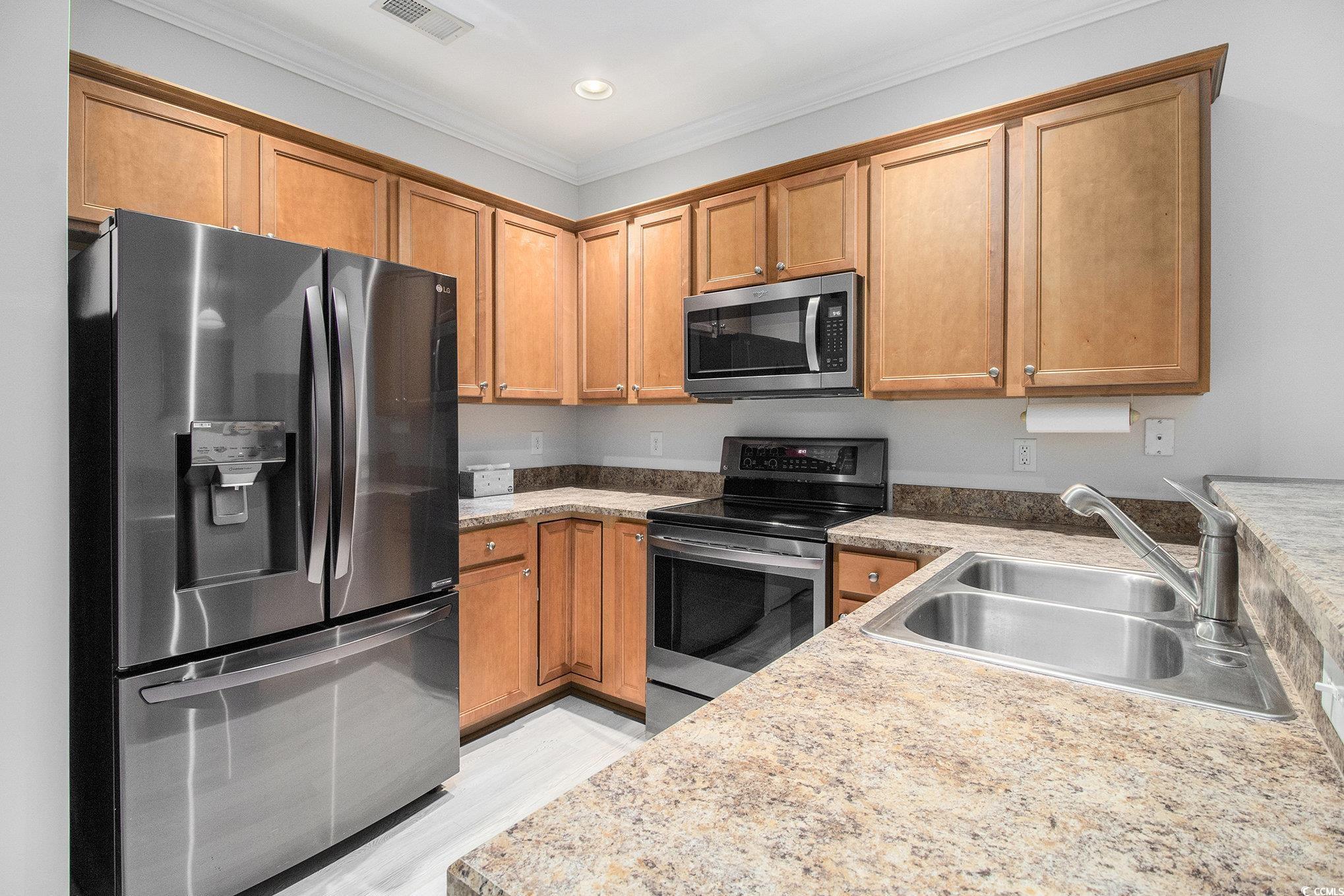 Situated in the sought-after Fairways at Wild Wing, this end-unit townhome offers 3 bedrooms, 2.5 bathrooms, and a 2-car garage, all bordering a spacious green common area. The inviting open floor plan highlights two-story ceilings in the living space, smooth ceilings, crown molding, and plenty of natural light streaming through oversized windows. The main floor hosts the kitchen, living room, dining space, 1/2 bath and the primary suite with a generous walk-in closet while upstairs you’ll find two additional bedrooms, a full bath, laundry, and a versatile loft. A rare feature of this home is the screened porch with an EZ Breeze system, ideal for relaxing year-round. Recent upgrades include a brand-new HVAC installed in August 2025 with a transferable warranty for the new owner’s peace of mind. Please ask the listing agent for more details as the warranty period is longer if the new buyer closes within 3 months of HVAC installation! Just minutes from Coastal Carolina University, Horry Georgetown Technical College, Conway Medical Center, plus endless shopping, dining, and entertainment, this townhome combines comfort, low-maintenance living, and a prime location.
