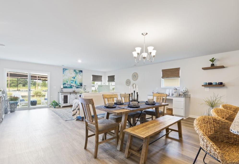 Ready early summer 2026! Now with 9ft Ceilings and 36" Kitchen Cabinets. The popular Embark plan offers home owners 3 bedrooms and 2 bath. The Large Family Room opens into the dining and Kitchen for a spacious, open feel, great for entertaining and enjoying friends and family. The large Primary bedroom and bath are open and spacious as well! BOTH Guest bedrooms have Walk in Closets for plenty of storage, plus extra closets throughout the home for additional storage! This home will have White cabinets in the Kitchen and Bathrooms, Luxury Vinyl Plank flooring throughout the Main living areas, Baths and Laundry, Granite countertops in the Kitchen and Quartz countertops in the Bathrooms. Gutters on the home, Garage door opener, Full sod, Single bowl Stainless sink in the Kitchen Island, Ceiling fan pre-wires, Garbage disposal, and Comfort height toilets are some of the great features included in this home. Relax on your Rear Patio. Don't forget the Free Greens Fees for Life. Ride bikes, walk, run or ride your golf cart through the Shaftesbury Community. Don't worry about cooking! Enjoy food and drinks at the Shaftesbury Clubhouse Bar and Grill. This is a fun, friendly neighborhood. Photos are of a Similar Embark model. (Home and community information, including pricing, included features, terms, availability and amenities, are subject to change prior to sale at any time without notice or obligation. Square footages are approximate. Pictures, photographs, colors, features, and sizes are for illustration purposes only and will vary from the homes as built.)