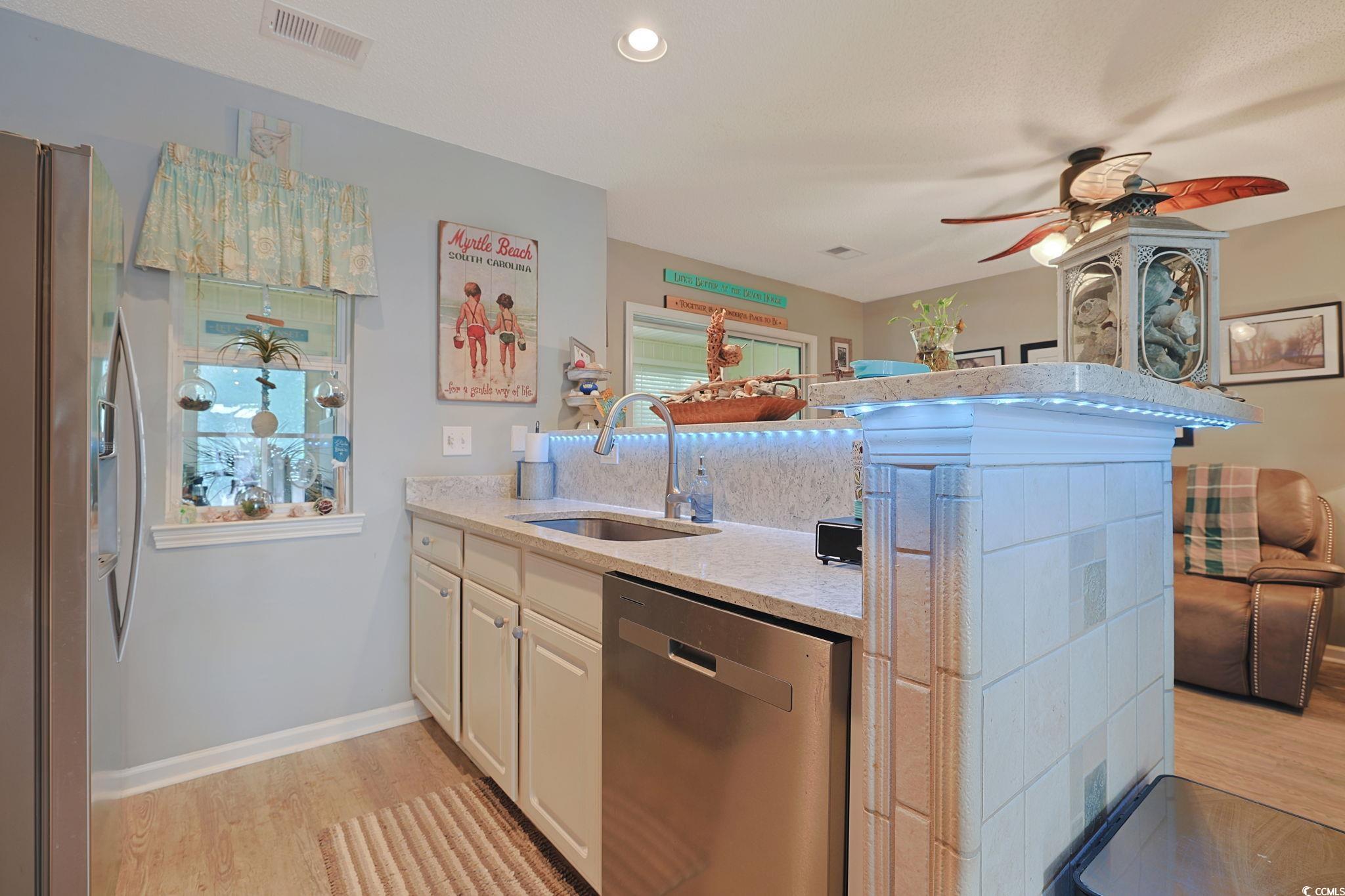 Welcome to this inviting two story 3 bedroom, 3.5 bathroom townhome located in the peaceful Parkview complex. This vibrant and cheerful townhome features a newer HVAC system installed in 2023, wood look LVP, tile, & carpet flooring, a guest powder room, a formal dining area with elegant chair railing, a delightful living room that showcases a sliding glass door that opens up to the relaxing sunroom. The kitchen is equipped with a stainless steel appliance package all new in 2023, granite counter tops, ample cabinet spaces, ambient lighting, and a family friendly breakfast bar. The main level primary bedroom offers a ceiling fan, a large walk-in closet, private access to the primary bath hosting a single sink vanity, a comfort station, and a classic step-in shower. Upstairs you will find two additional bedrooms each with an en-suite full bath along with extra closet spaces. This piece of paradise is finished with a practical laundry closet and a memorable back patio. This townhome affords you easy access to the beach and golfing along with all of the other activities and happenings in Myrtle Beach including fun eateries, award winning off-Broadway shows, public fishing piers, and intriguing shopping adventures along the Grand Strand. Conveniently located to your everyday needs, including grocery stores, banks, post offices, medical centers, doctors’ offices, and pharmacies. Check out our state of the art 3-D Virtual Tour.