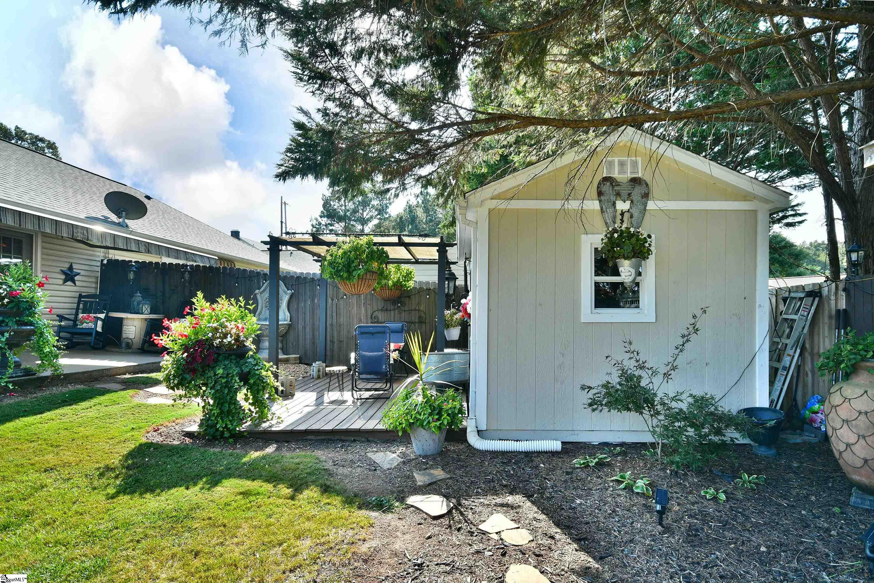 Hidden Gem Alert! This well-maintained condominium is full of charm and move-in ready! Step through the front door and fall in love with the spacious Great Room, complete with a cozy fireplace and gas logs—perfect for the cooler months ahead. The kitchen is just the right size, offering abundant cabinet space and all appliances included—even the washer and dryer! The primary suite features a cathedral ceiling, wonderful natural light, an ensuite bath, and a generous walk-in closet. A second bedroom offers plenty of space and storage, while the designated office is currently being used as a third bedroom—giving you flexible options to fit your lifestyle. Out back, you’ll be wowed by your very own private oasis! Enjoy outdoor lighting, a relaxing fountain, lush flowers, and a covered arbor for shade and comfort. A custom awning provides even more coverage, while a custom-built storage building with electricity adds convenience and functionality. Perfectly located near grocery stores, shopping, and restaurants, plus just a short drive to Clemson, Greenville, and downtown Easley with its popular Silo’s and Southern Weave entertainment venues—this home truly has it all. Don’t wait—this lovely condo won’t last long. Let’s get you HOME!
