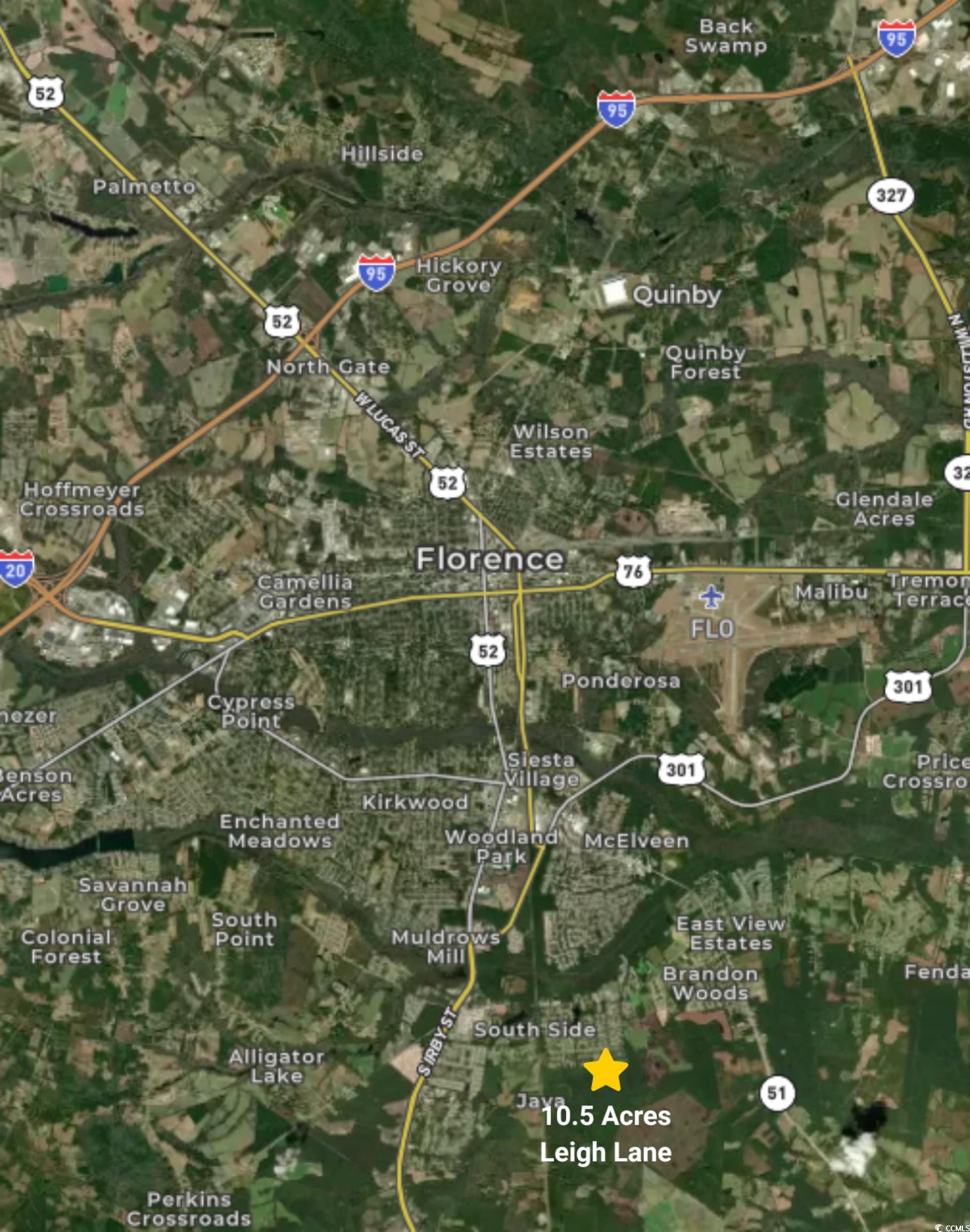 This 10.5-acre wooded tract is tucked away at the back of Tara Village in South Florence, offering both privacy and potential. The property has deeded access through Aunt Prissey Court and Leigh Lane, giving it convenient entry points. It is zoned rural residential in the county, but right next door the city limits bring water and sewer service to the surrounding homes—making this a property with strong future possibilities. Here, you’ll find a peaceful natural setting, yet remain only minutes from schools, shopping, medical care, and major highways. Whether you’re looking to build a private estate, create a small residential community, or secure land as a long-term investment, this tract offers the best of both worlds. Opportunities of this size and location in South Florence are rare, making this a standout choice for a buyer with vision.