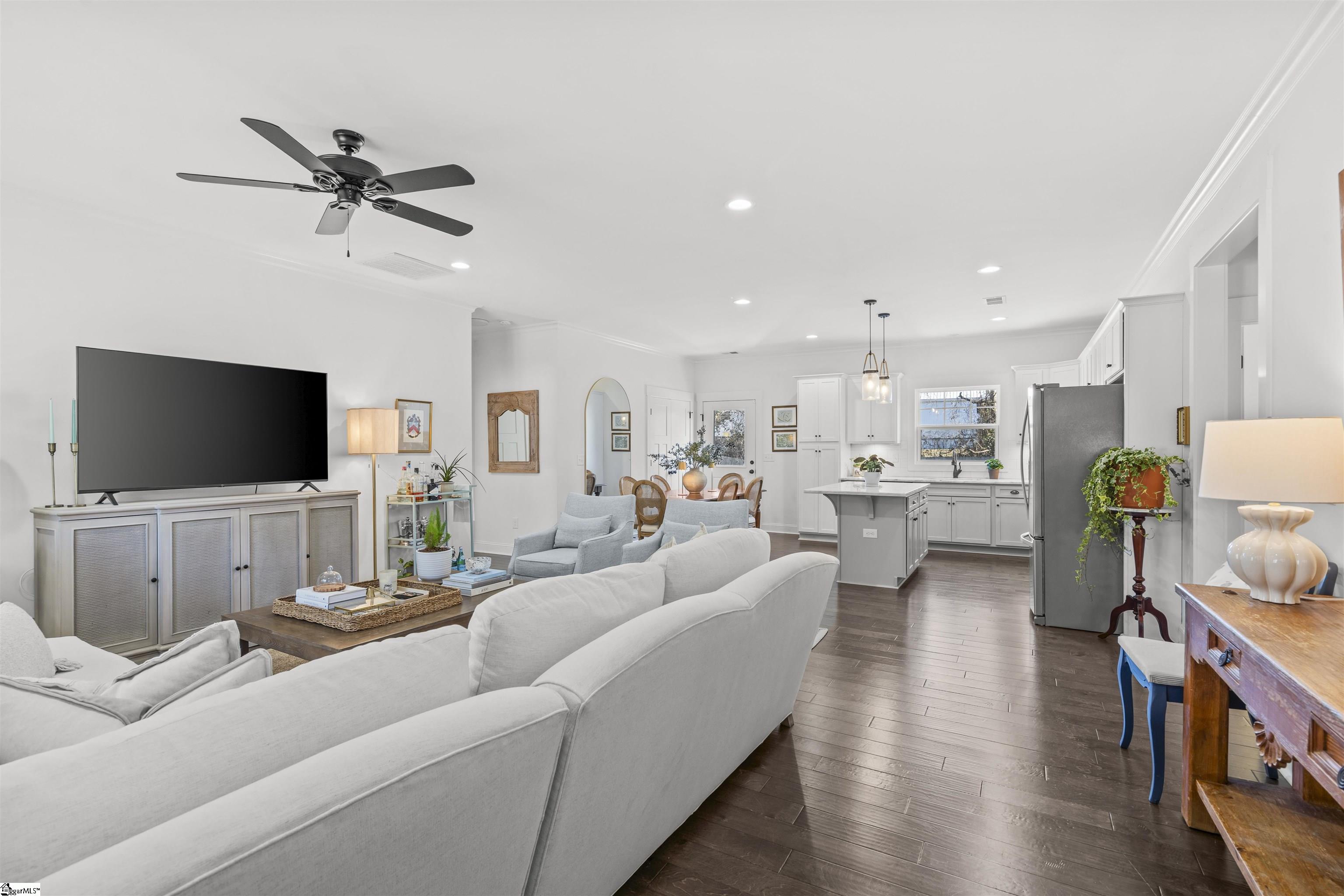 Centrally located between Downtown Greenville, Travelers Rest, Paris Mountain, and Furman University, this beauty is ideally situated and built by one of the top local builders, Renaissance Custom Homes. A welcoming covered front porch, framed by thoughtful landscaping, sets the tone for the home’s curb appeal. Inside, the open-concept layout makes entertaining effortless, highlighted by 9-foot ceilings and hardwood floors throughout the main living areas. The chef-ready kitchen features granite countertops, stainless steel appliances, and solid maple soft-close cabinetry. With three bedrooms and two bathrooms, the home is ideal for those who love to host. The primary suite includes a walk-in closet and a spa-like bathroom with dual vanities and a spacious tiled walk-in shower. A walk-in laundry and storage room finishes off the inside. Step outside to enjoy the flat, fenced-in backyard—an inviting space for outdoor activities, gardening, or summer barbecues.