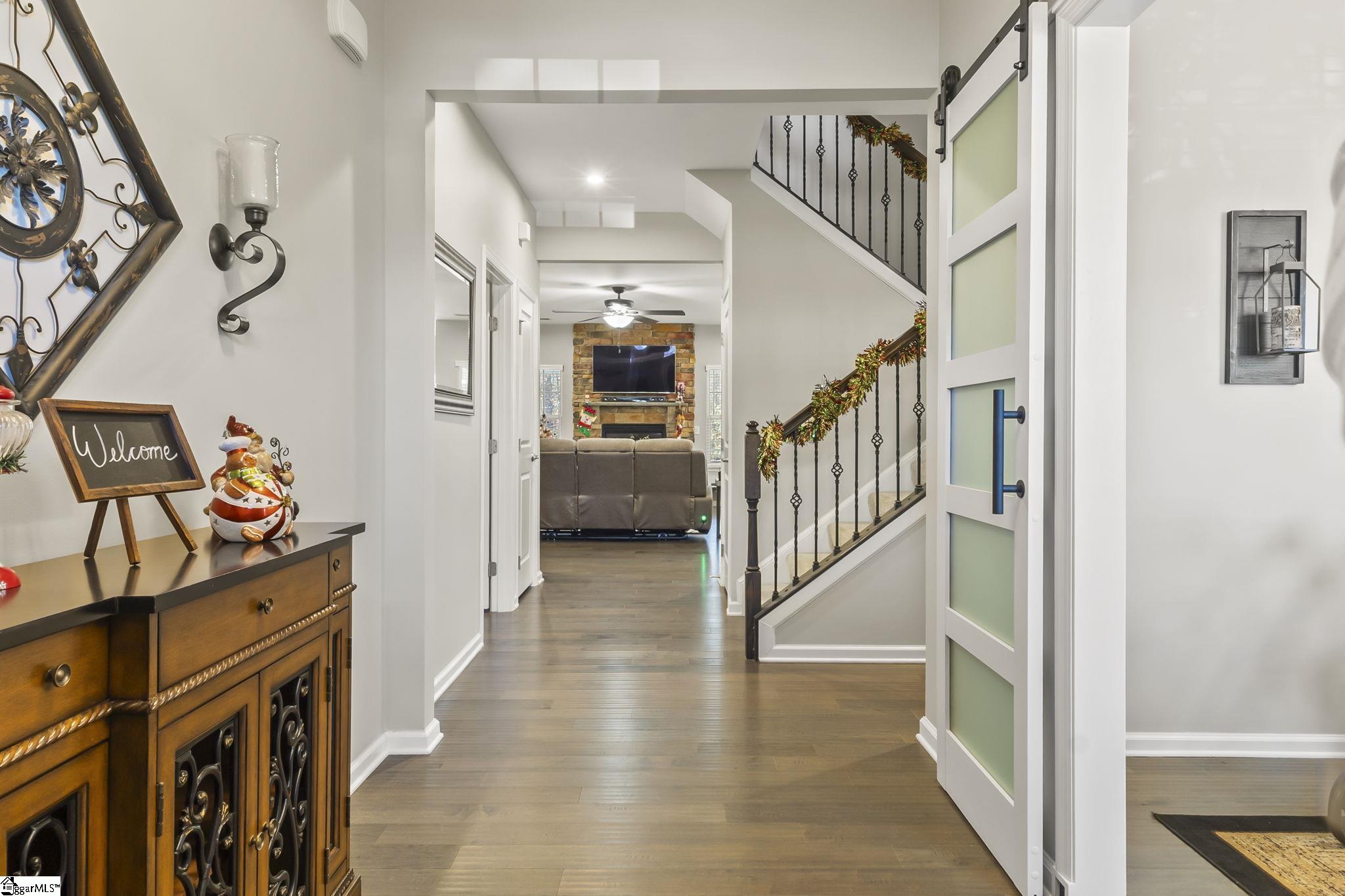 From the moment you step inside this beautiful four-bedroom home, you’re welcomed by an open, light-filled layout that was designed for gathering and everyday living. The heart of the home is the spacious kitchen, where a large center island invites friends to pull up a stool while meals are prepared on the gas cooktop or in the double ovens. White upgraded cabinetry, gray accent cabinets on the island, granite countertops, stainless GE appliances, and a walk-in pantry make the space as functional as it is stylish. Just beyond, the kitchen opens effortlessly into the Great Room, where a cozy gas fireplace framed by stacked stone creates a warm focal point and views stretch out to the private, tree-lined backyard. The breakfast nook leads you outside to a screened porch and patio with a dedicated gas line for the grill, an ideal spot for slow mornings with coffee or evenings spent entertaining, all overlooking a fenced yard finished with elegant wrought iron. Tucked away on the main level, the oversized primary suite offers a peaceful retreat with a tray ceiling, abundant natural light, and a spa-inspired bathroom featuring double vanities with granite countertops, a subway-tiled walk-in shower, ceramic tile floors, and a spacious closet. The main floor is completed by a dining room ready for special occasions, a powder room, and a laundry room with a sink and upgraded vanities. Upstairs, you’ll discover three additional bedrooms, along with a generous loft or flex space, a full hall bath with granite countertops and a tub/shower combination, and convenient walk-in attic storage. A two-car garage rounds out the home, all set within the desirable Briar Oaks neighborhood, where award-winning schools, sidewalks, and a playground create a true sense of community, just minutes from Five Forks and Downtown Simpsonville. Schedule your private showing today!